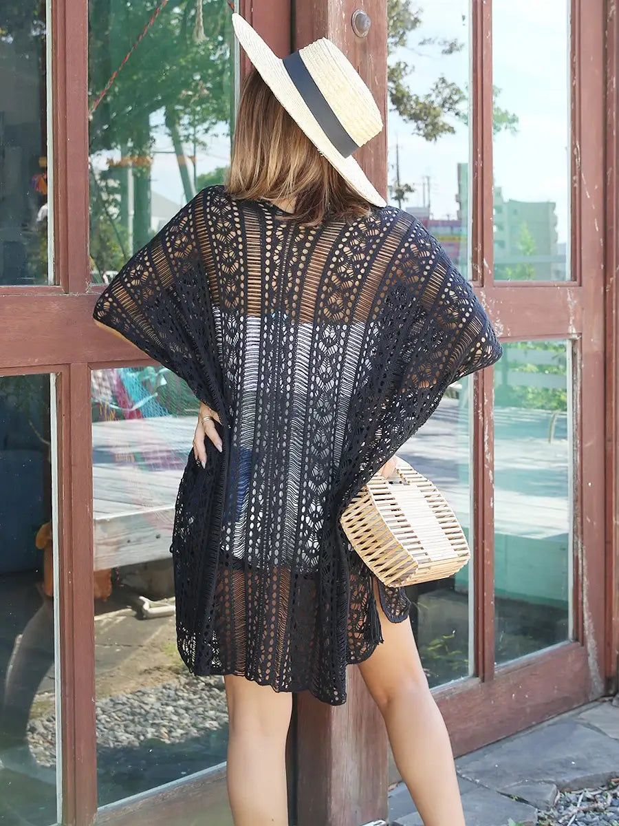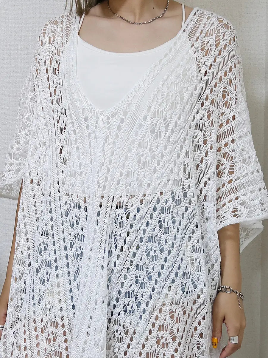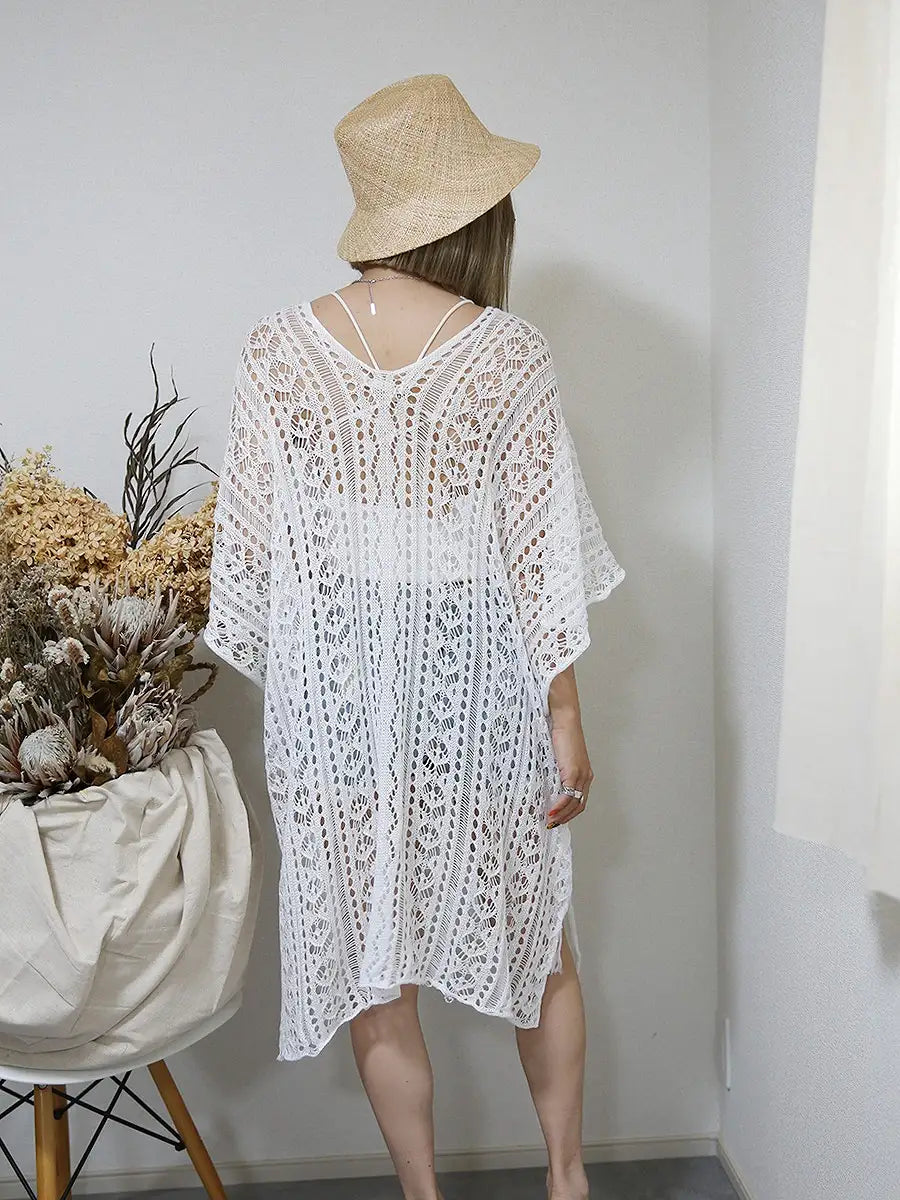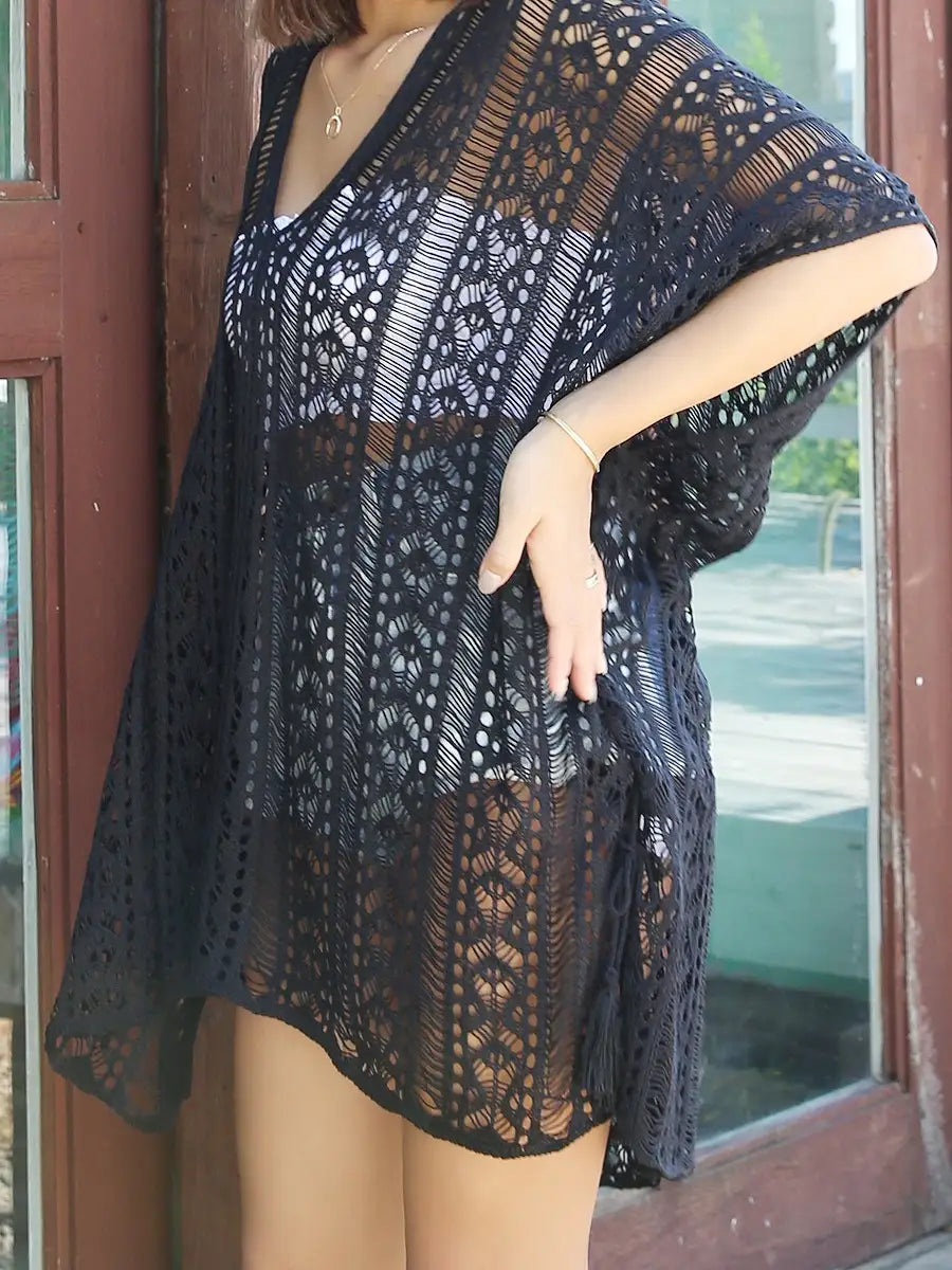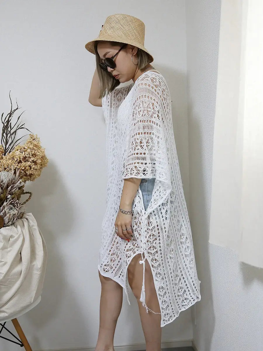 roomy by the sea(ルーミーバイザシー)背中ラウンドクロシェ編みフリンジカバーアップ羽織り