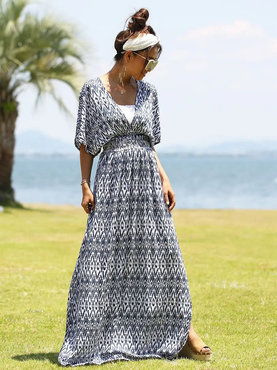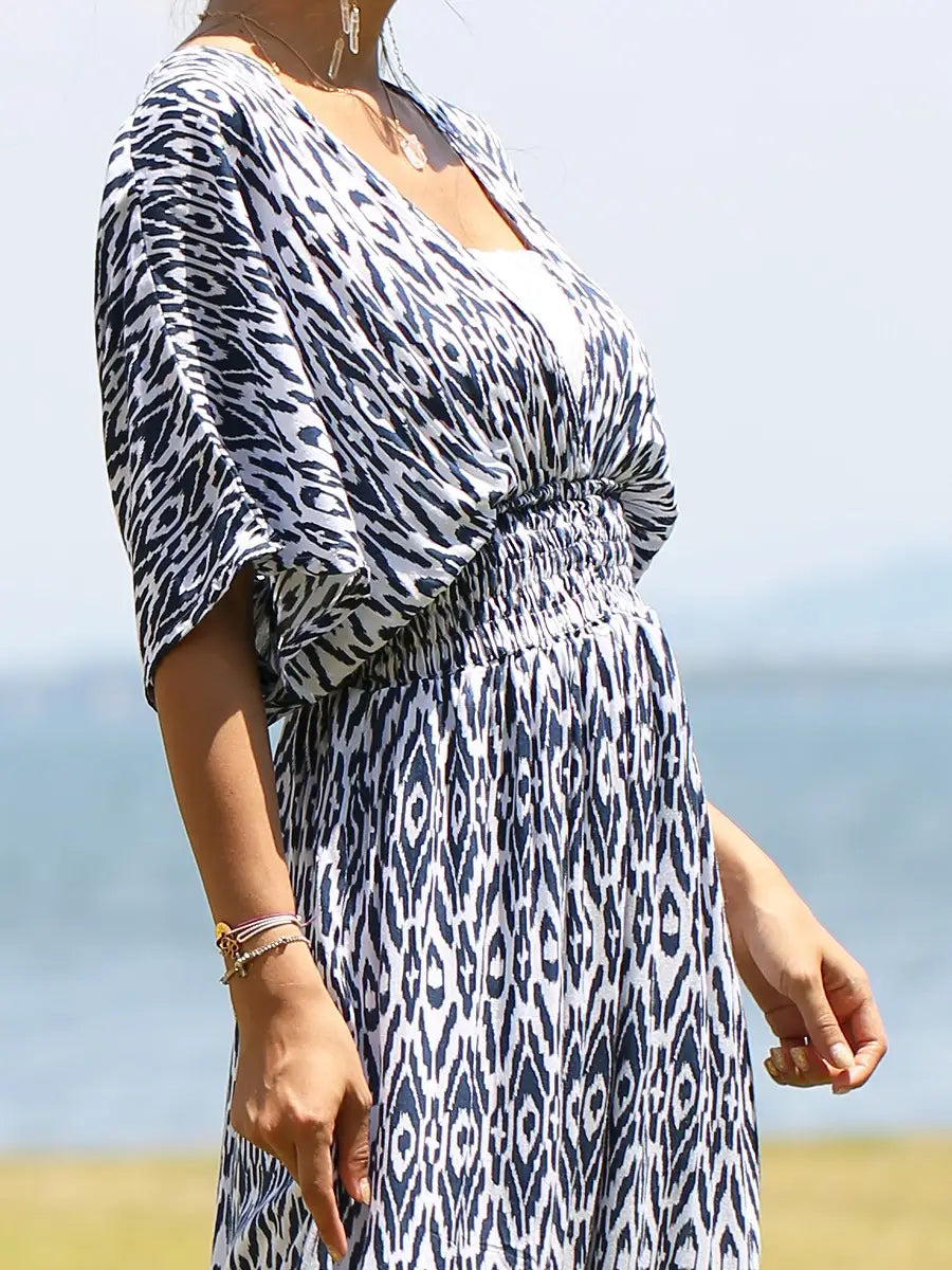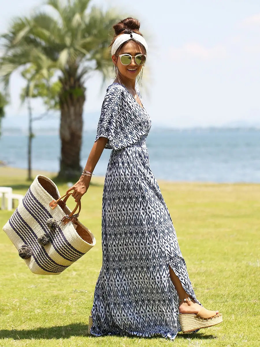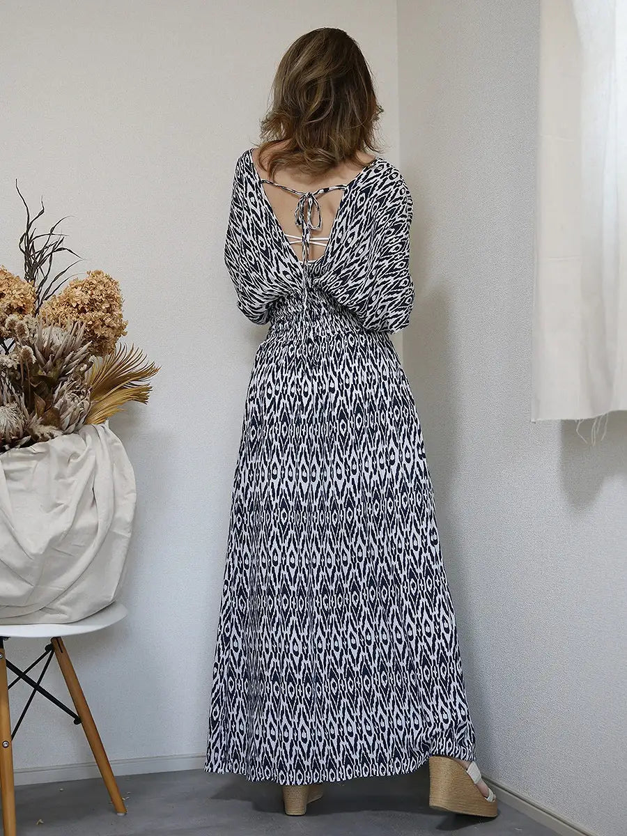 サラッとした質感のバティック柄Vネックマキシワンピースです。