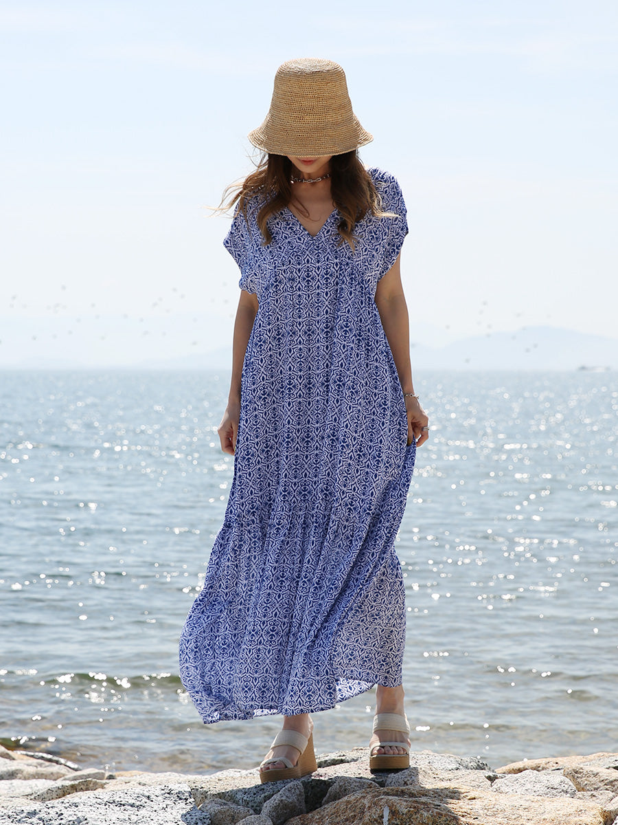 落ち感のあるデザインでサラッと1枚で大人リソートコーデが完成します。