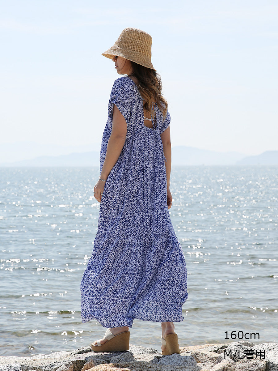 LAUT BLUE(ラウトブルー)サントリー二ノースリーブマキシワンピース
