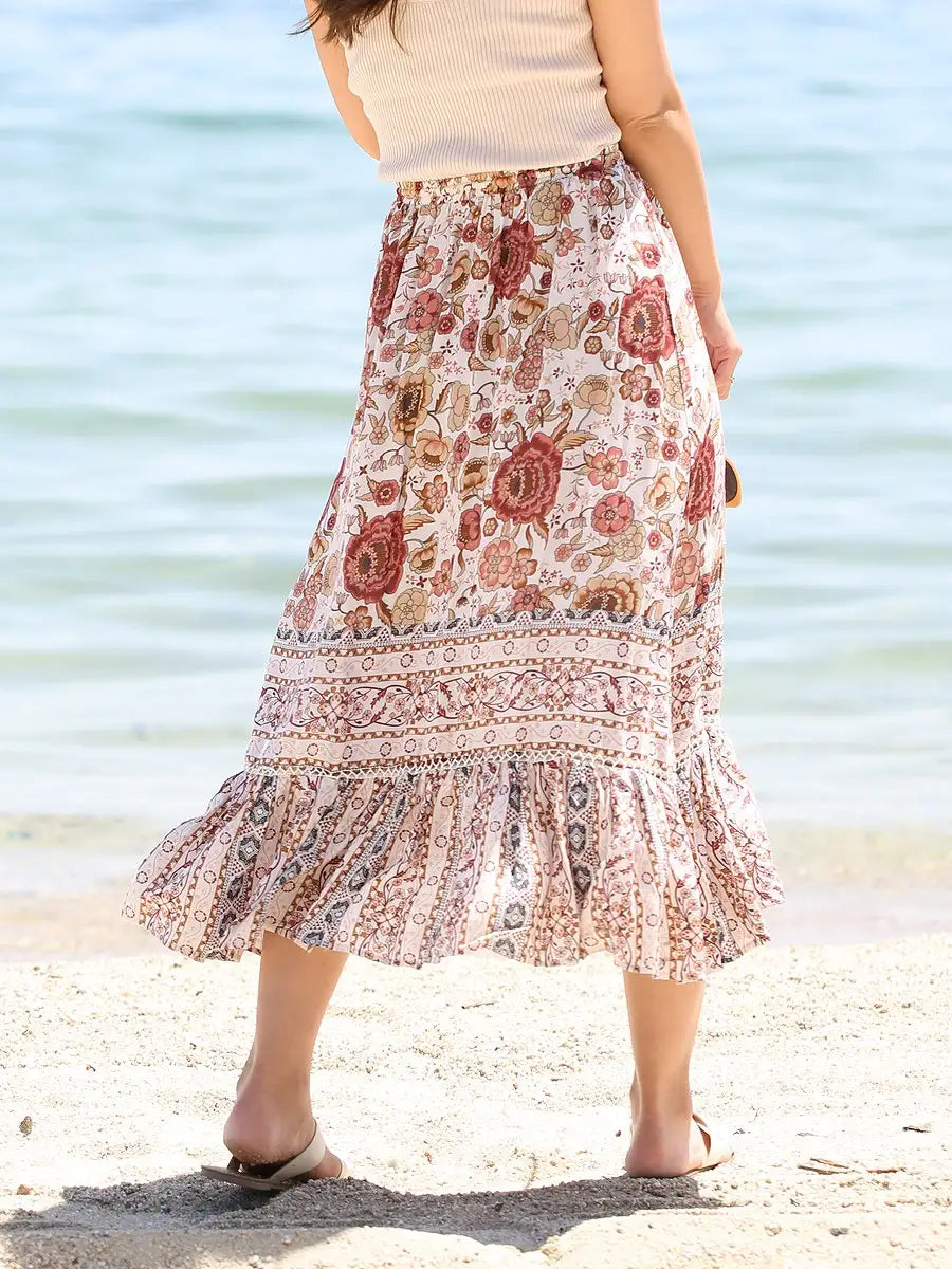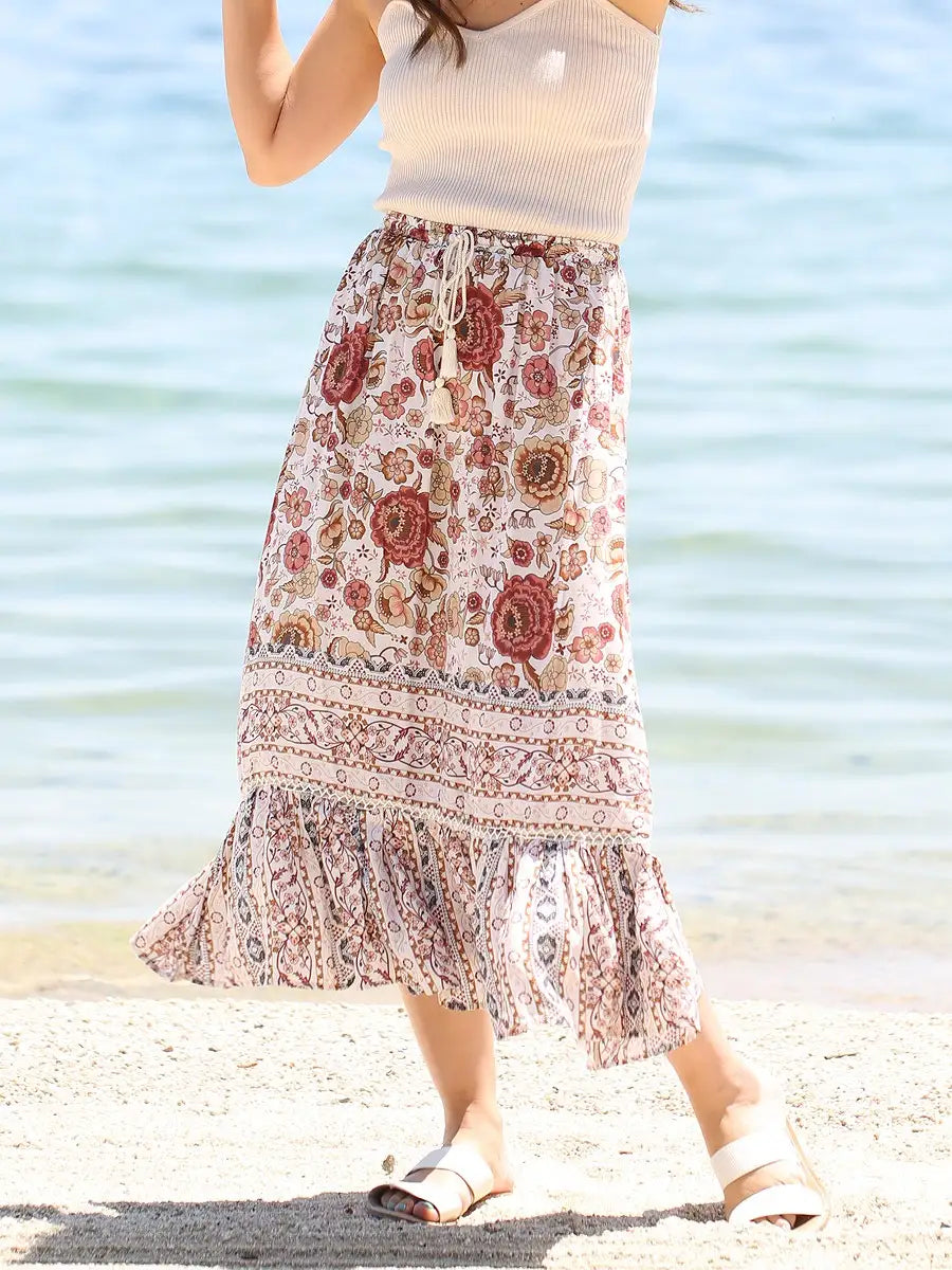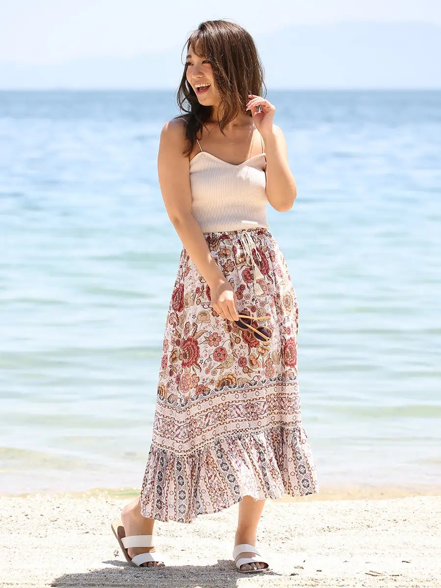 roomy by the sea(ルーミーバイザシー)花柄アイボリーマキシスカート