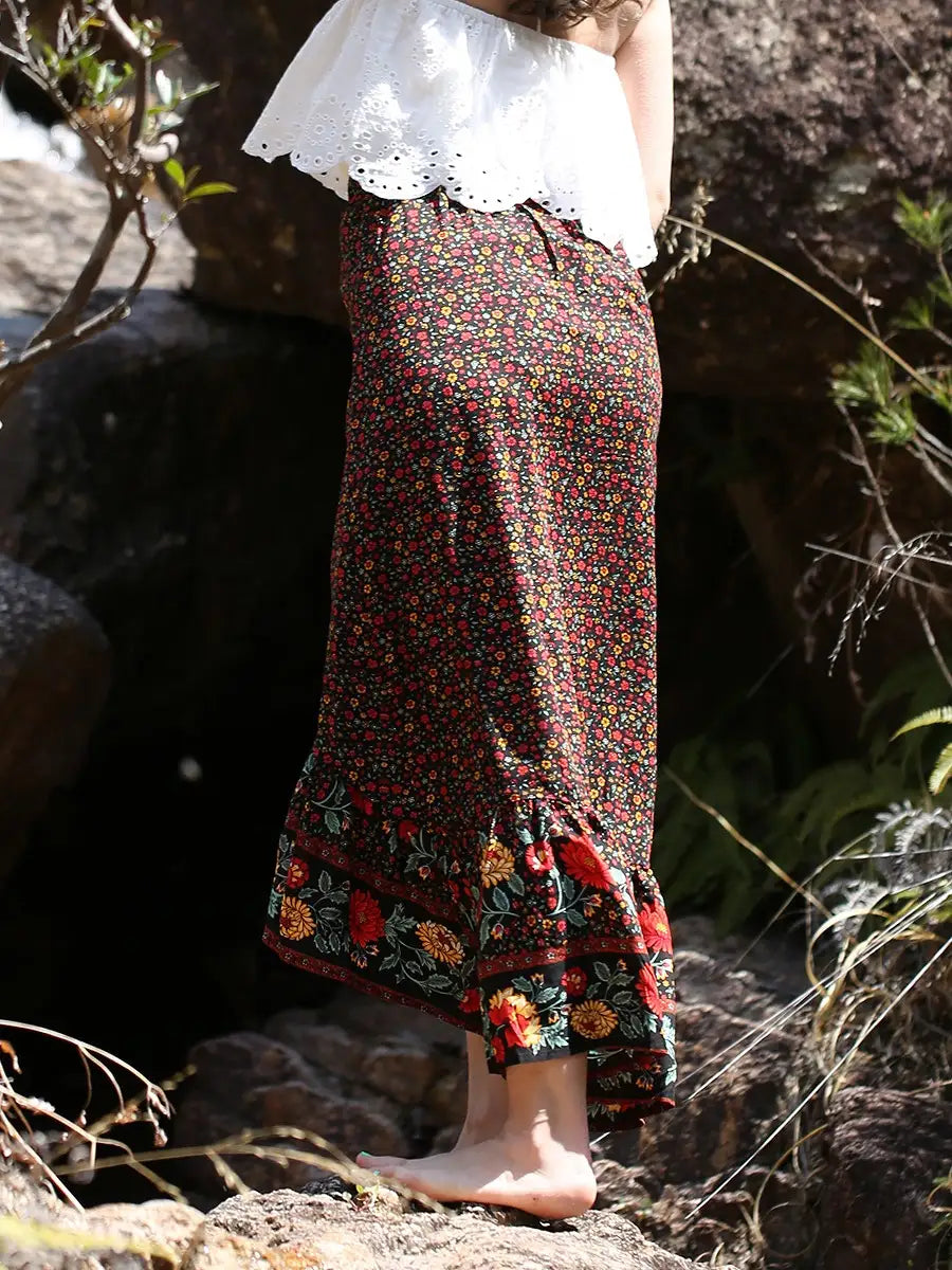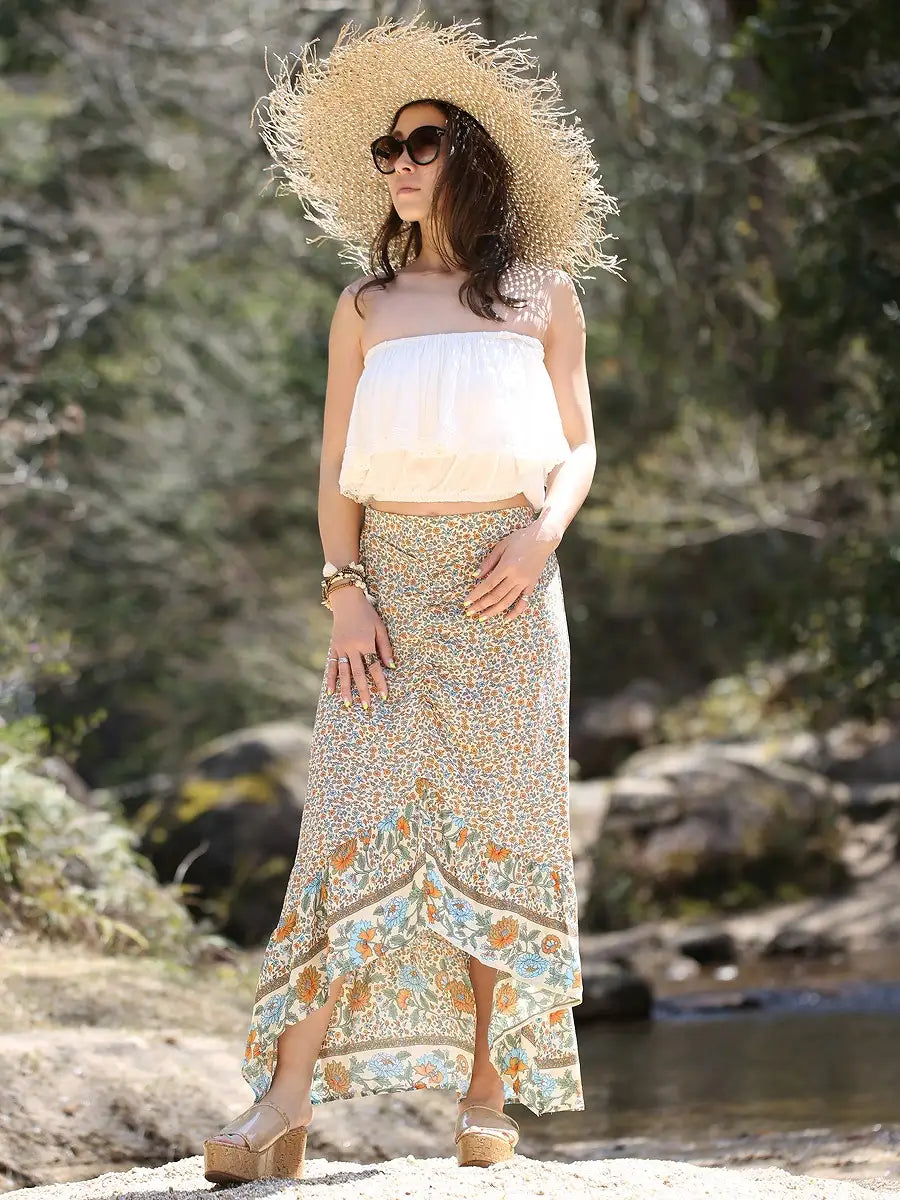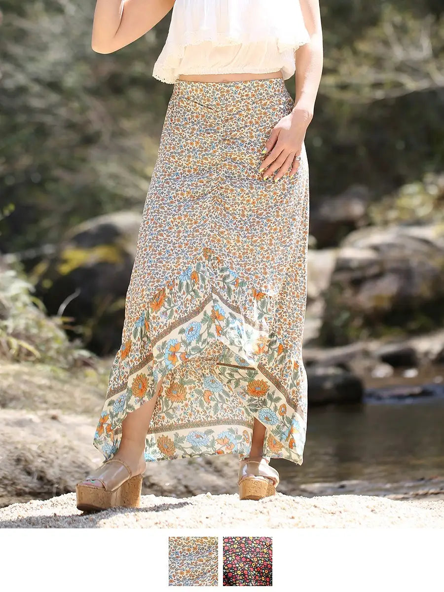 roomy by the sea(ルーミーバイザシー)ボホ花柄マキシスカート