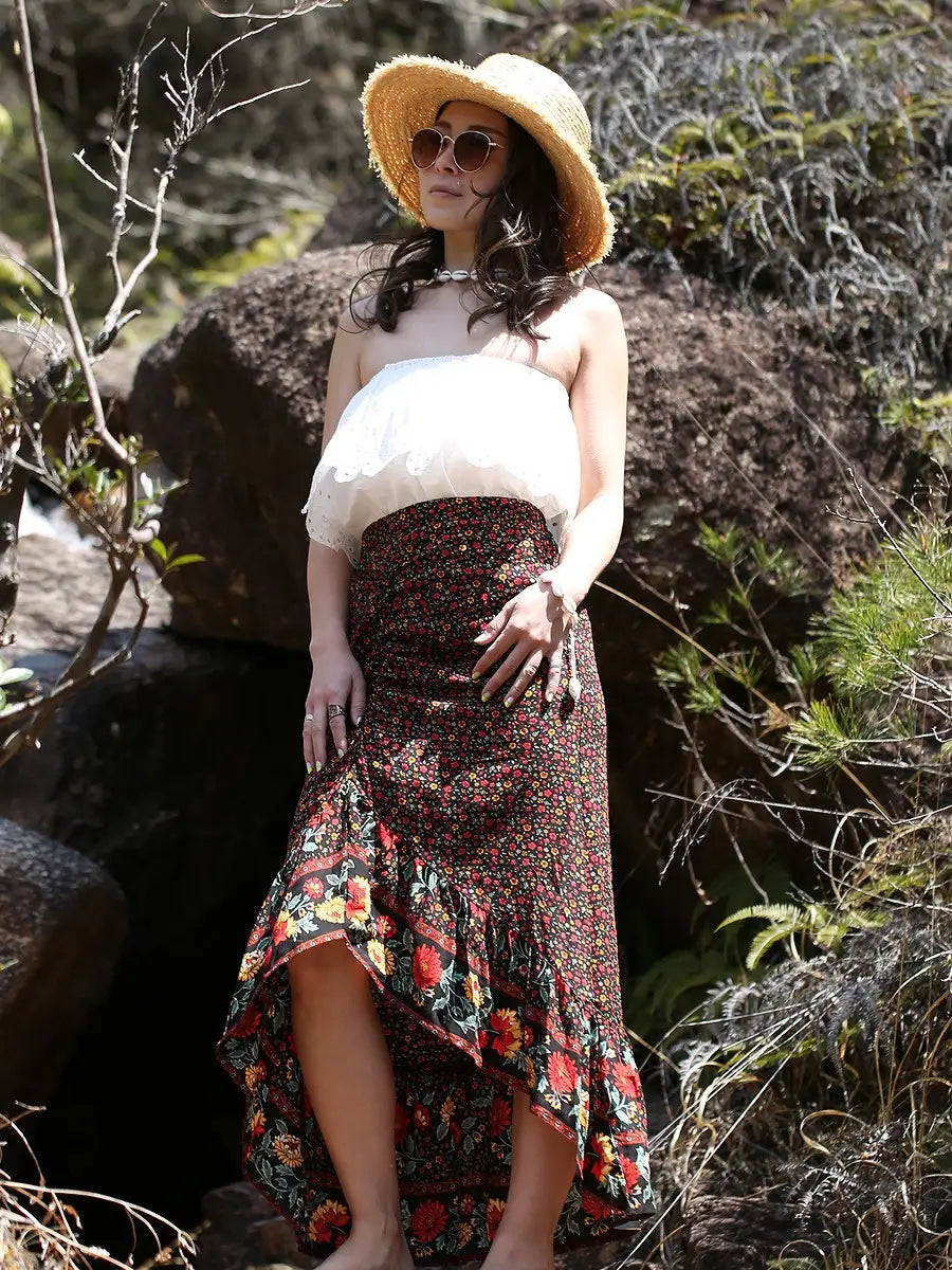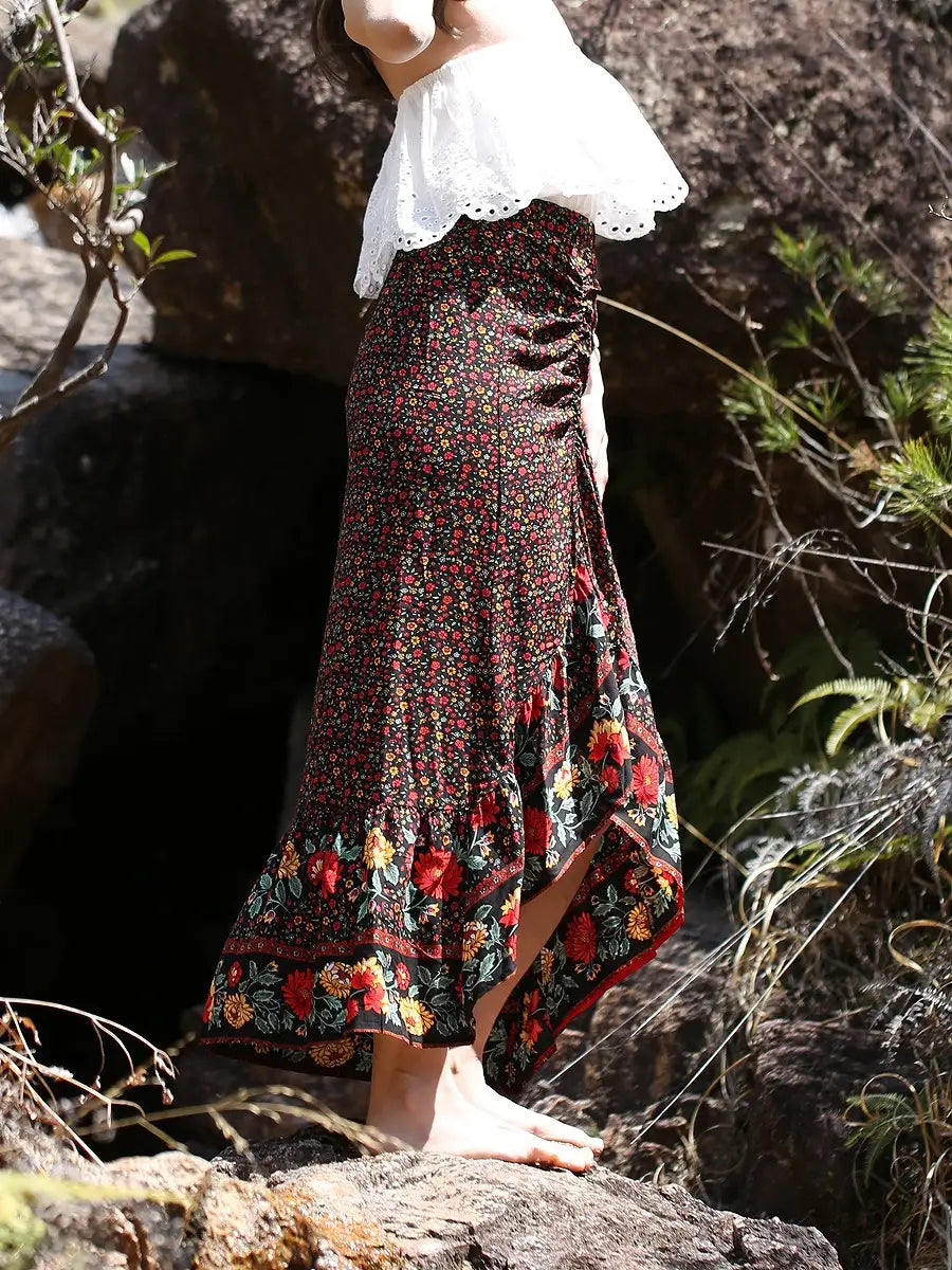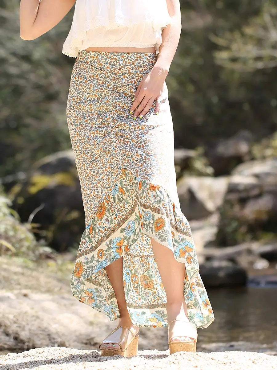 roomy by the sea(ルーミーバイザシー)ボホ花柄マキシスカート