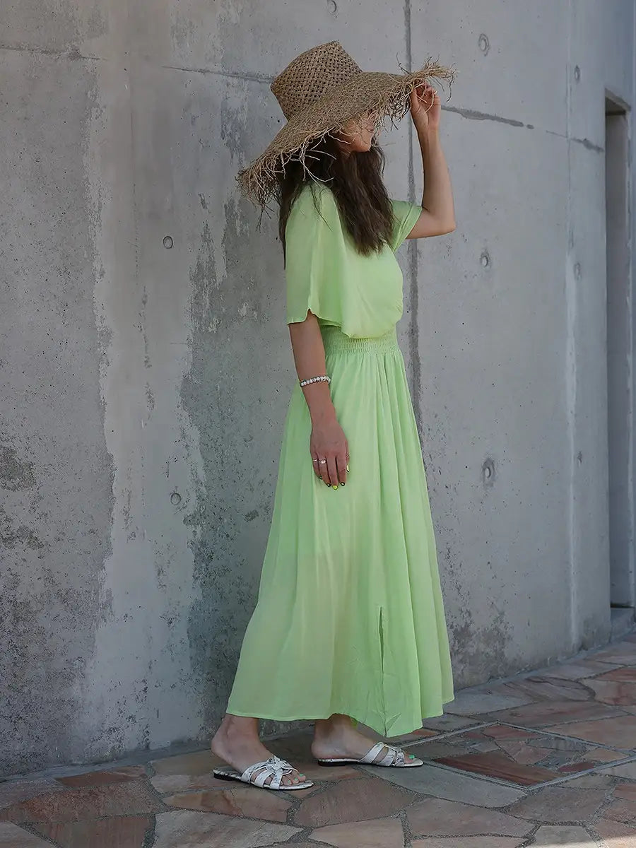 ビーチでもシティでも場所を選ばずサラッと1枚で大活躍する大人のマキシワンピースです!