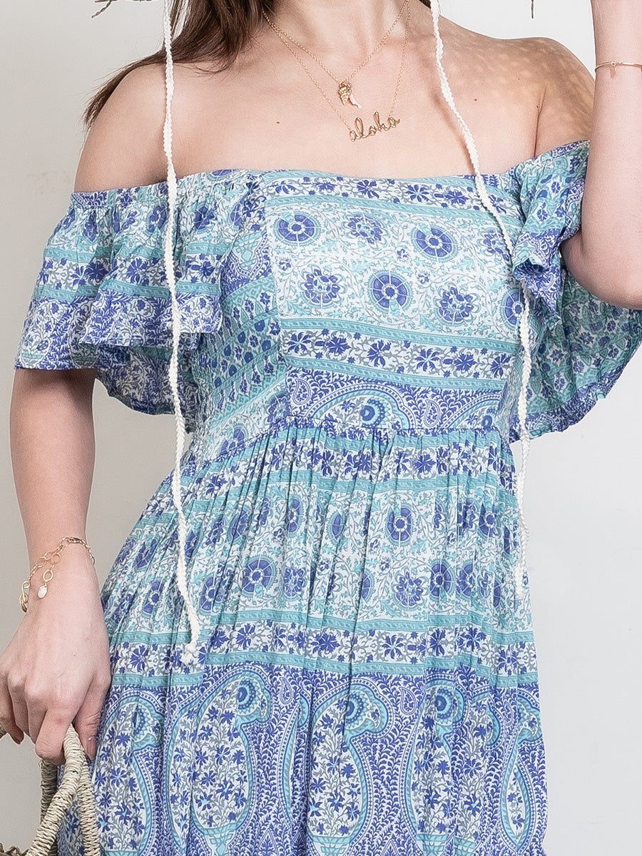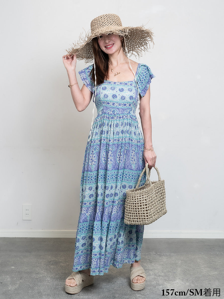 リゾート感溢れる爽やかなペイズリー柄リゾートワンピース。