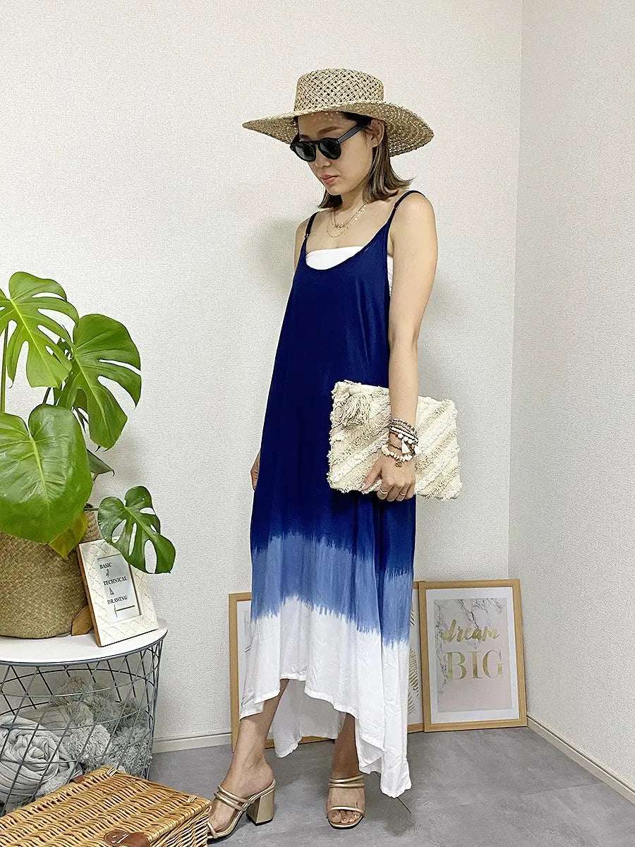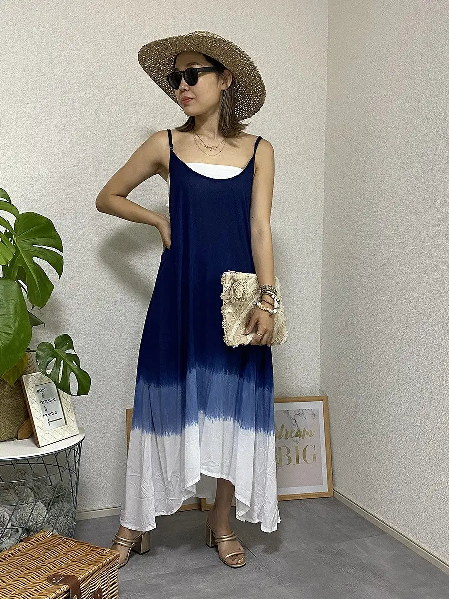 くすみカラーのグラデーションがとっても綺麗なリゾートワンピースです。