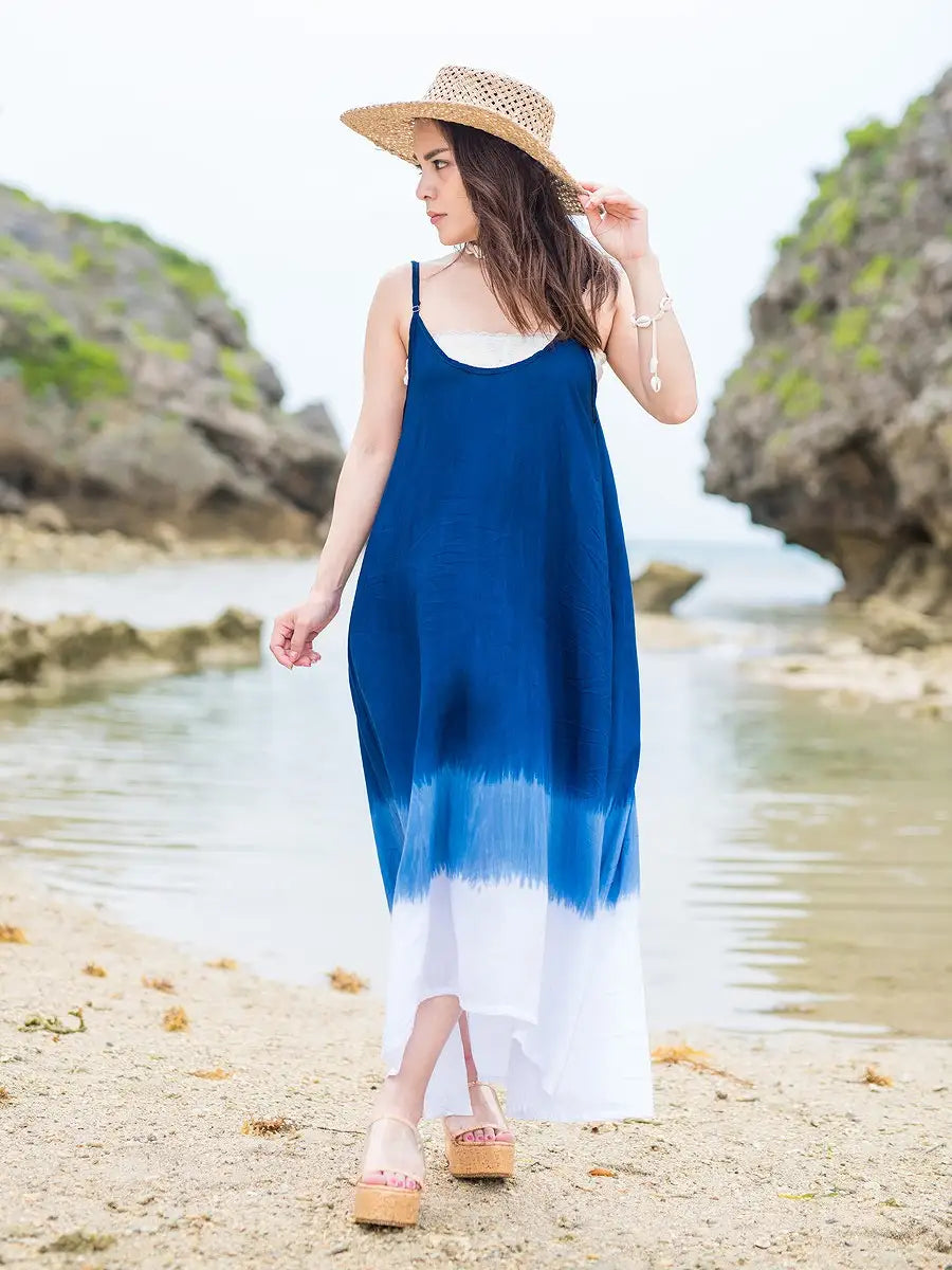 サラッと1枚でお洒落なリゾートスタイルが完成するマキシワンピースです。