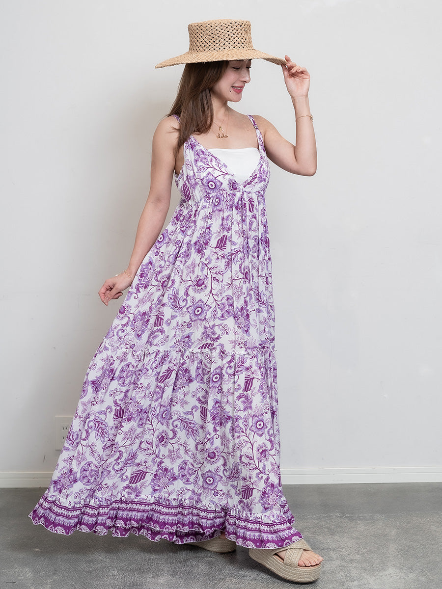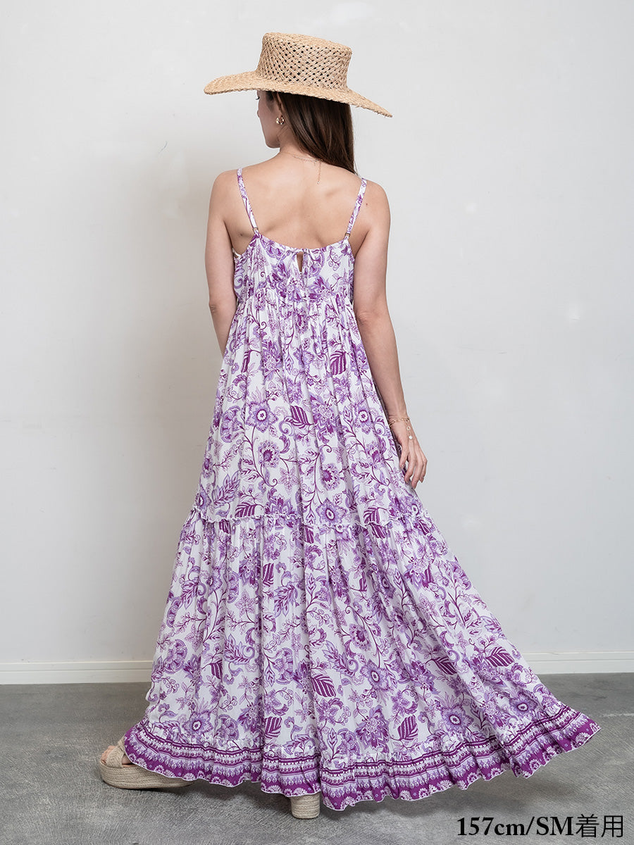 LAUT BLUE(ラウトブルー)キャミソールティアードワンピース/パープル花柄