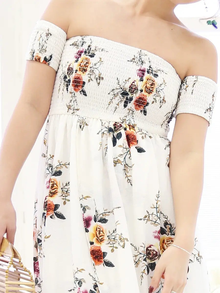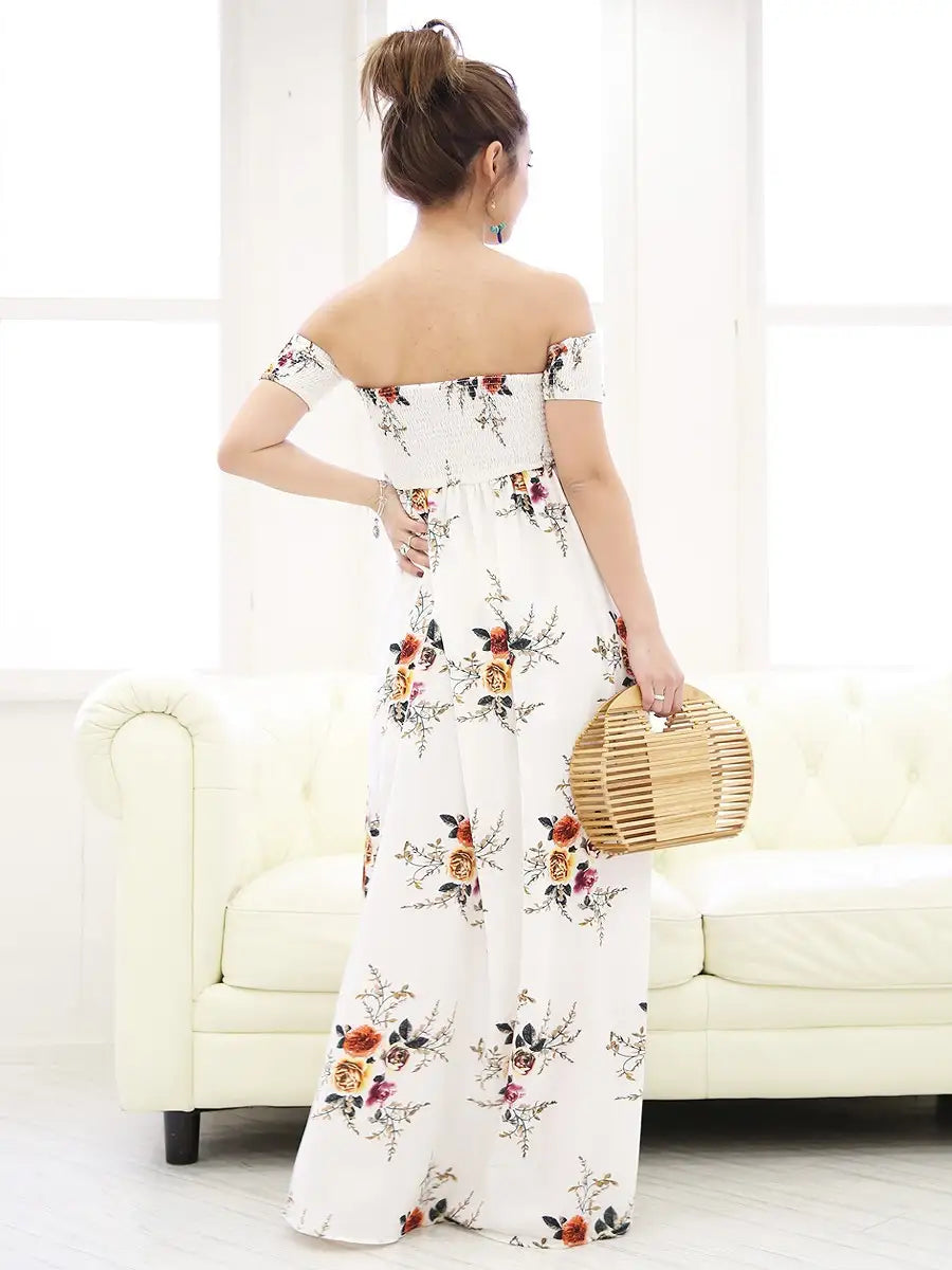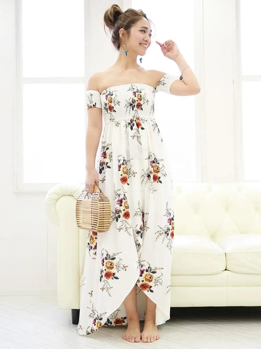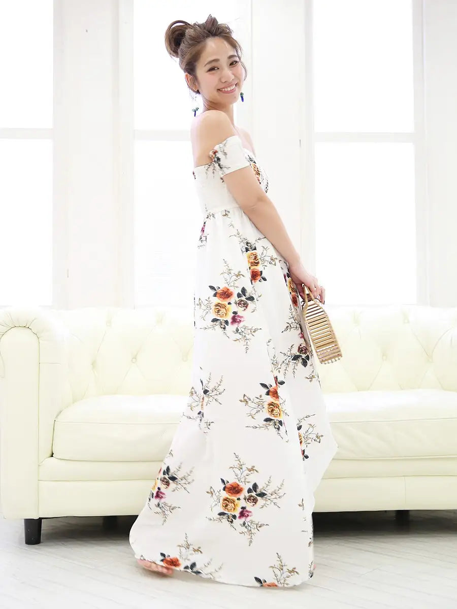 roomy by the sea(ルーミーバイザシー)花柄オフショルマキシワンピース/ホワイト