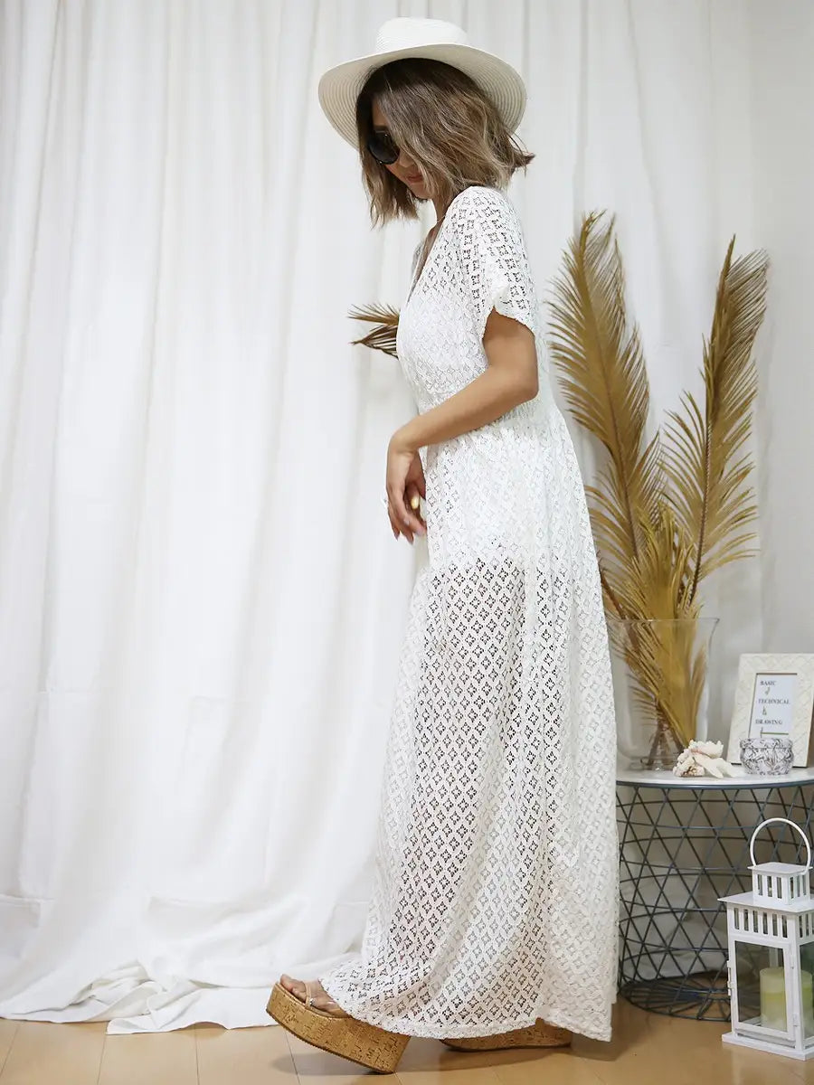 roomy by the sea(ルーミーバイザシー)Vネックレースロングワンピース