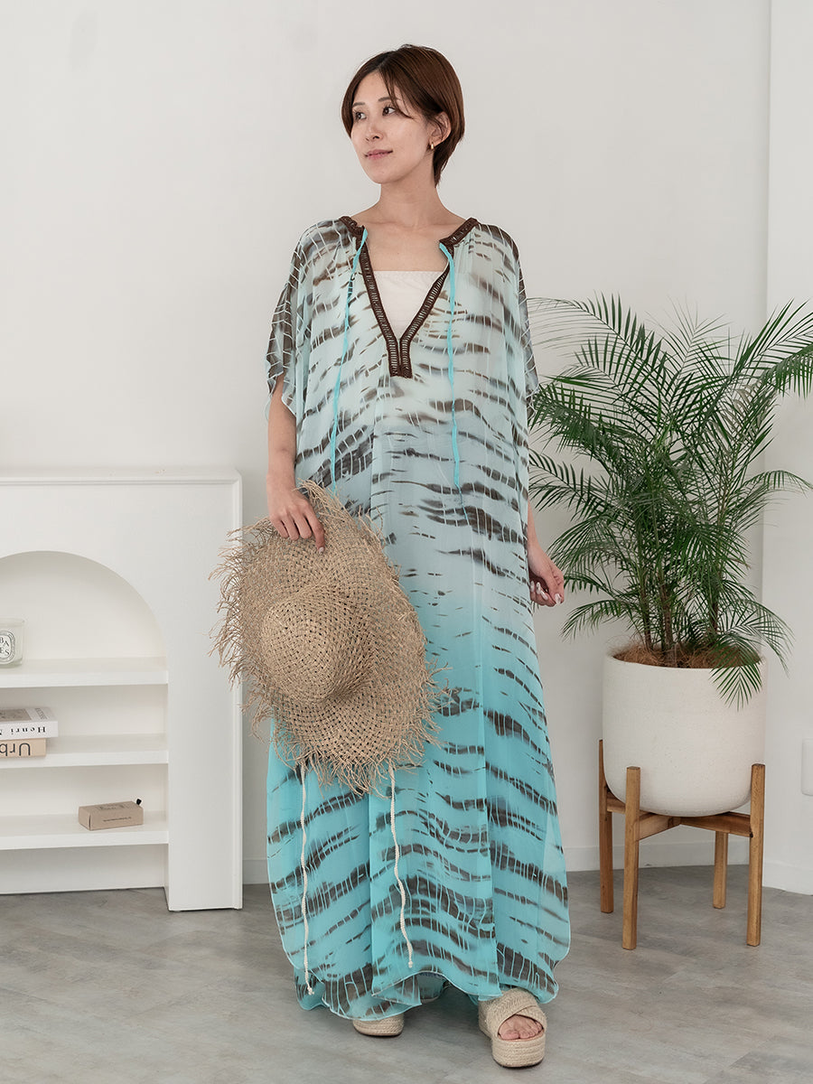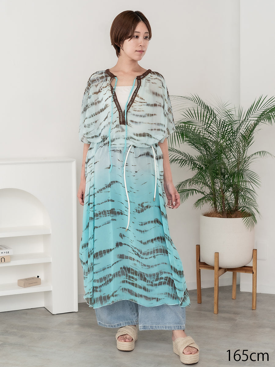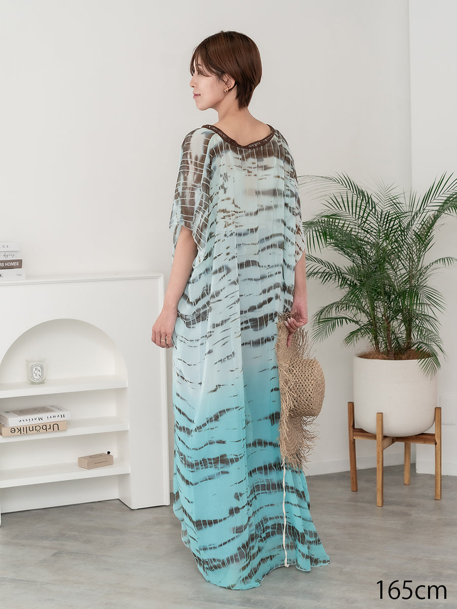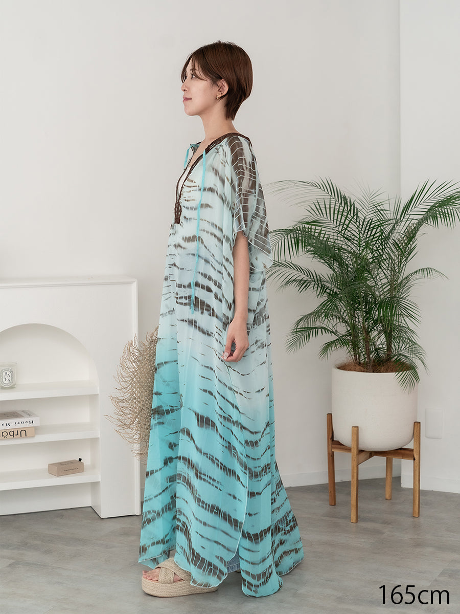 roomy by the sea(ルーミーバイザシー)タイダイ柄シースルードルマンマキシワンピース