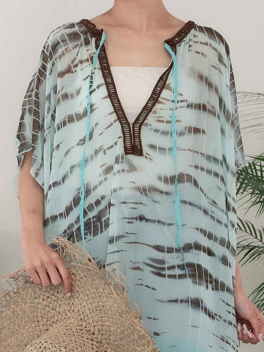 シースルーですので、ビーチ・リゾートシーンで水着の上にサラッとカバーアップとしてのコーデがおすすめです。