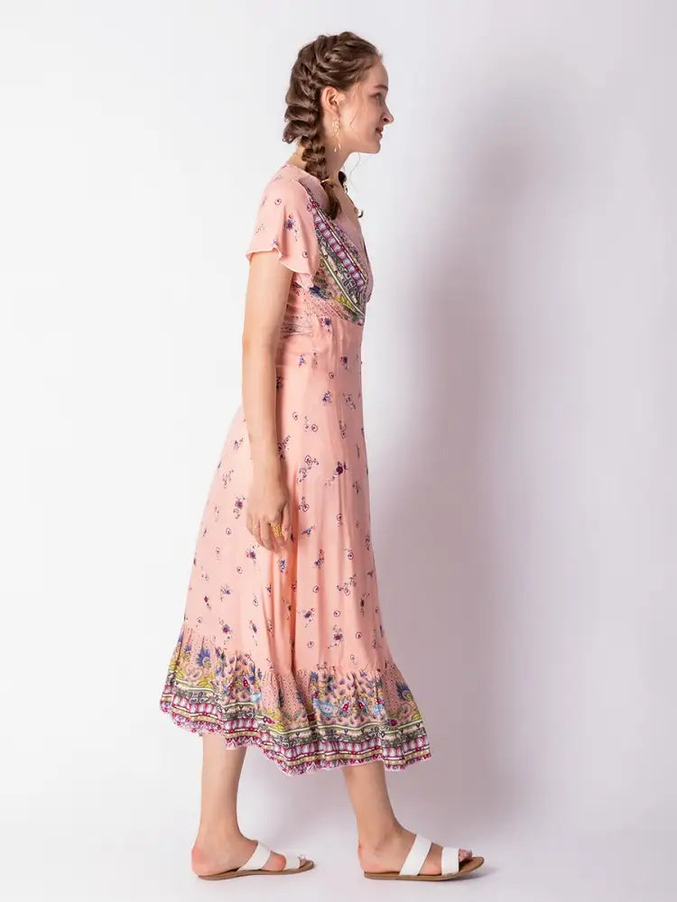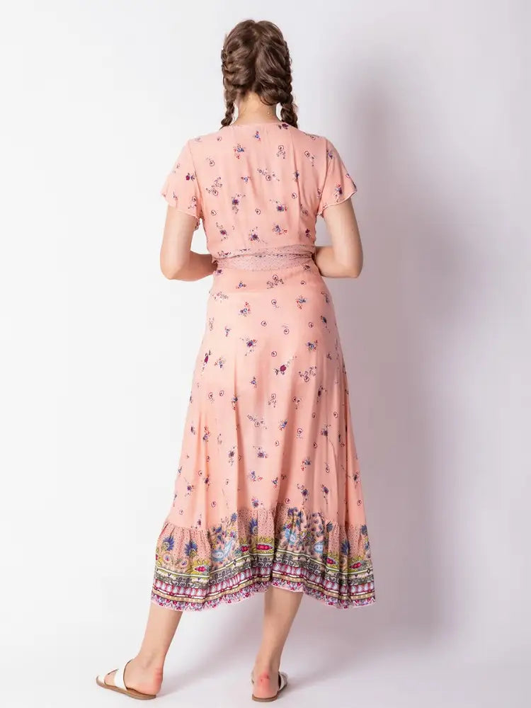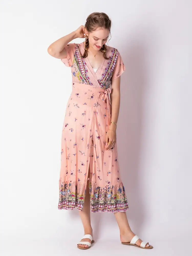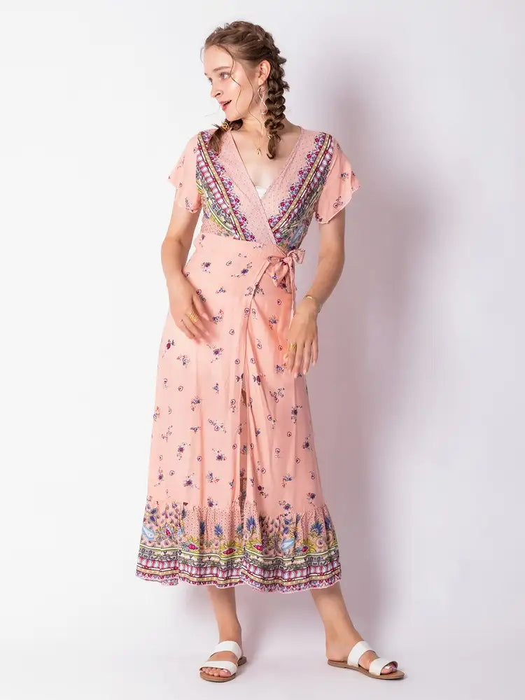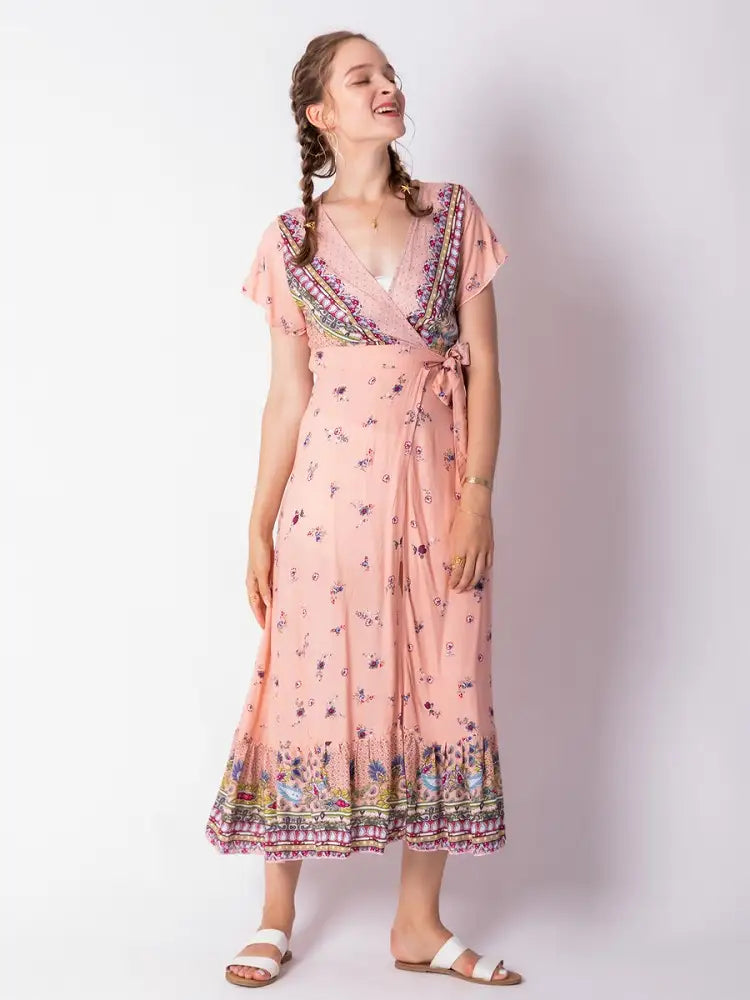 roomy by the sea(ルーミーバイザシー)フェミニンラップスタイル半袖マキシワンピース