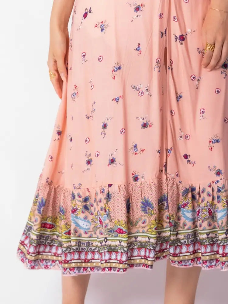 roomy by the sea(ルーミーバイザシー)フェミニンな半袖マキシワンピース。