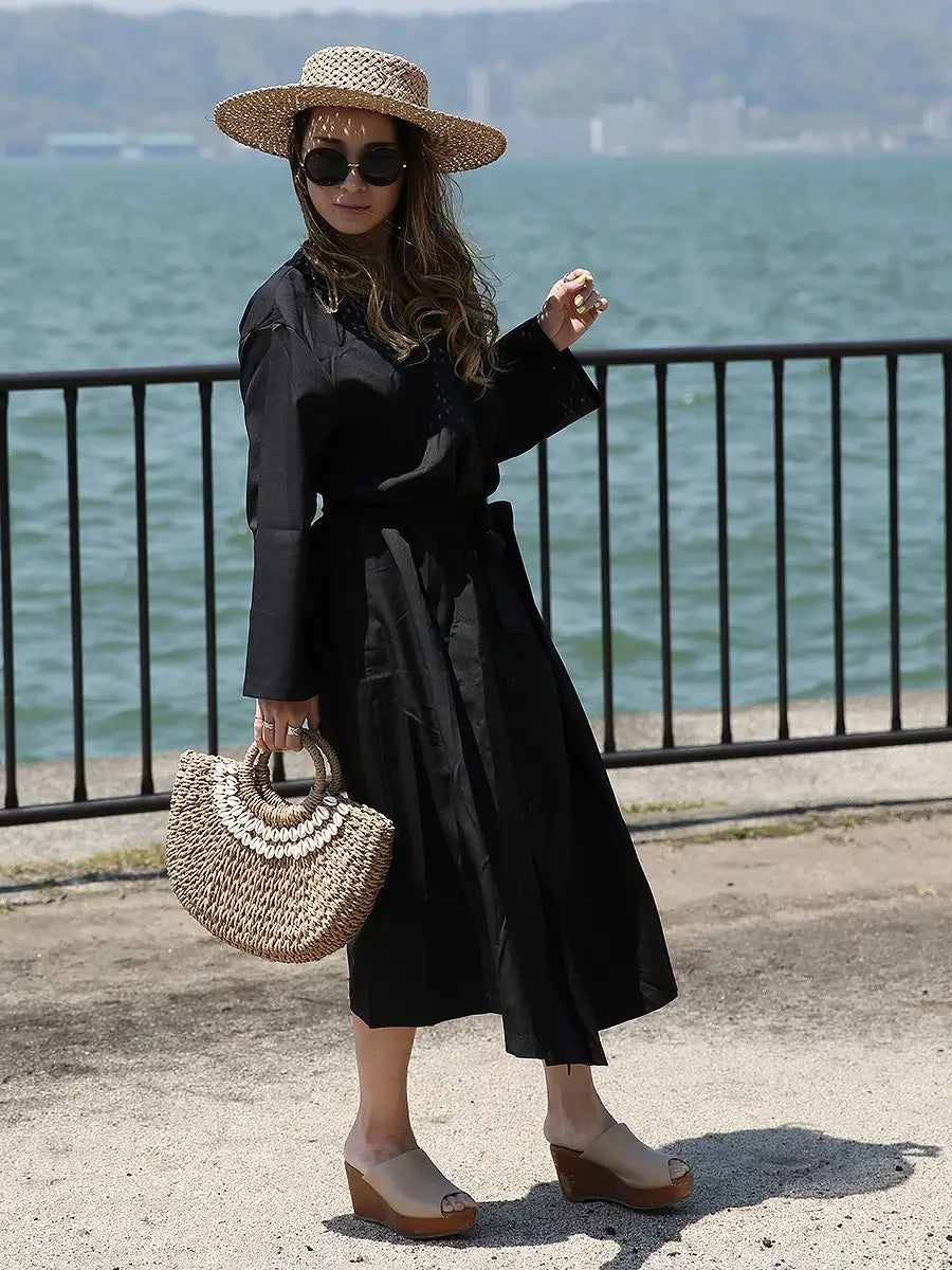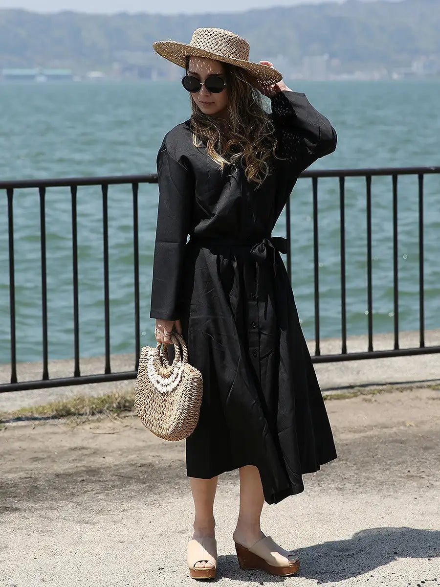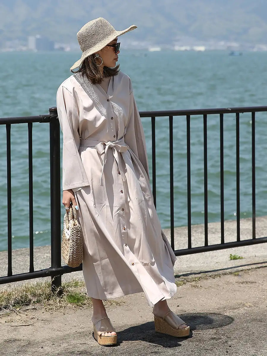roomy by the sea(ルーミーバイザシー)シンプルな長袖マキシワンピース