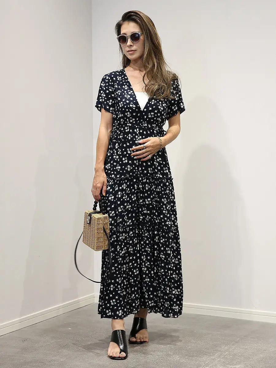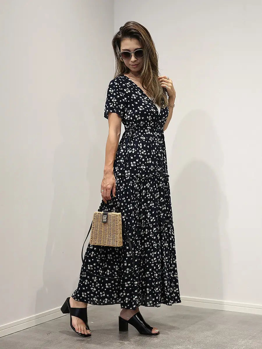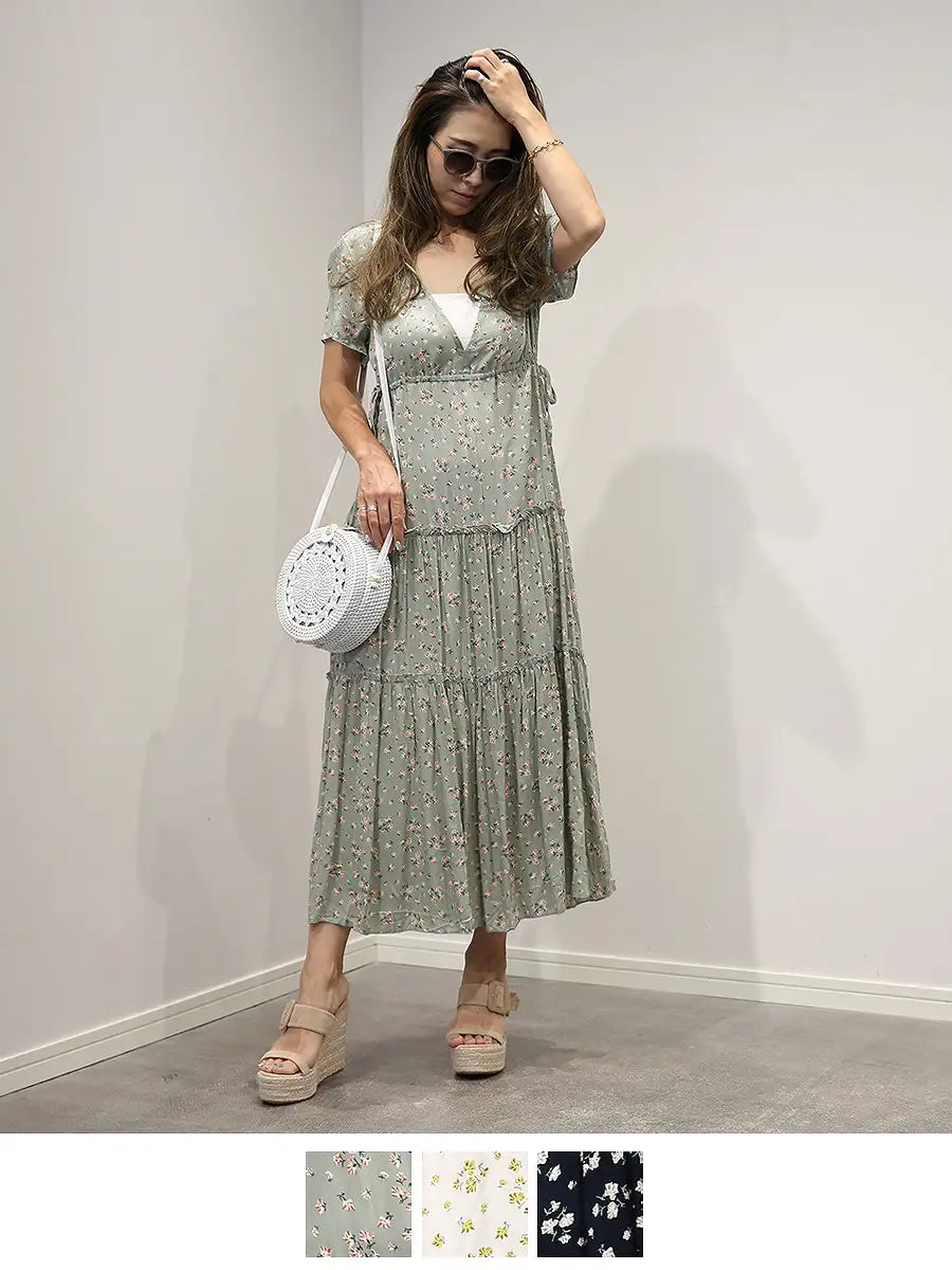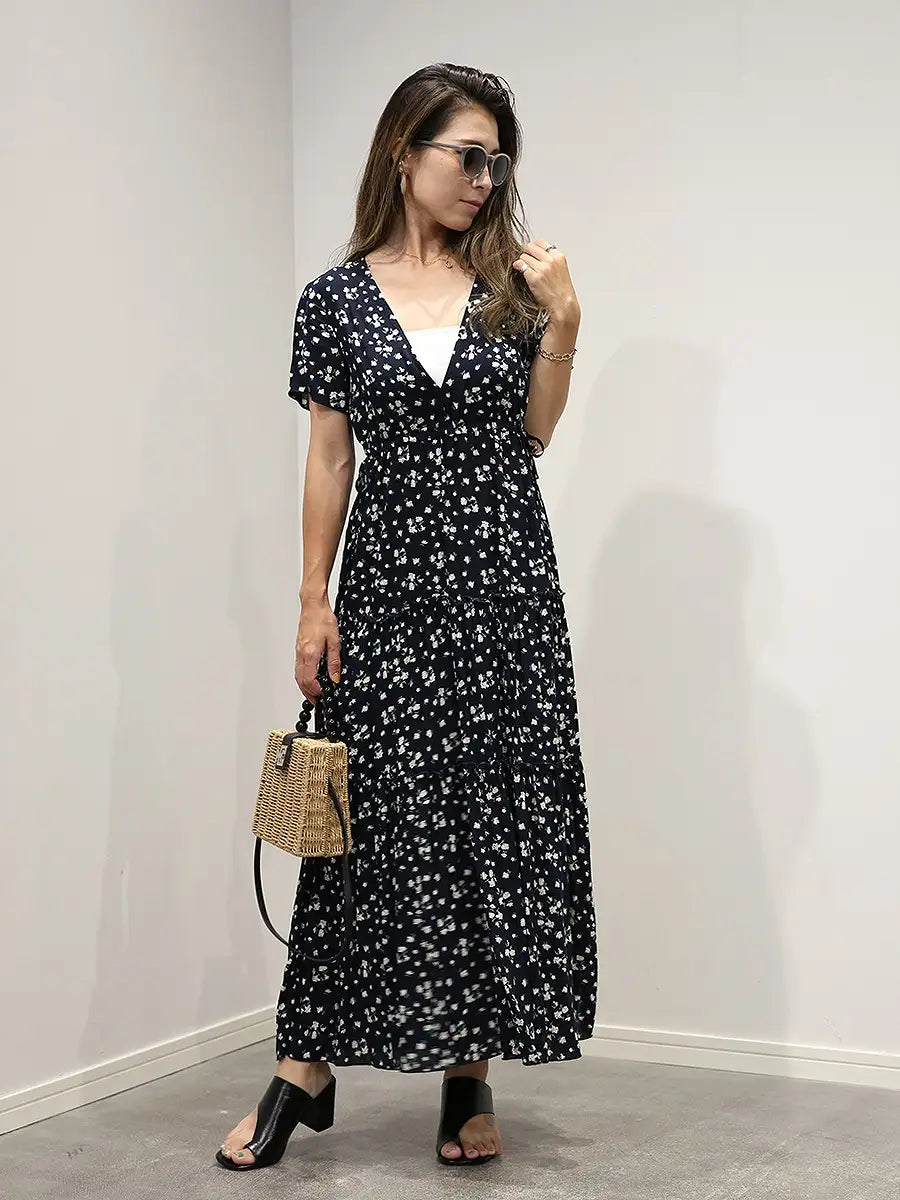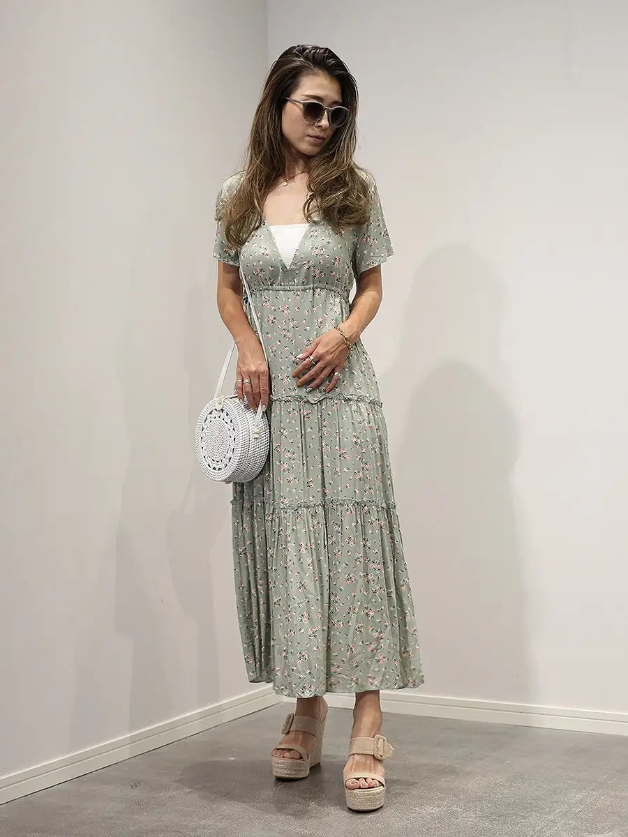 roomy by the sea(ルーミーバイザシー)花柄ティアードマキシワンピース。