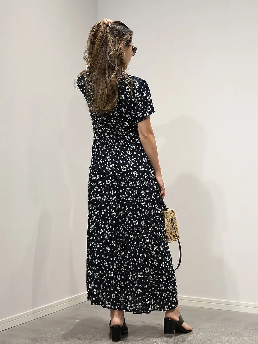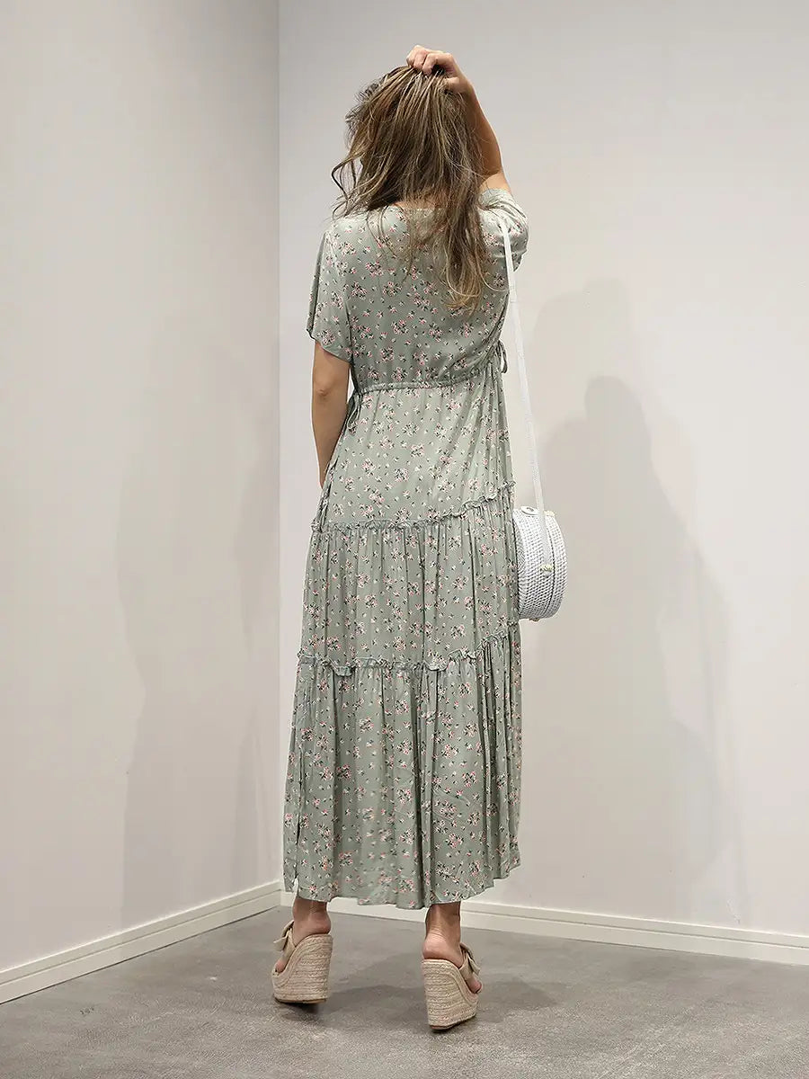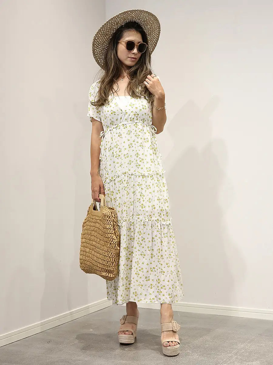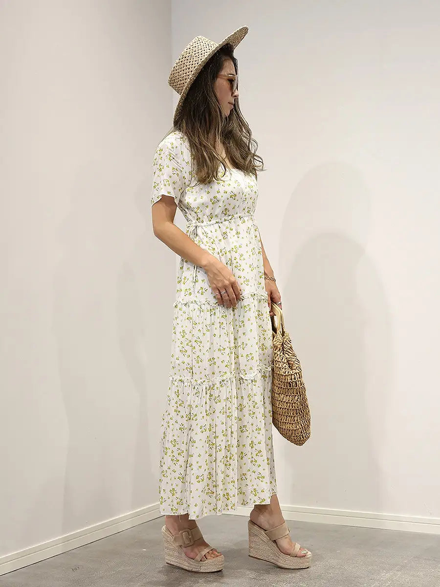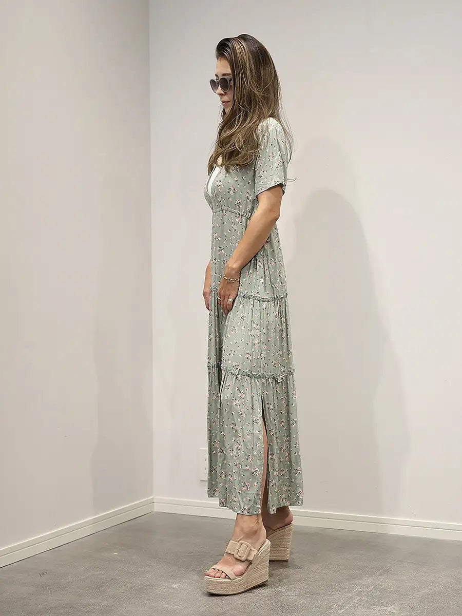 roomy by the sea(ルーミーバイザシー)花柄ティアードマキシワンピース。