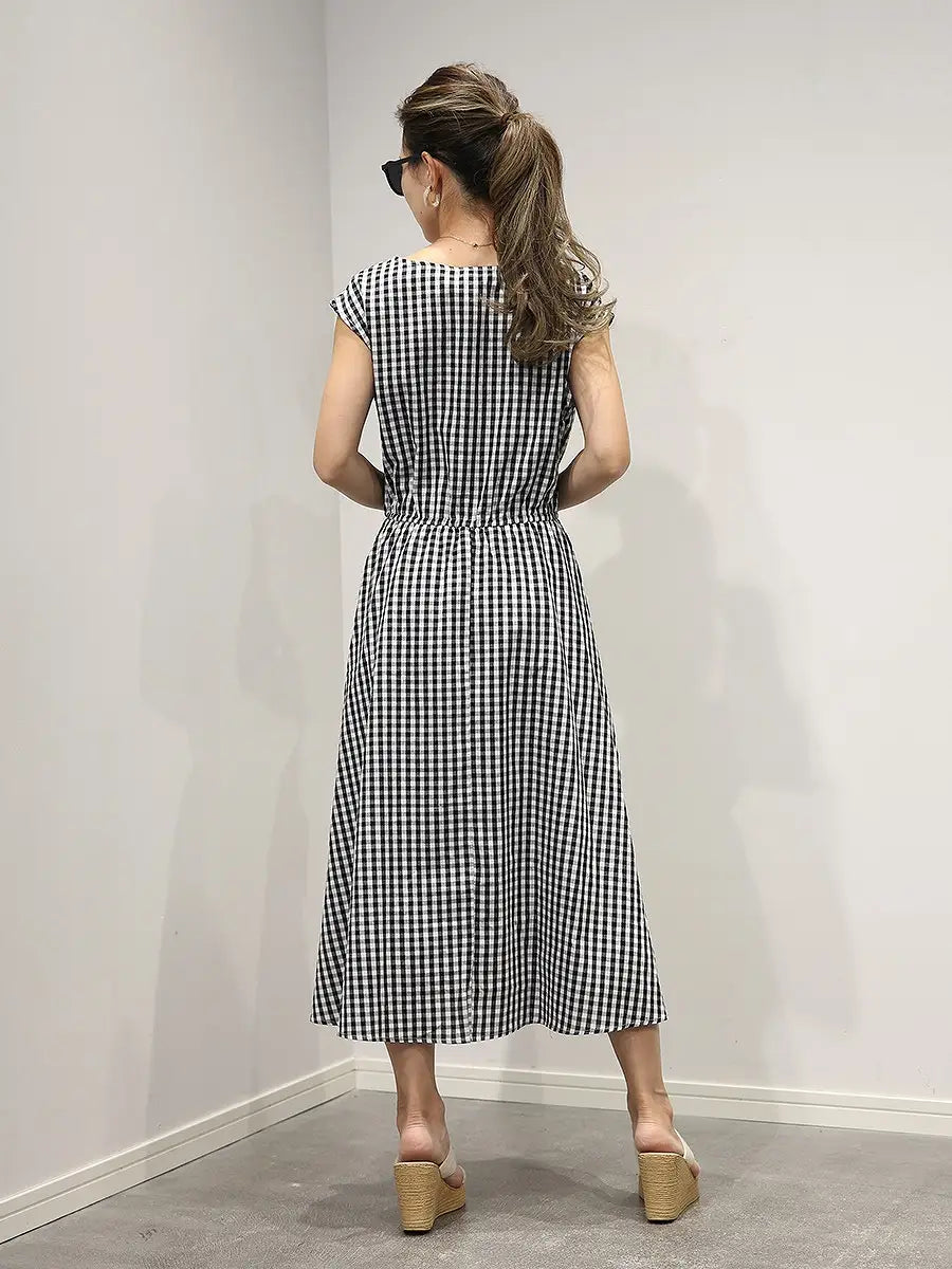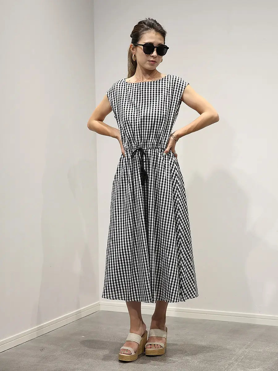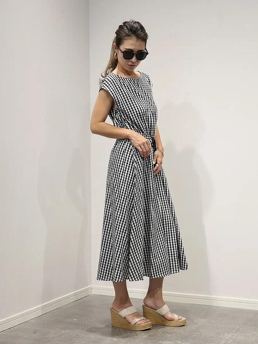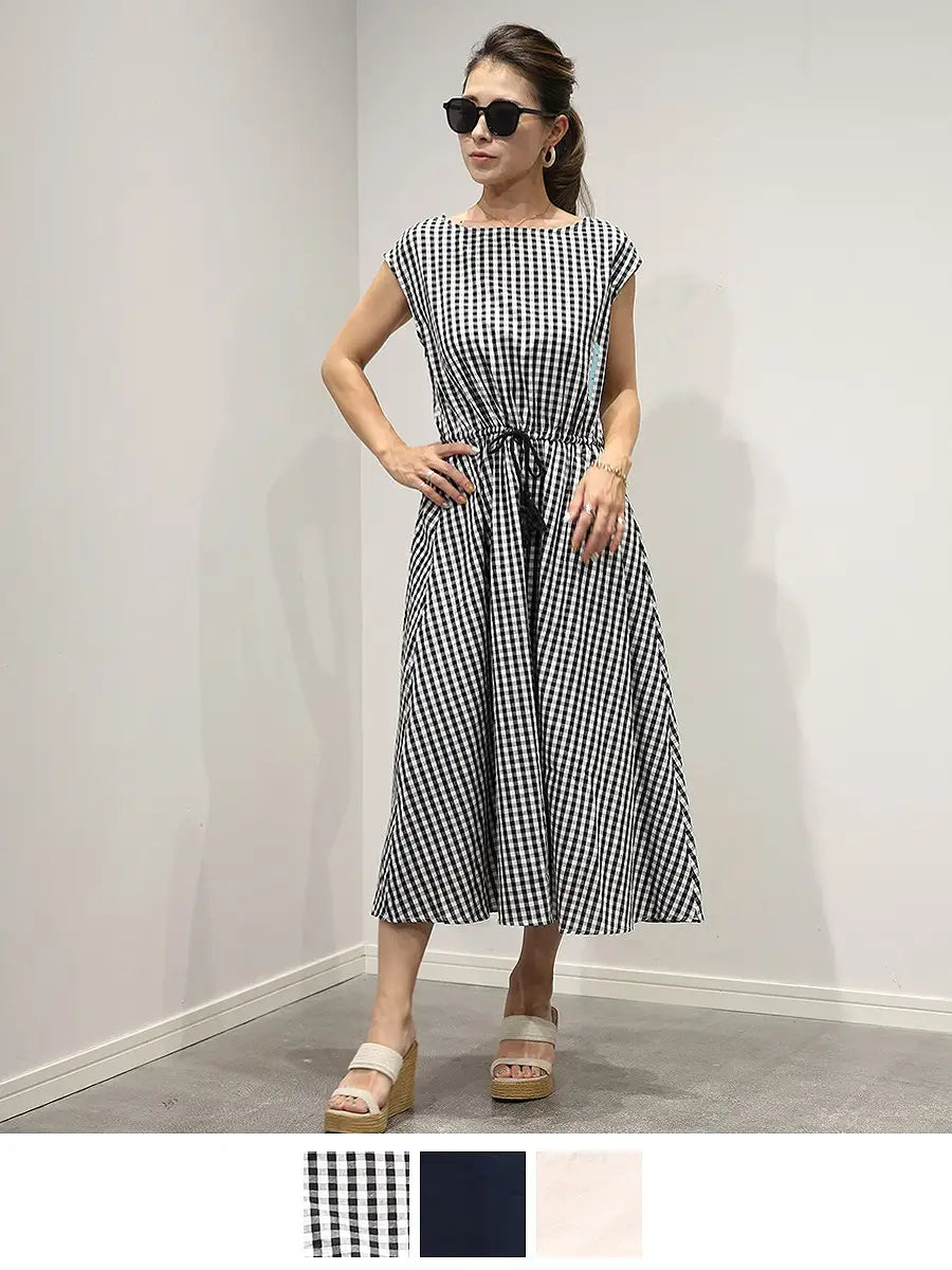 roomy by the sea(ルーミーバイザシー)無地&チェック柄マキシワンピース。