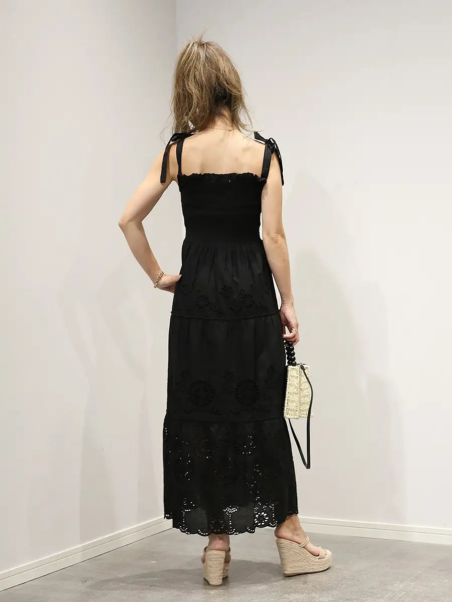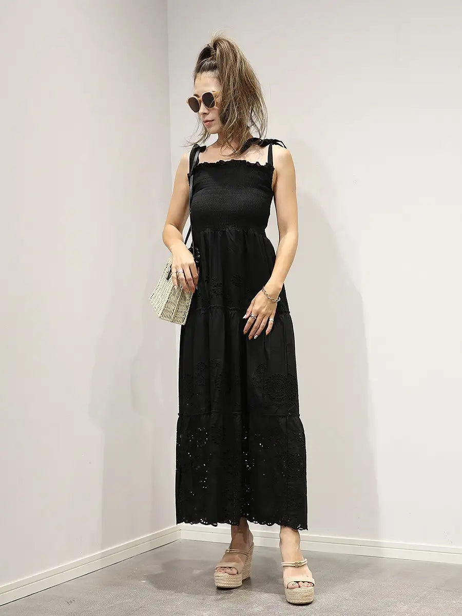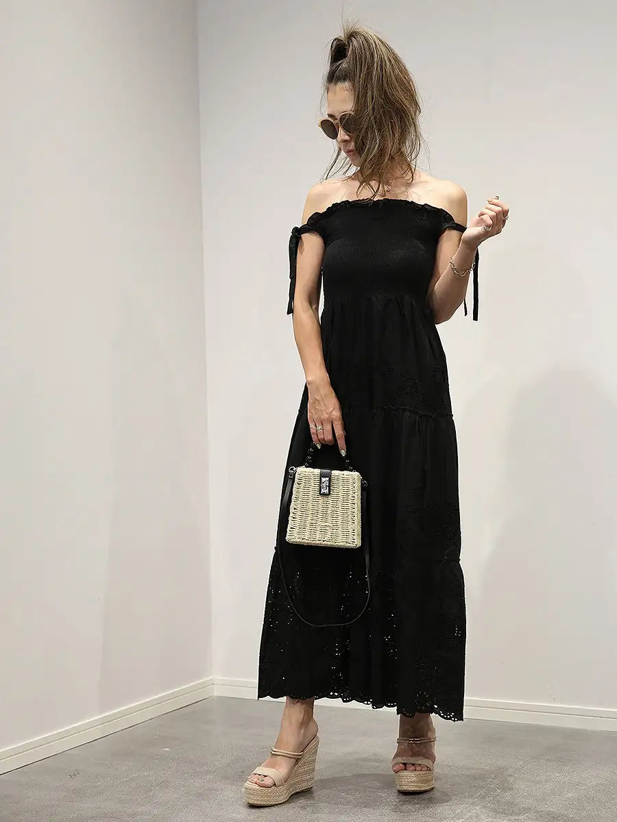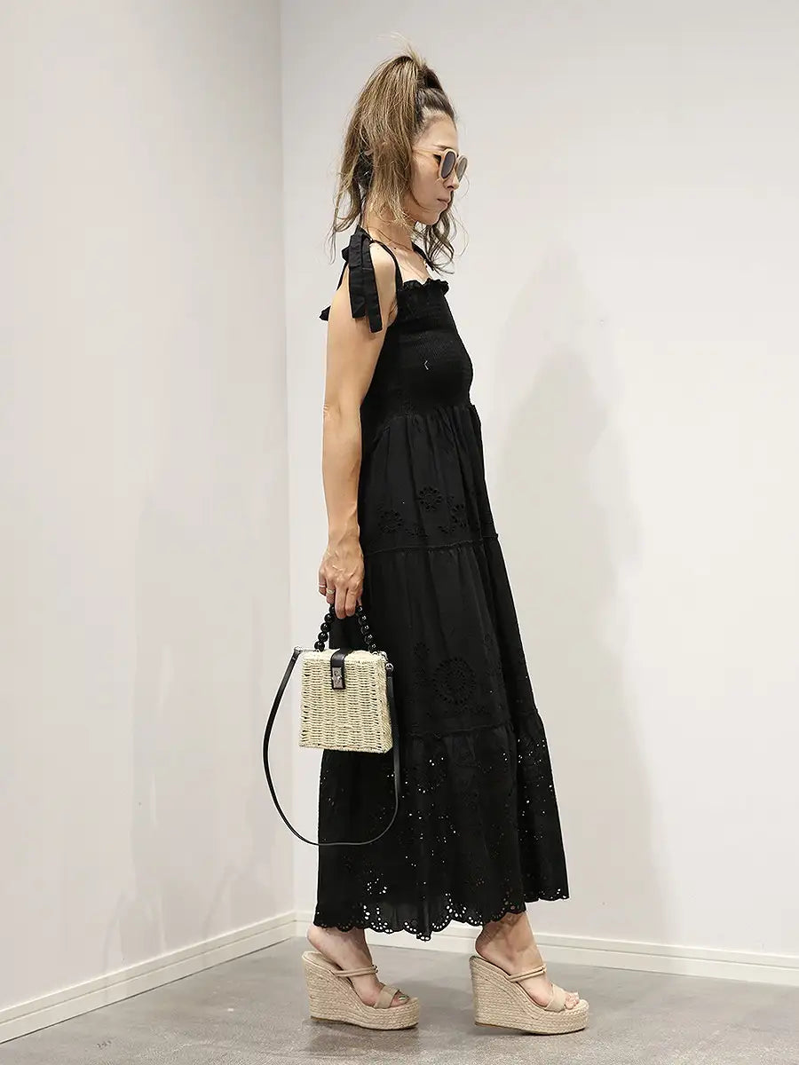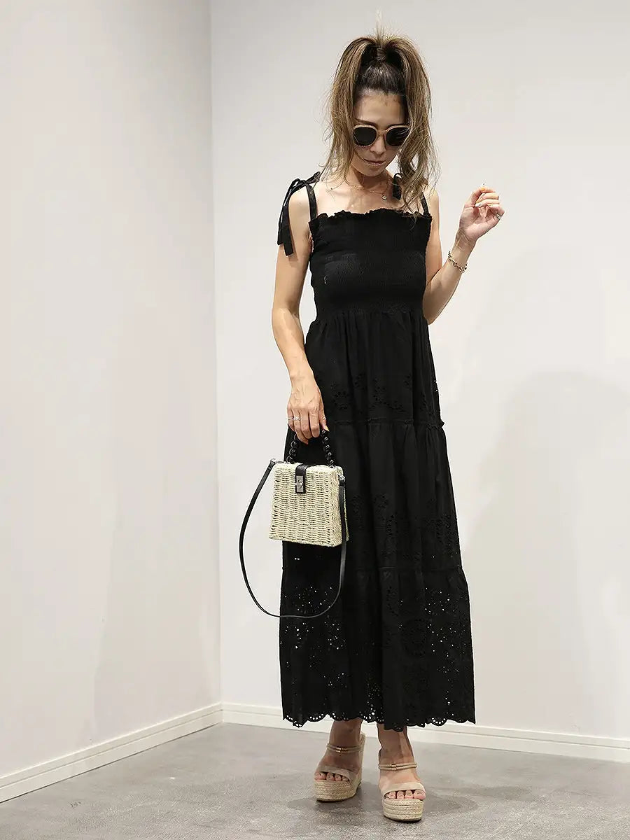 roomy by the sea(ルーミーバイザシー)シャーリング刺繍マキシワンピース。