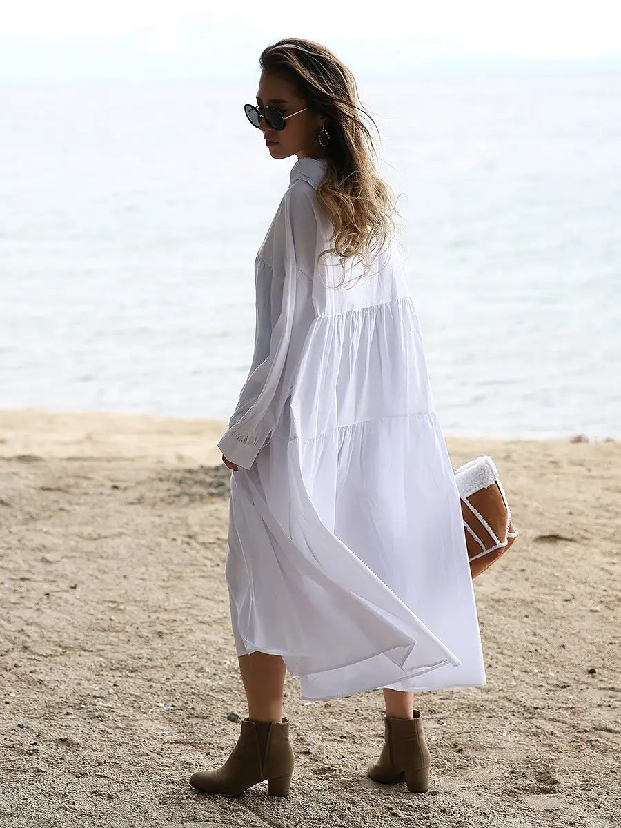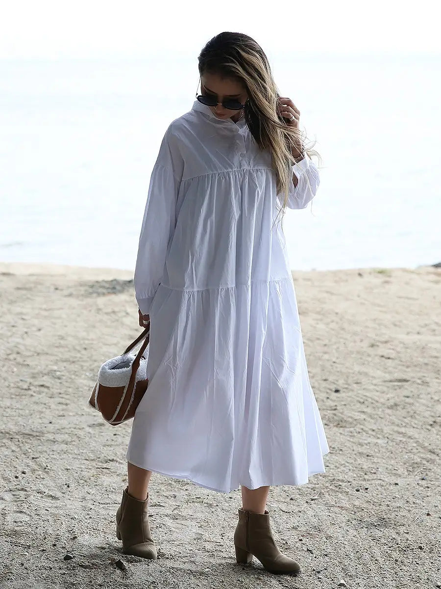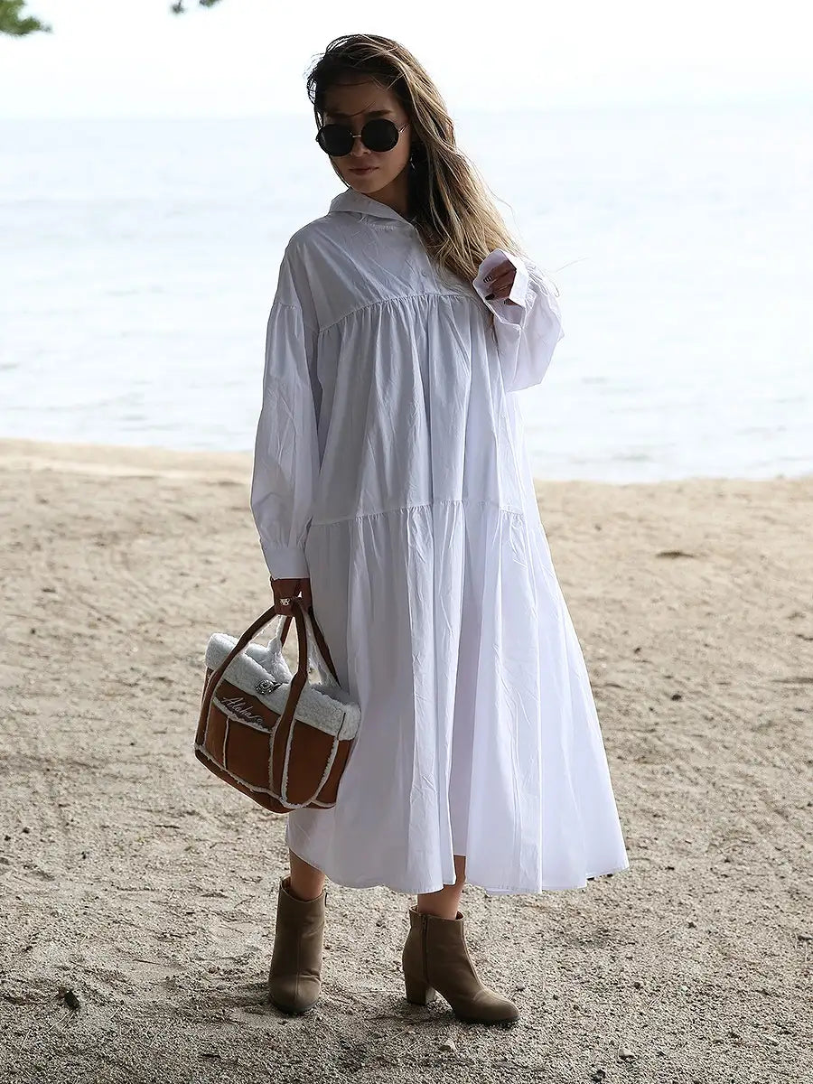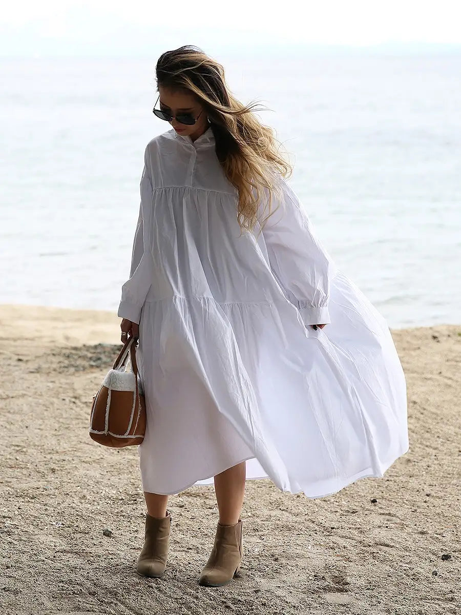 roomy by the sea(ルーミーバイザシー)Aラインティアードマキシワンピースです。