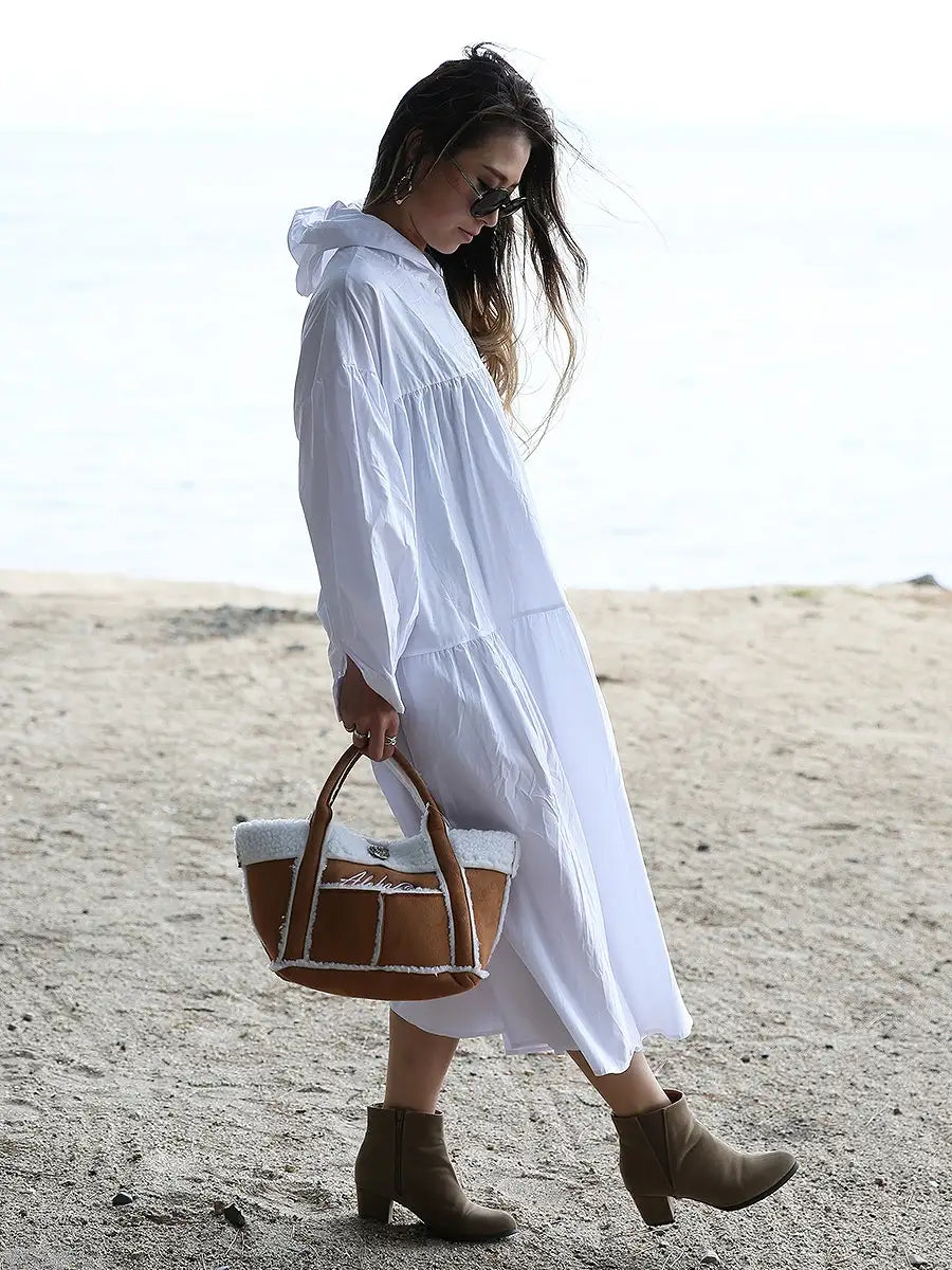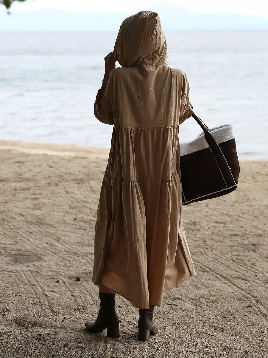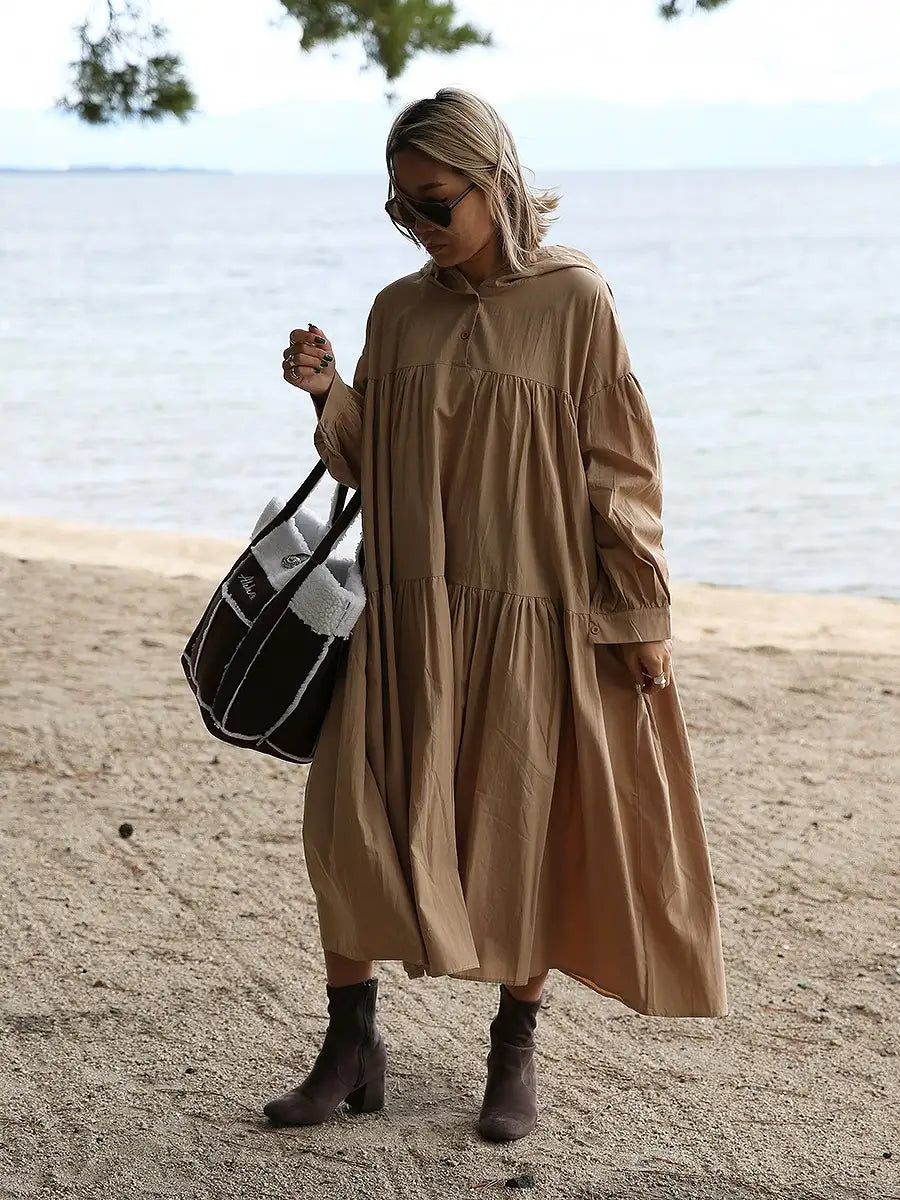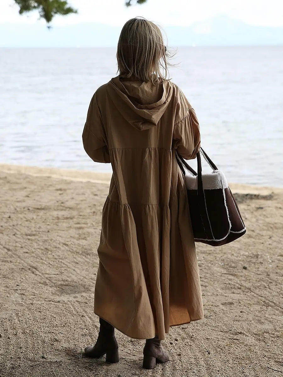 roomy by the sea(ルーミーバイザシー)フード付き長袖フレアマキシワンピース