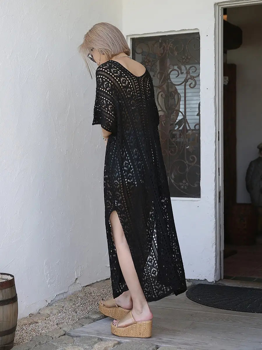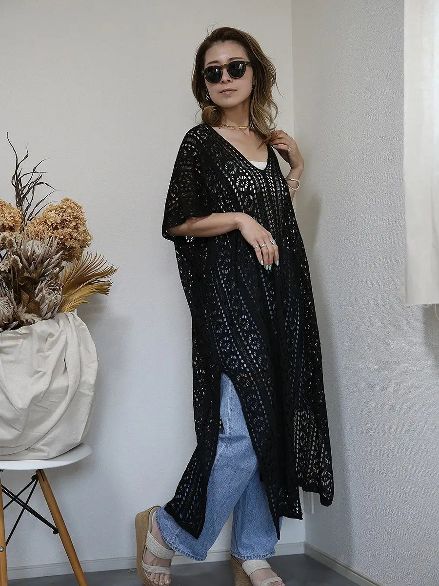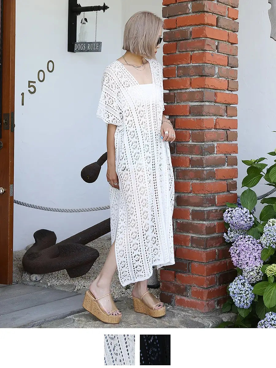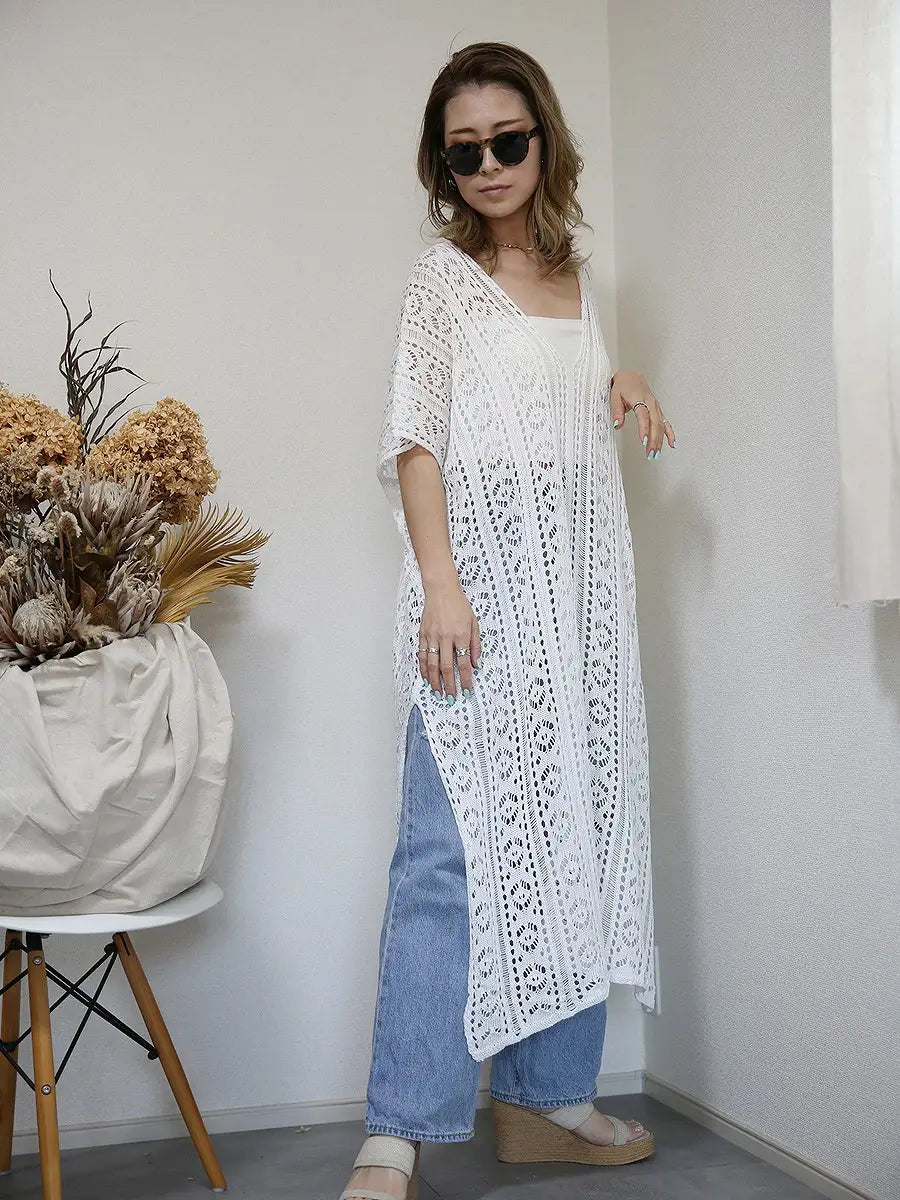 ロング丈のサマーニットはリゾートシーンでは水着の上にサラッと!