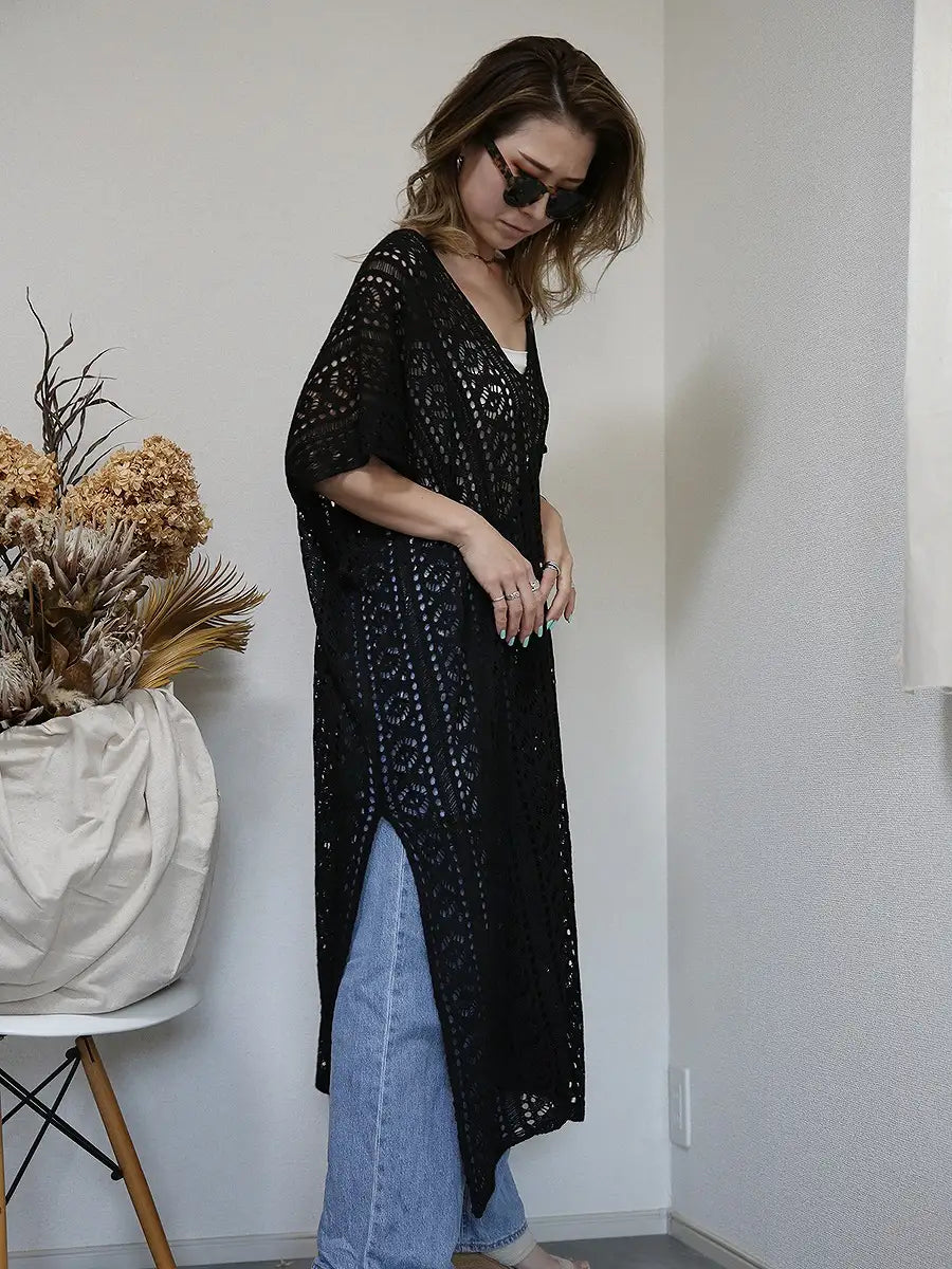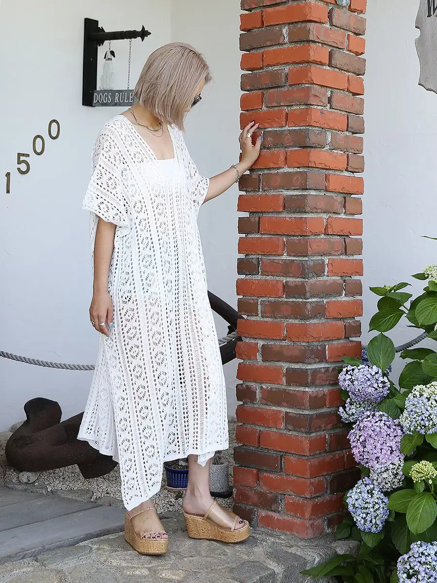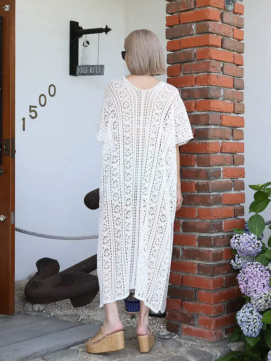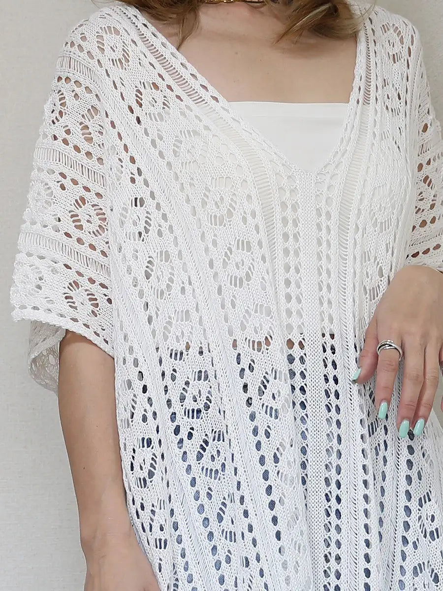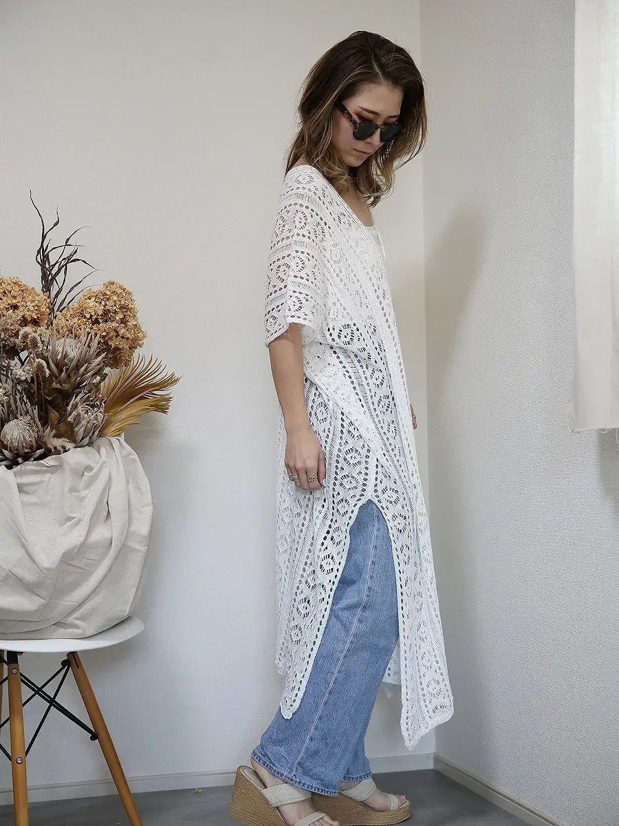 ロング丈のサマーニットはリゾートシーンでは水着の上にサラッと!