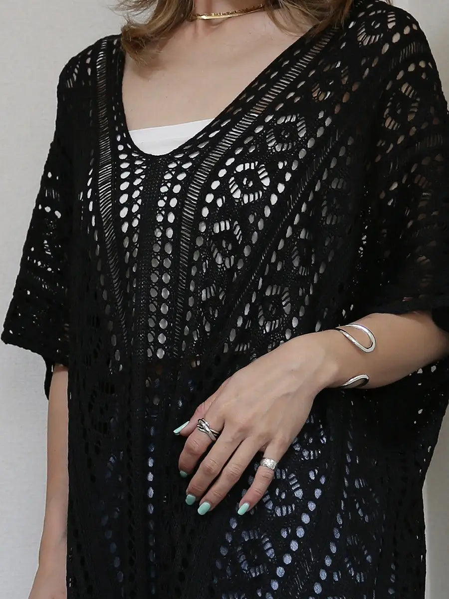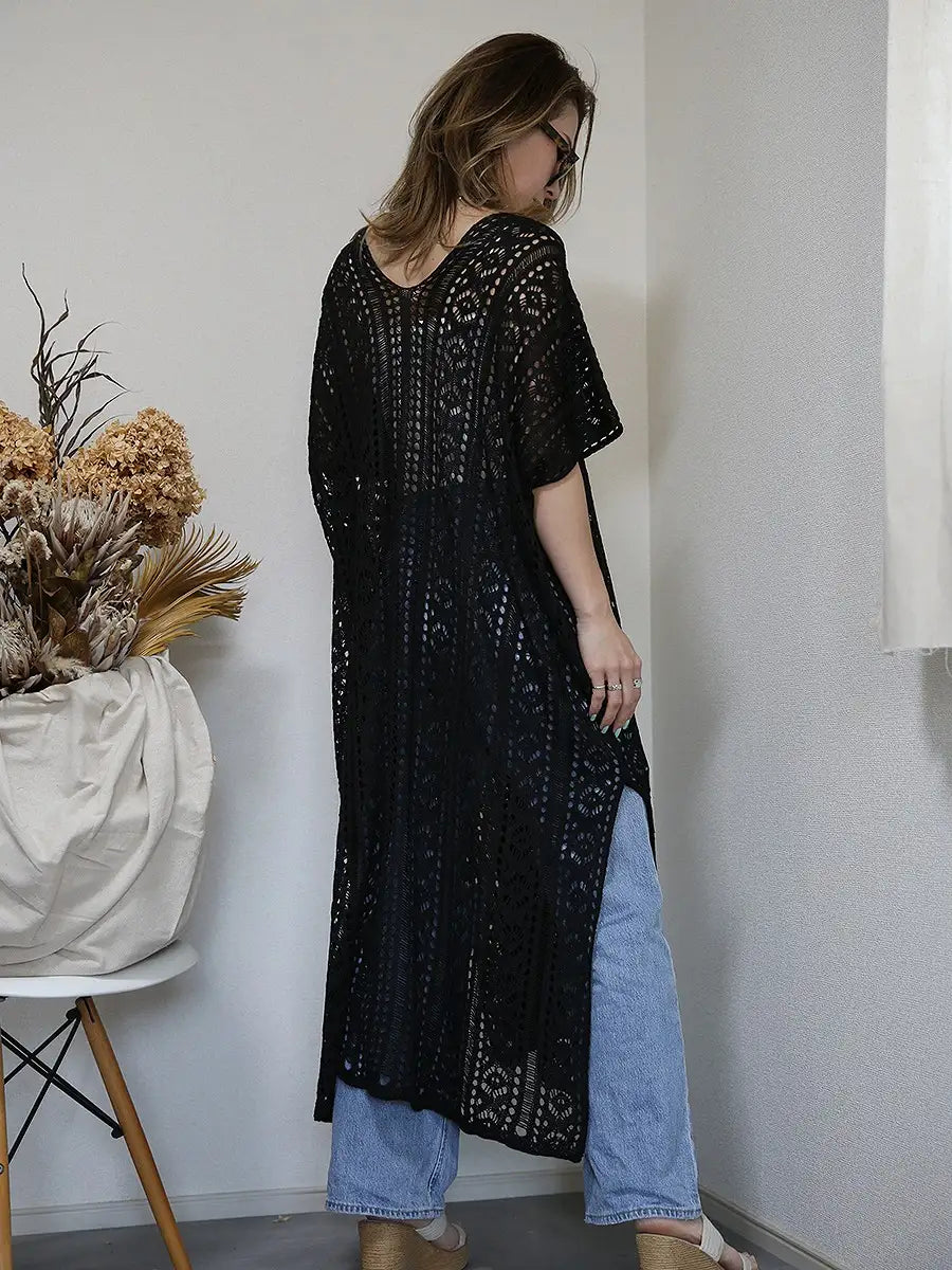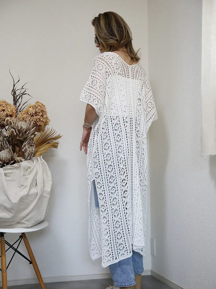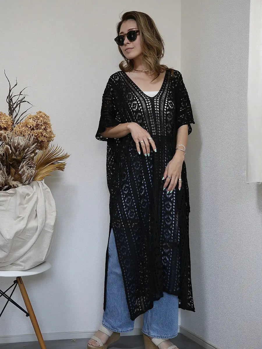 ロング丈のサマーニットはリゾートシーンでは水着の上にサラッと!