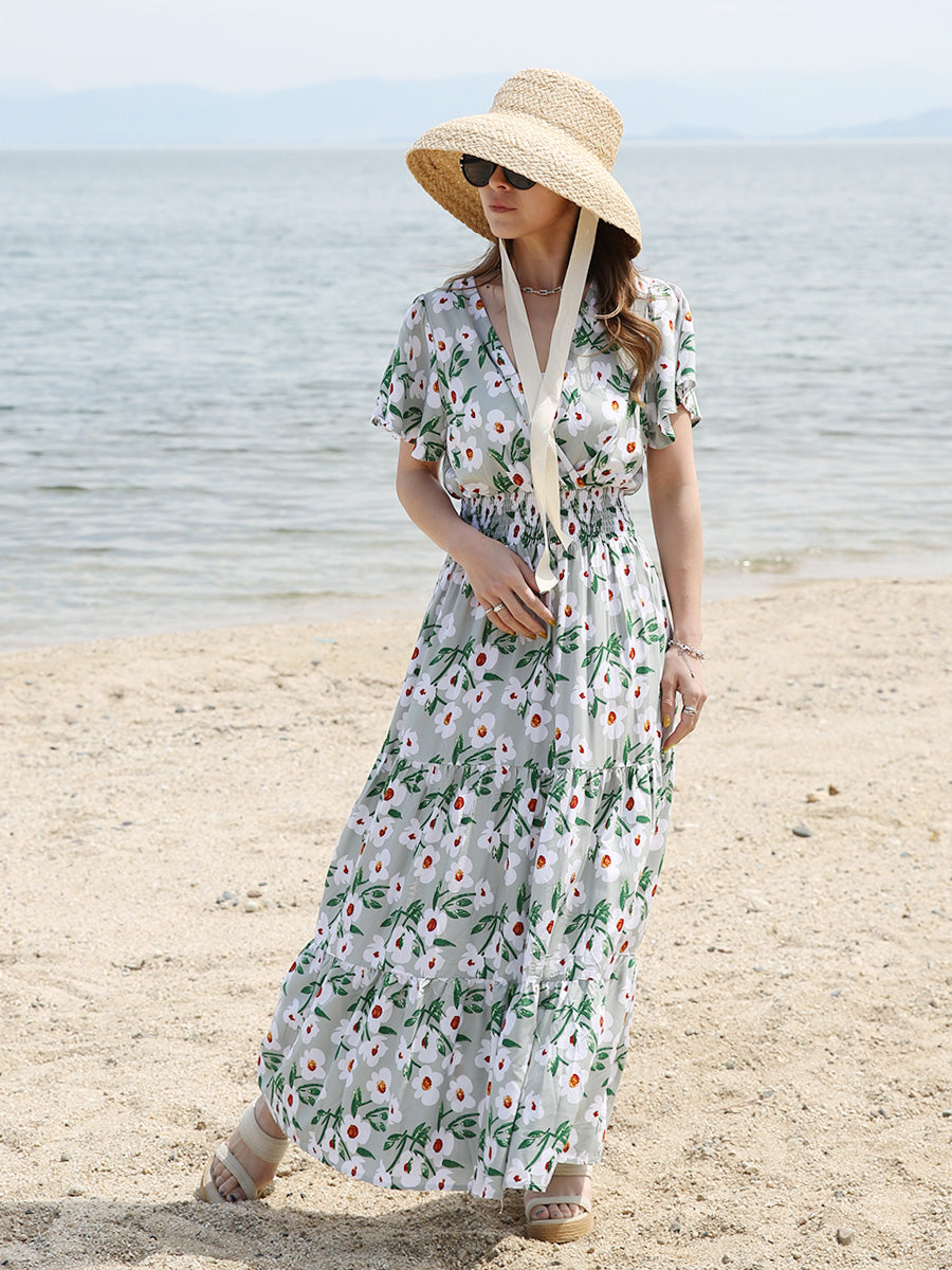 romy by the sea(ルーミーバイザシー)花柄半袖マキシワンピース