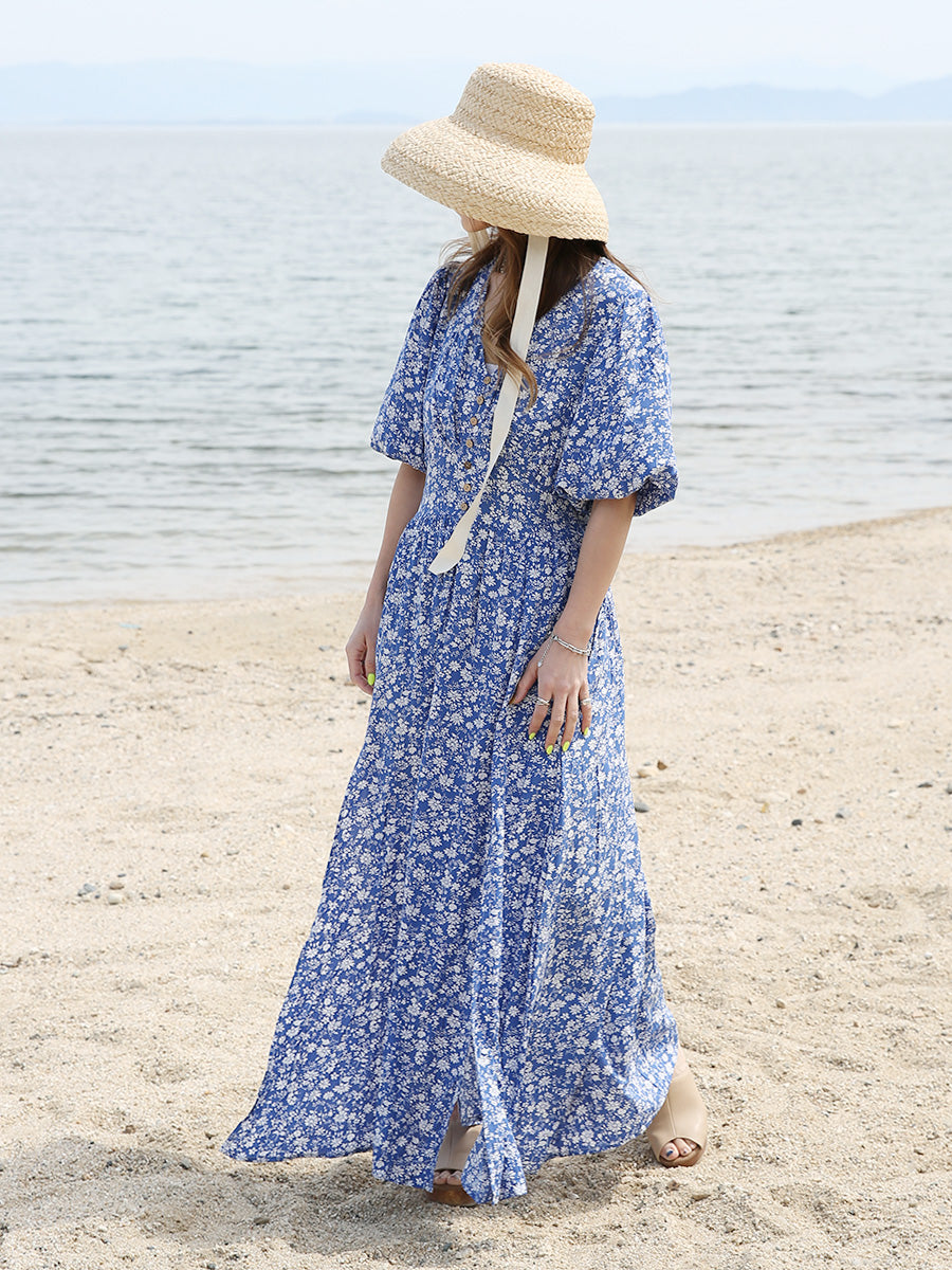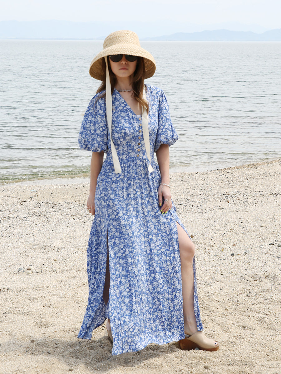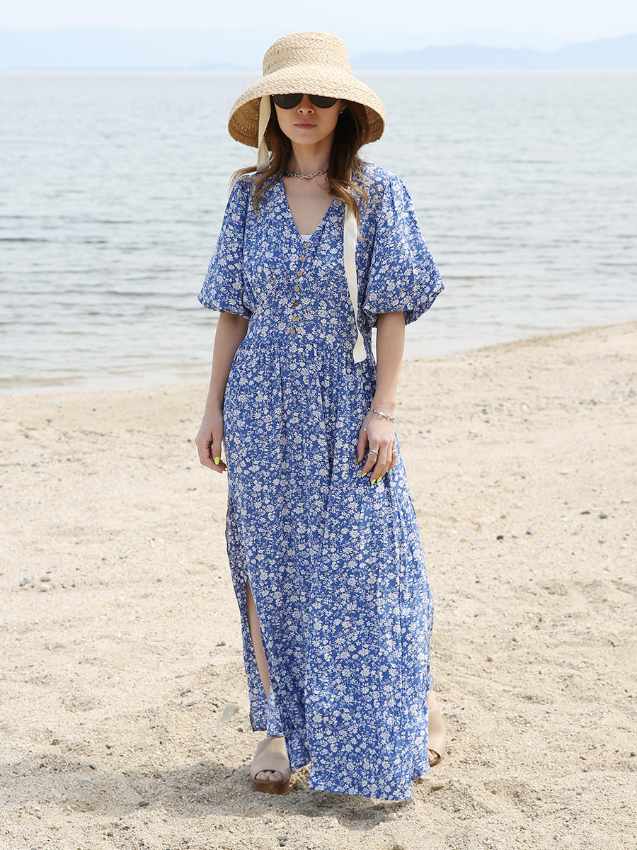 romy by the sea(ルーミーバイザシー)小花柄バルーンスリーブマキシワンピース