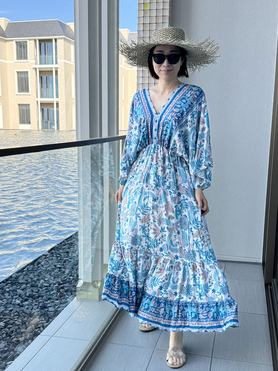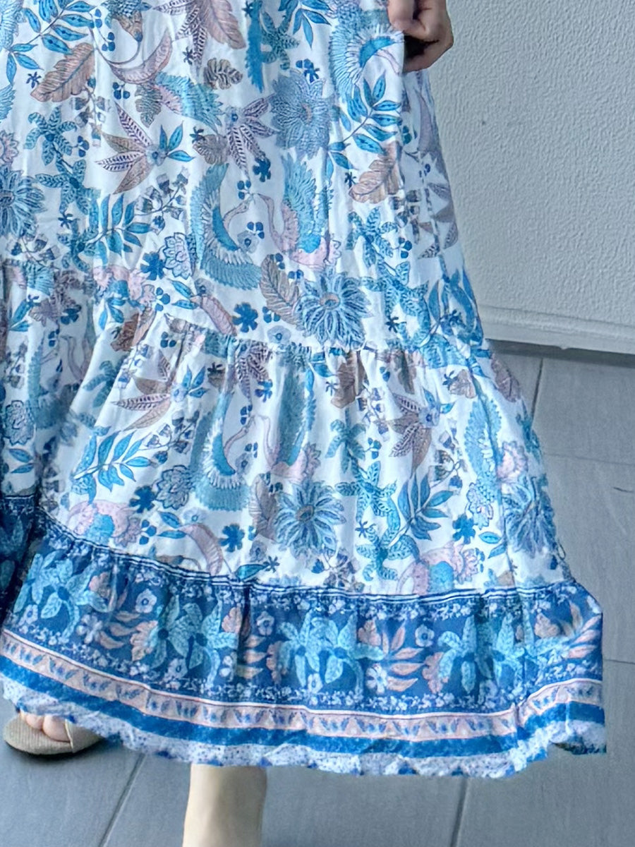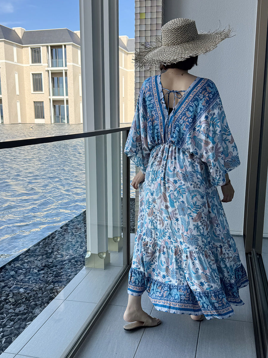 romy by the sea(ルーミーバイザシー)花柄バードVネックマキシワンピース