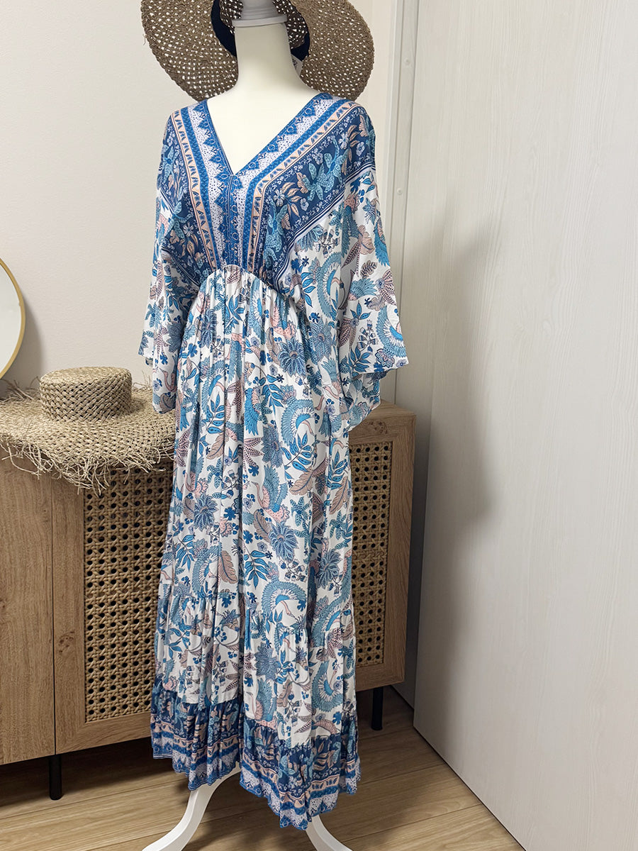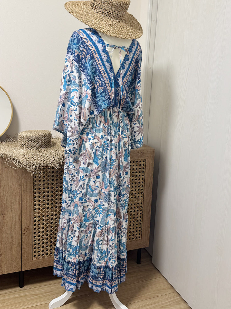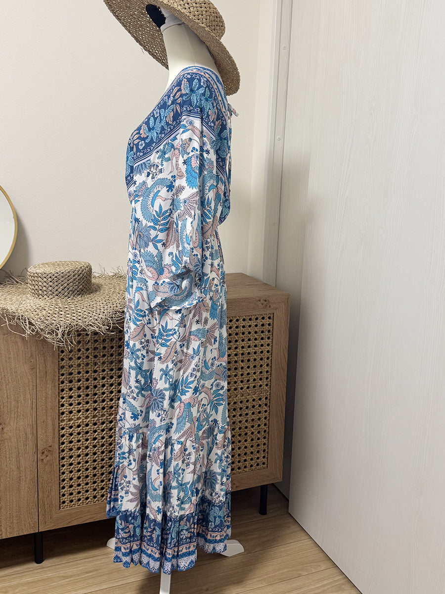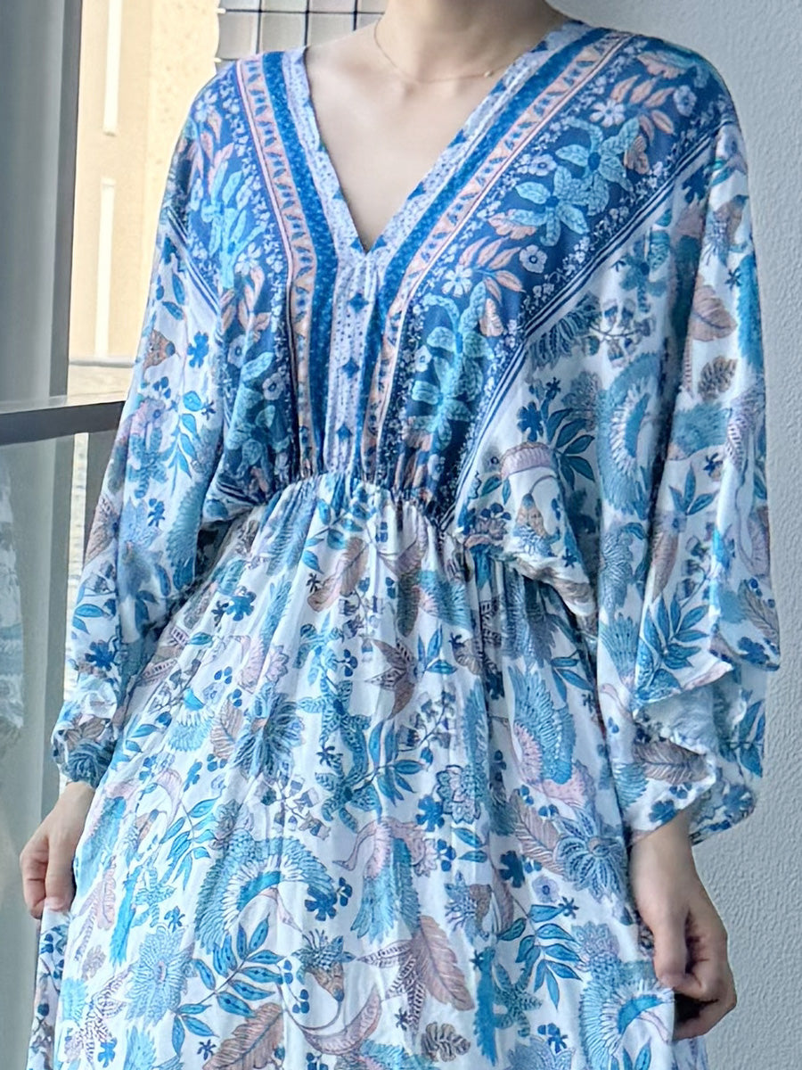 romy by the sea(ルーミーバイザシー)花柄バードVネックマキシワンピース