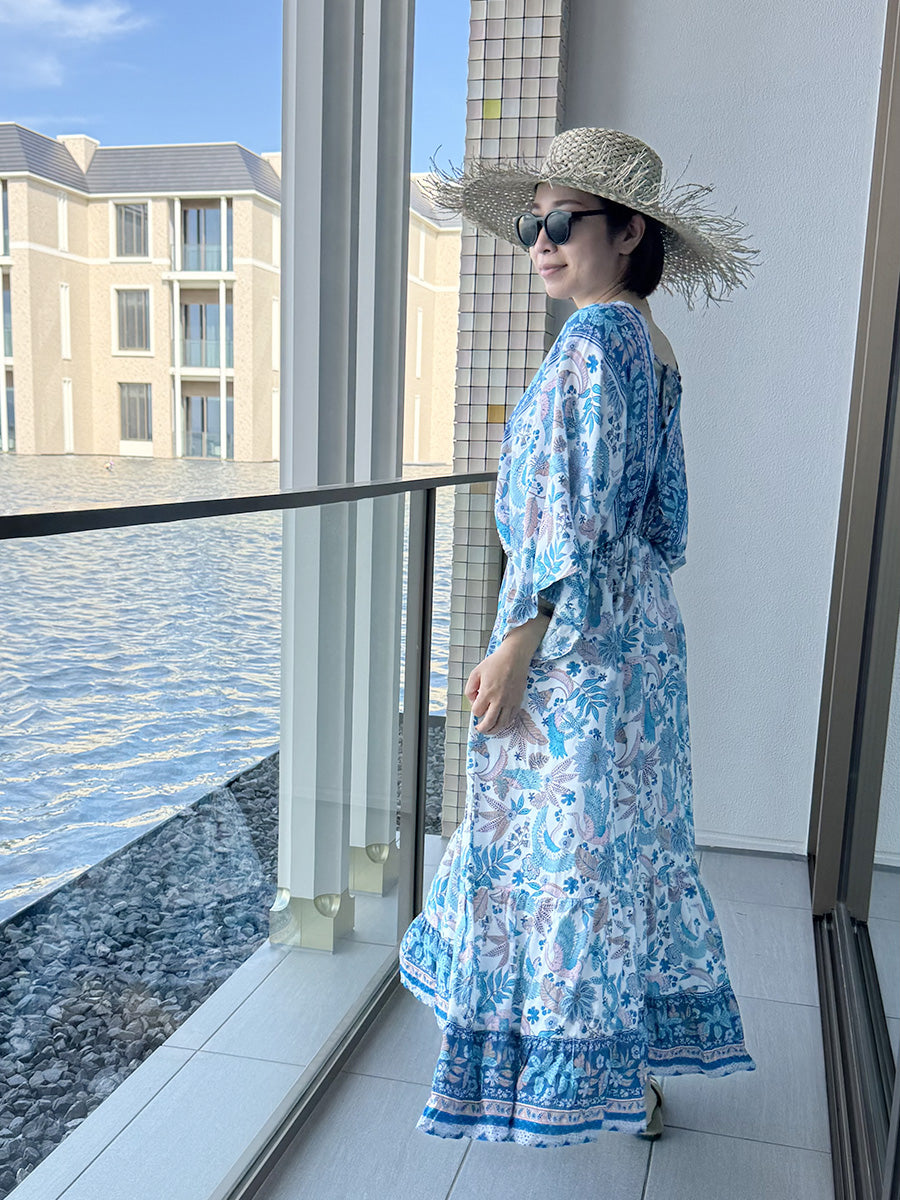 爽やかなブルーカラーで着るだけでリゾート感溢れます。