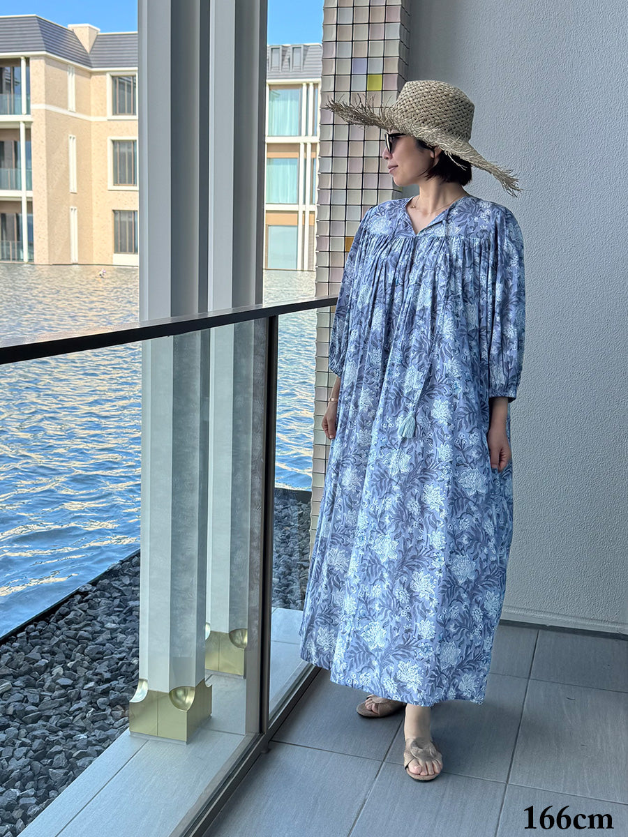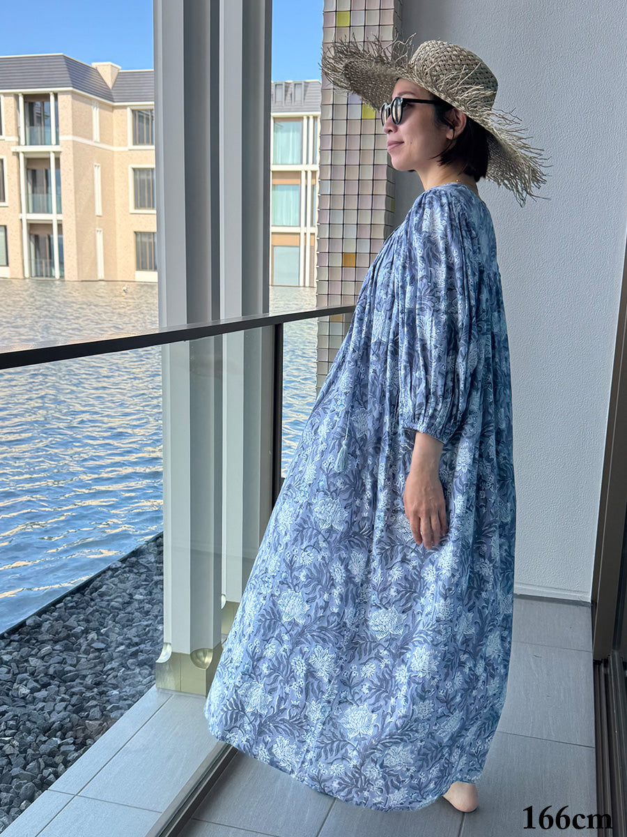 LAUT BLUE(ラウトブルー)カフタンワンピース/ブルー花柄
