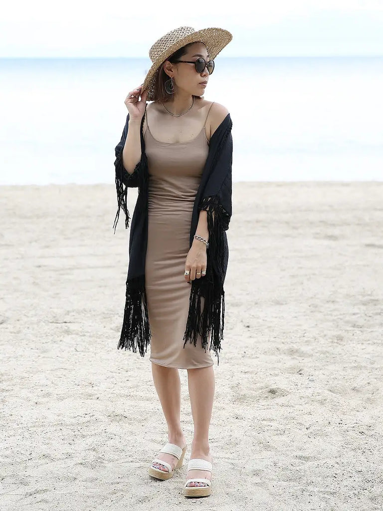 roomy by the sea(ルーミーバイザシー)背中ラウンドクロシェ編みフリンジカバーアップ羽織り