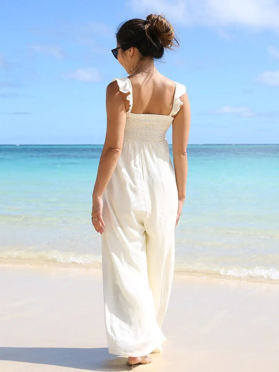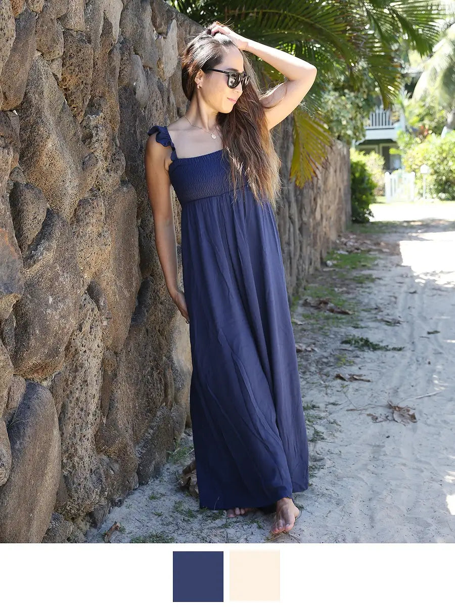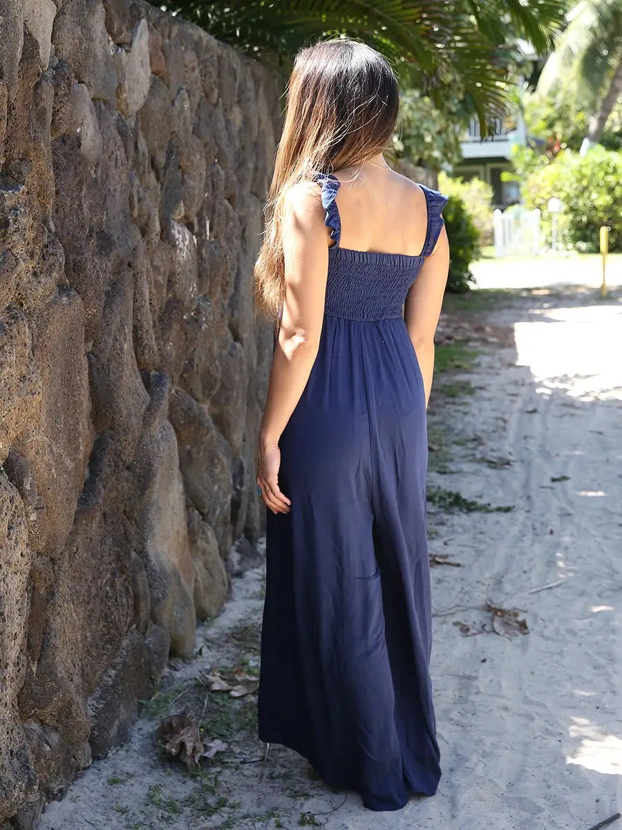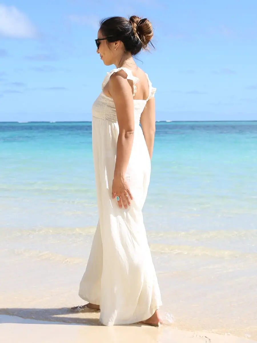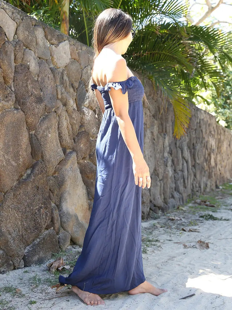 軽くて涼しげな「レーヨン」生地を採用したロング丈ロンパースはオフショルスタイルとショルダースタイルを楽しんで頂けます。