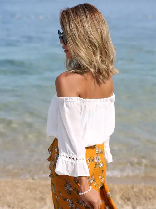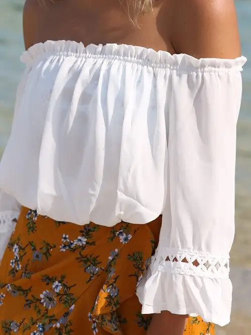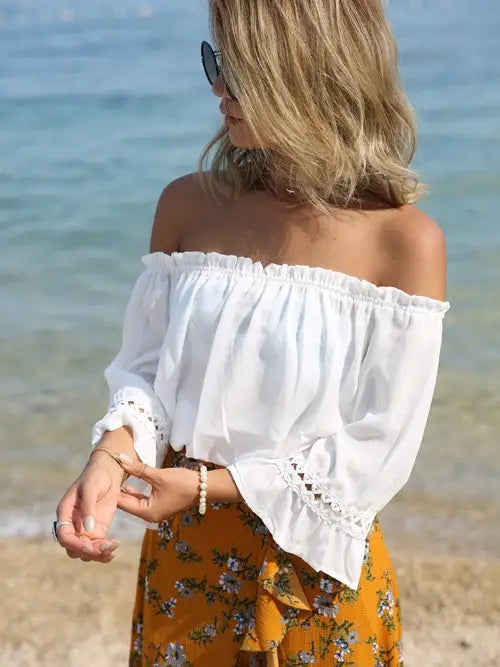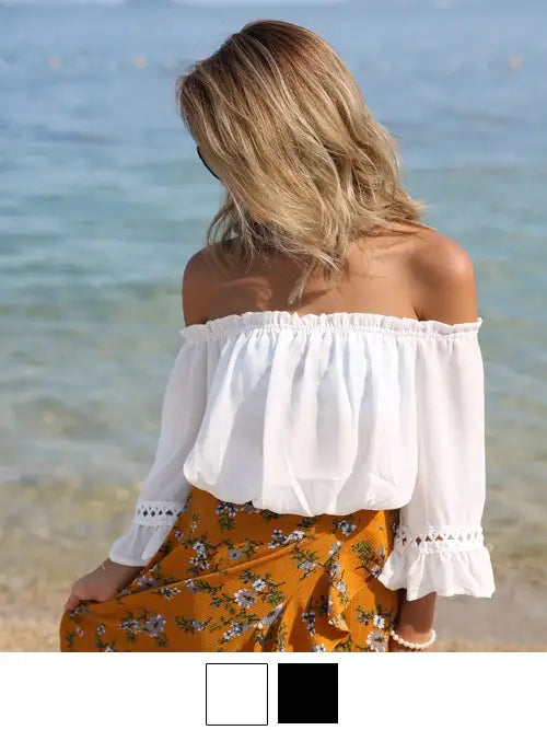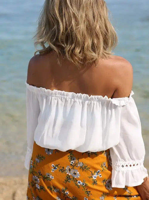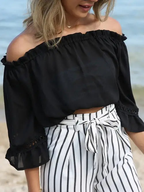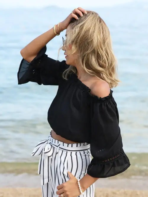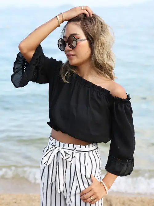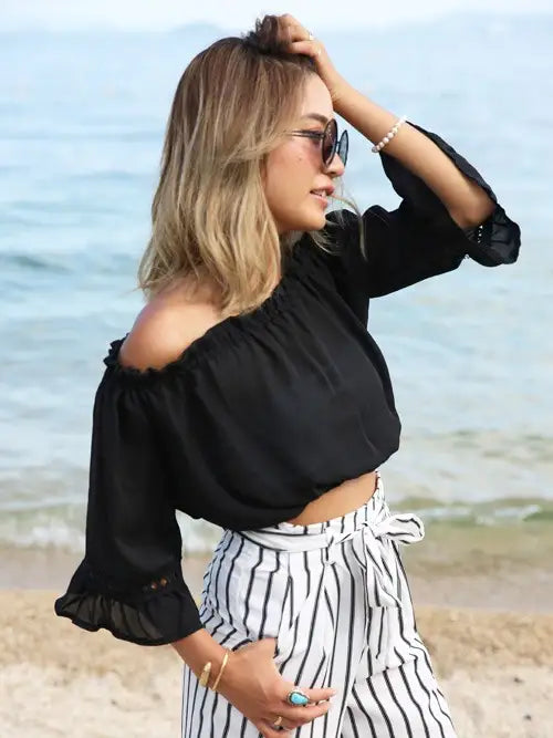 roomy by the sea(ルーミーバイザシー)オフショルショート丈トップス
