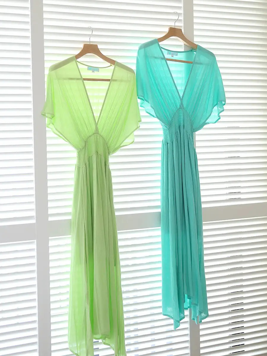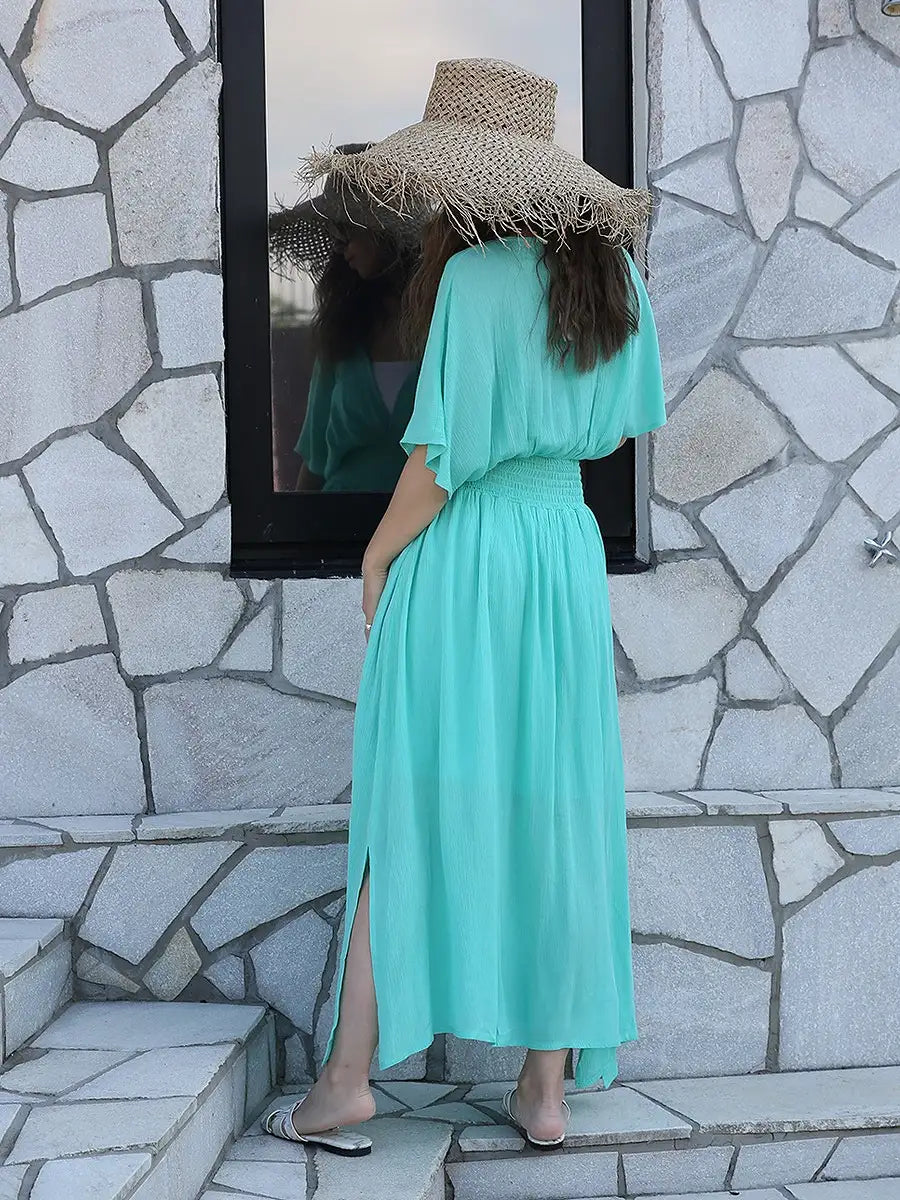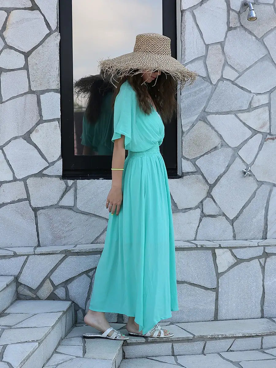 ビーチでもシティでも場所を選ばずサラッと1枚で大活躍する大人のマキシワンピースです!