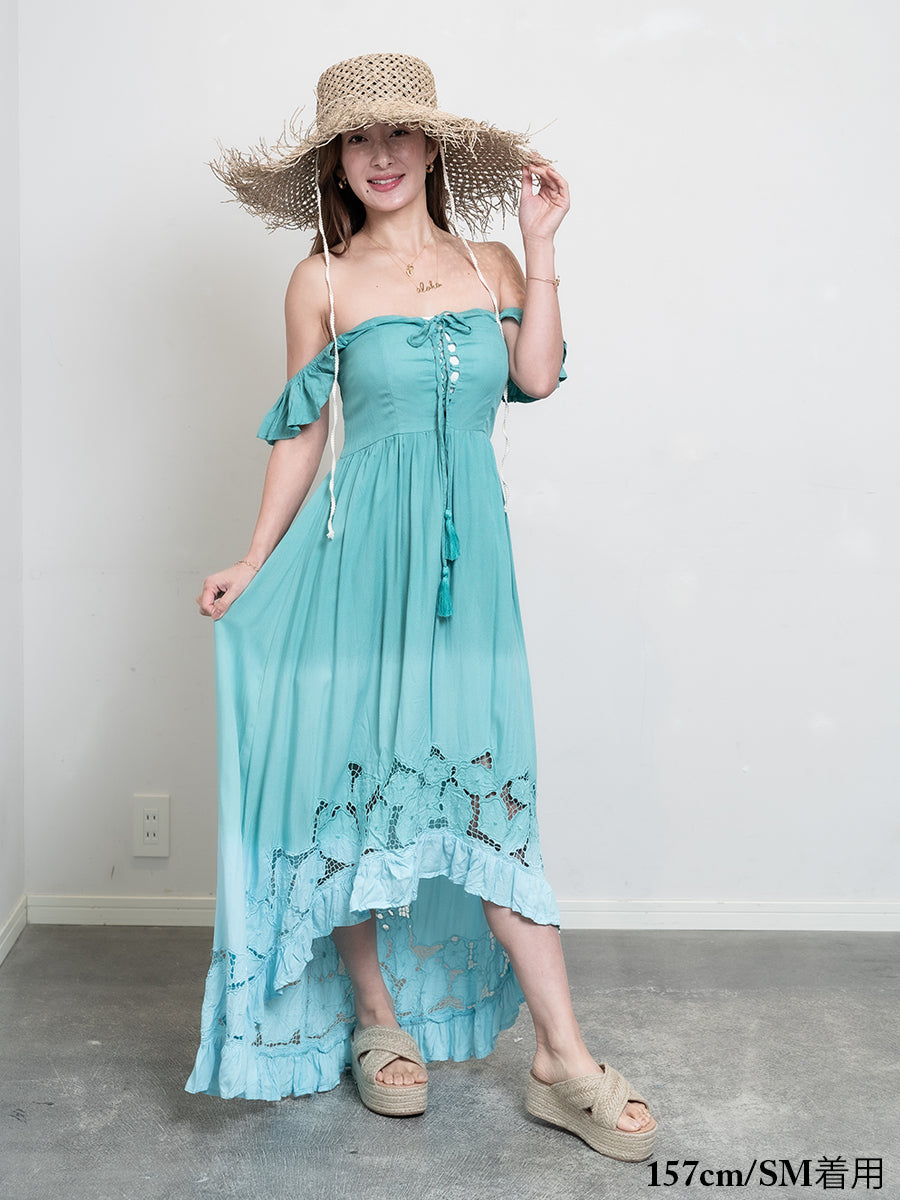 LAUT BLUE(ラウトブルー)カットワーク刺繍ハイローワンピース