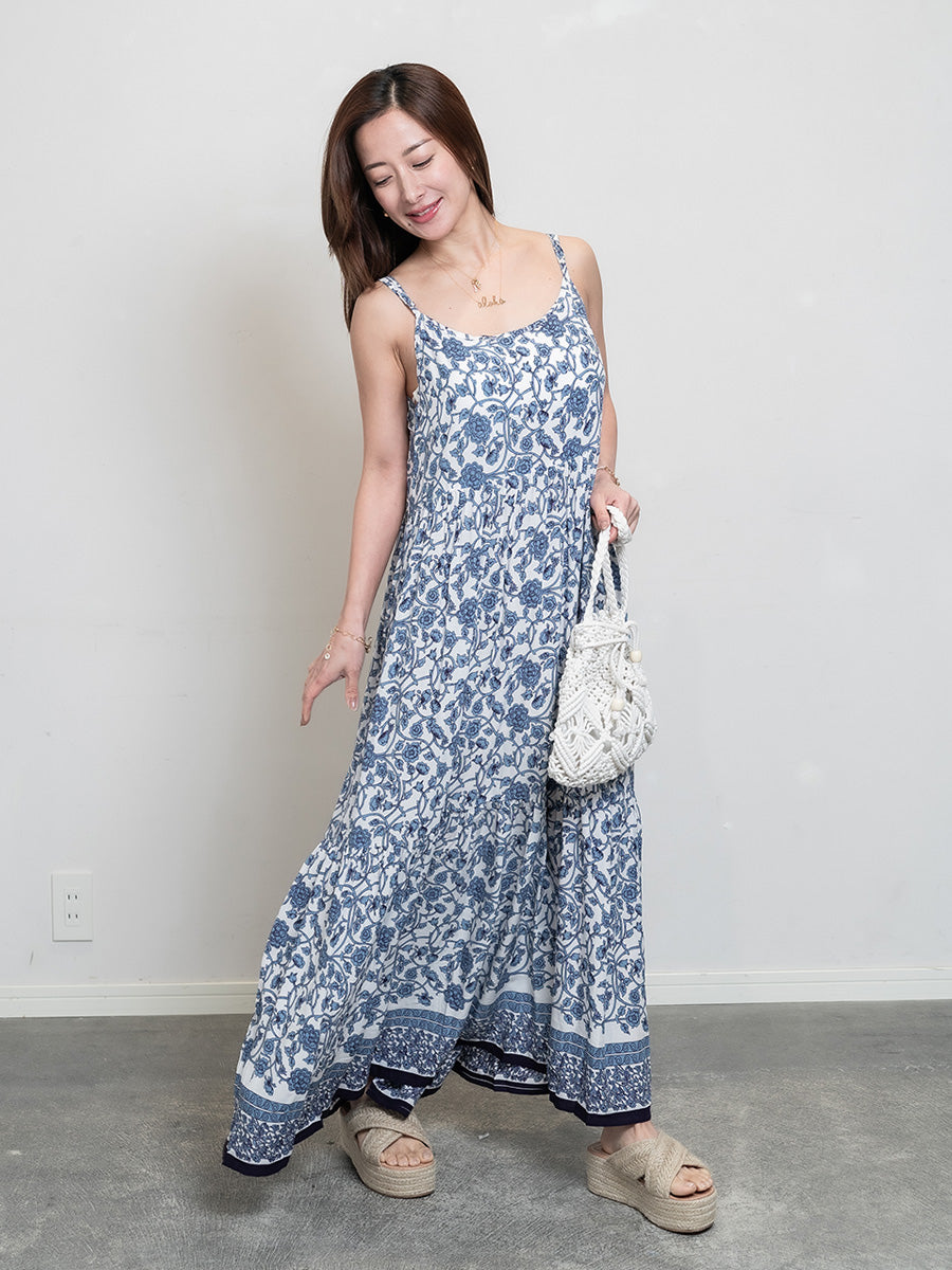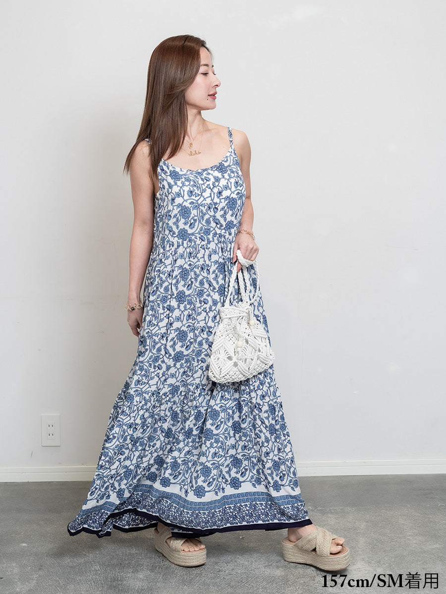 LAUT BLUE(ラウトブルー)キャミソールマキシワンピース/花柄ブルー