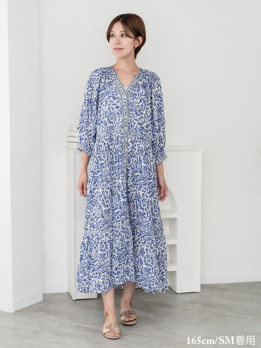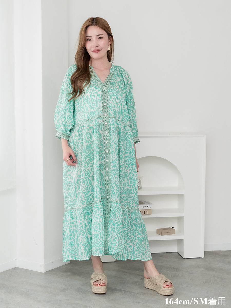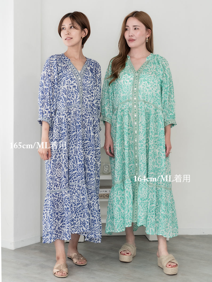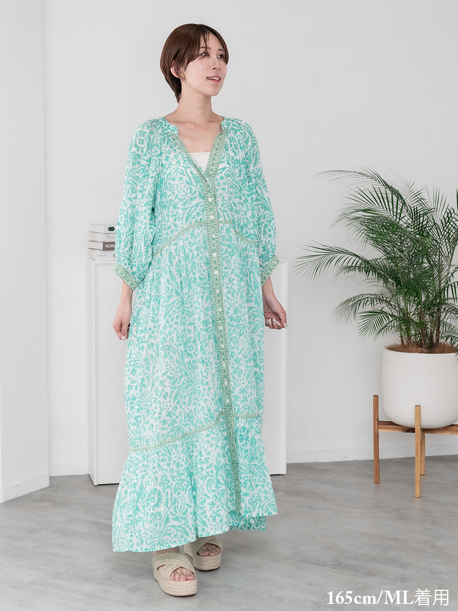 Eighty Seven(エイティセブン)インド綿フレア前ボタンワンピース