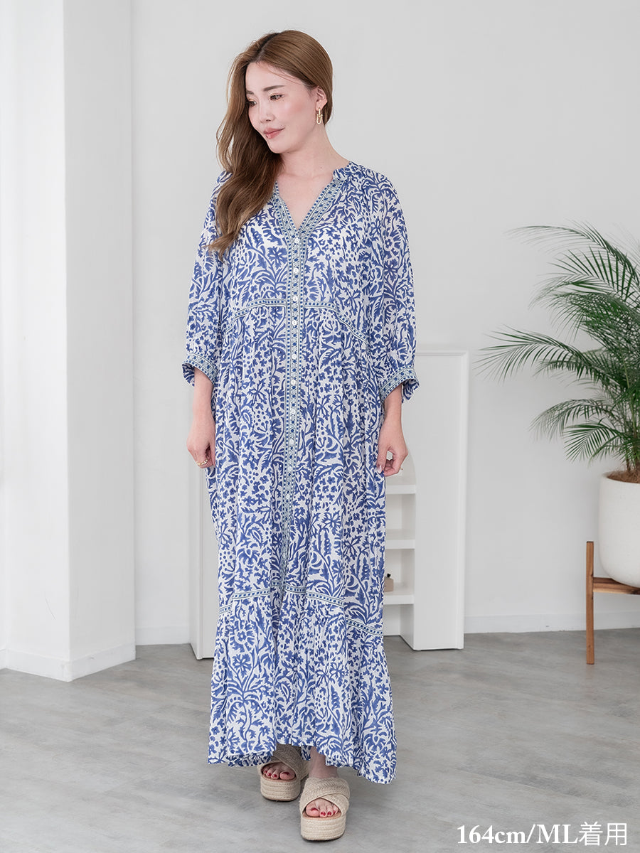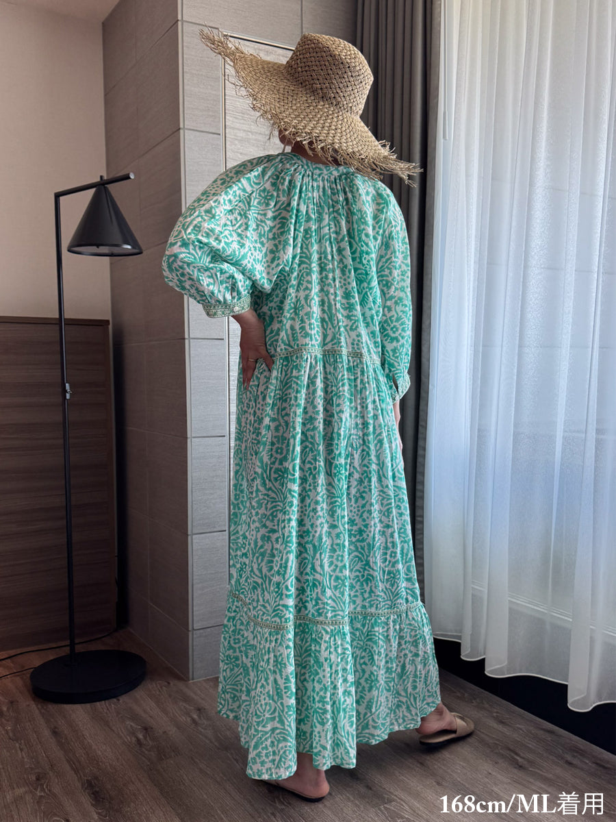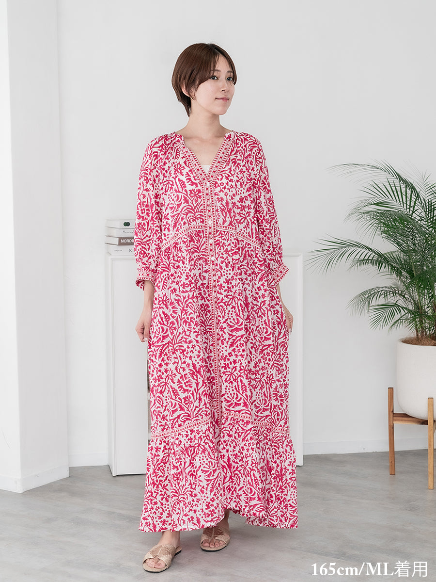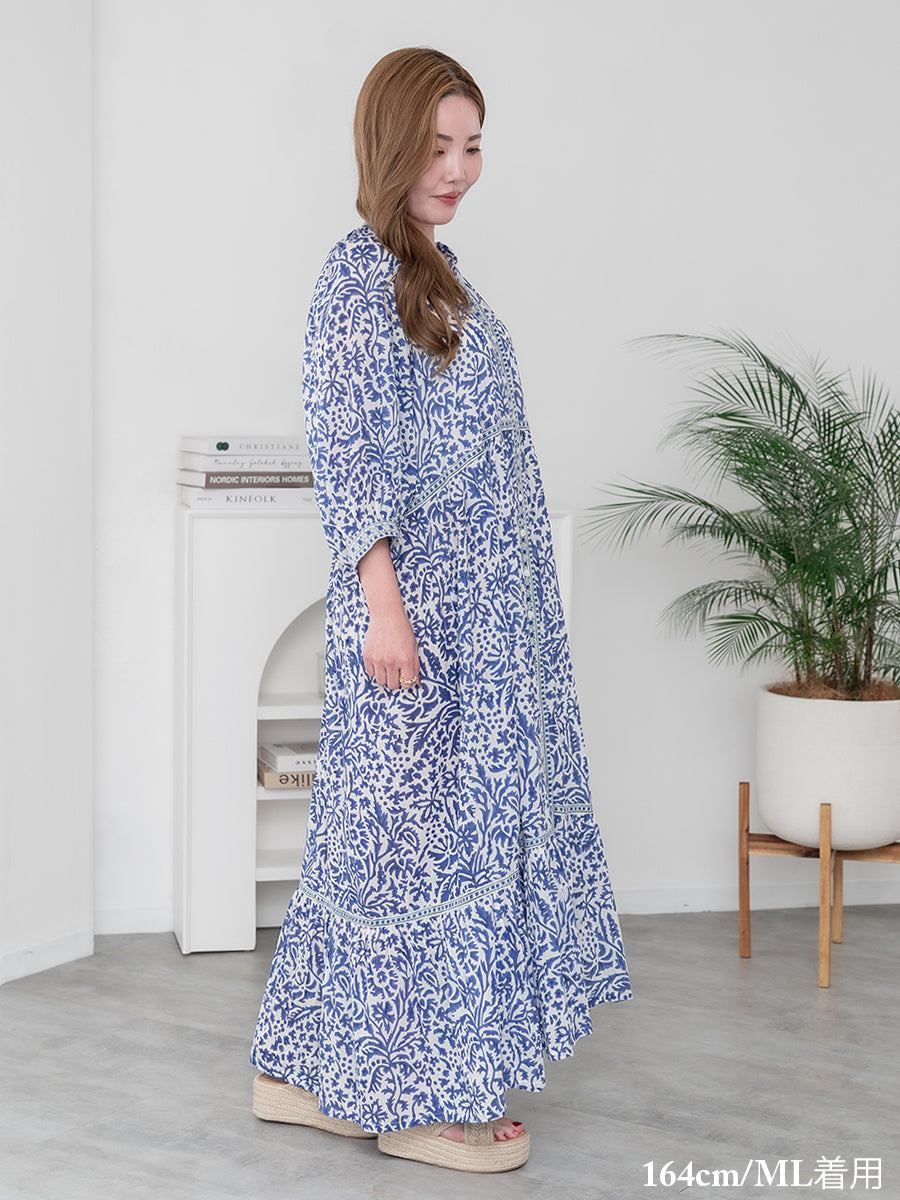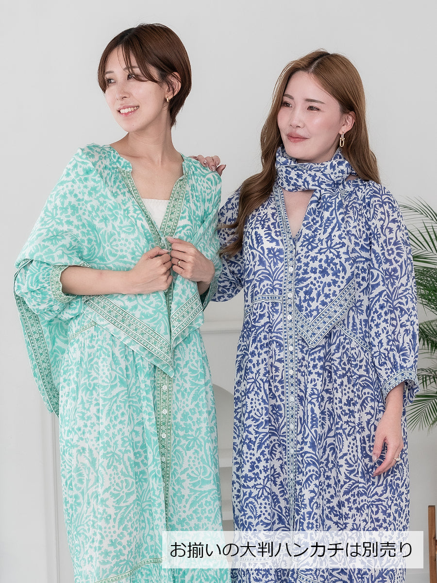 Eighty Seven(エイティセブン)インド綿フレア前ボタンワンピース