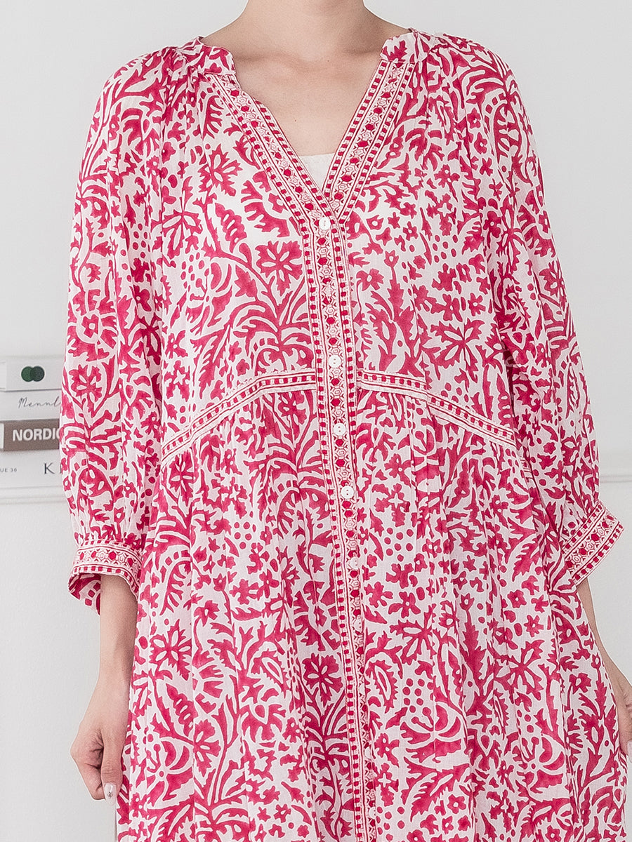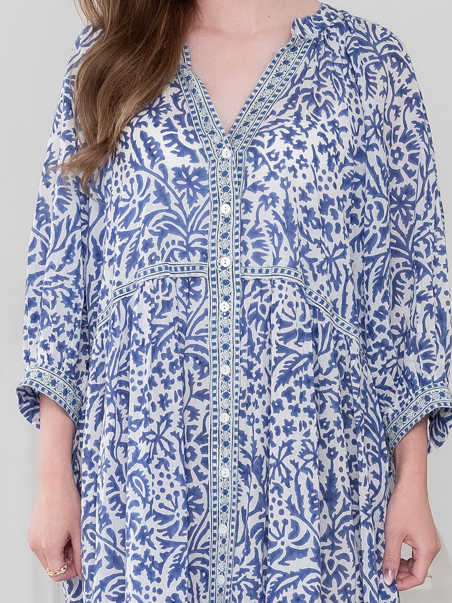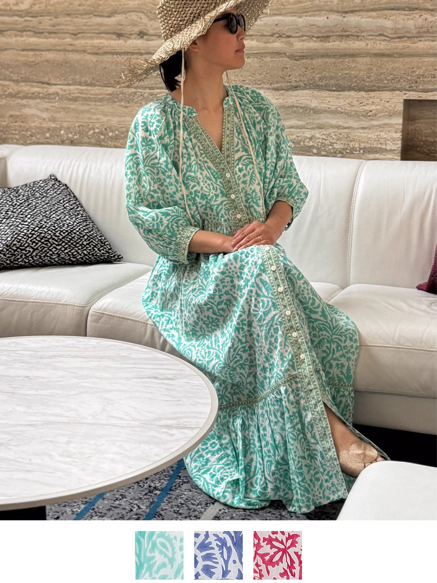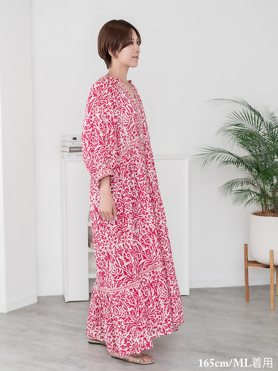 Eighty Seven(エイティセブン)インド綿フレア前ボタンワンピース