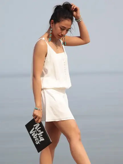 リゾートファッションにはもちろん、タウンファッションにも合わせやすいクールなデザインです♪