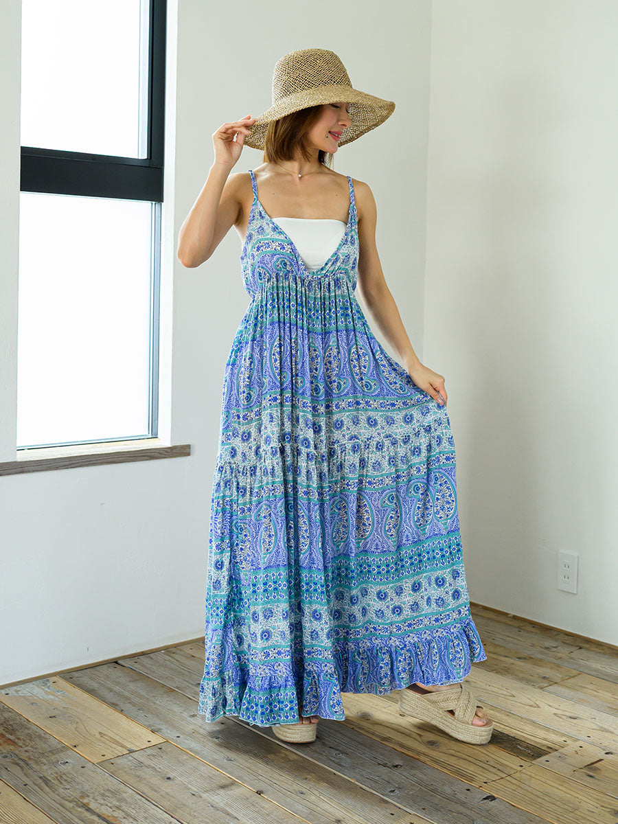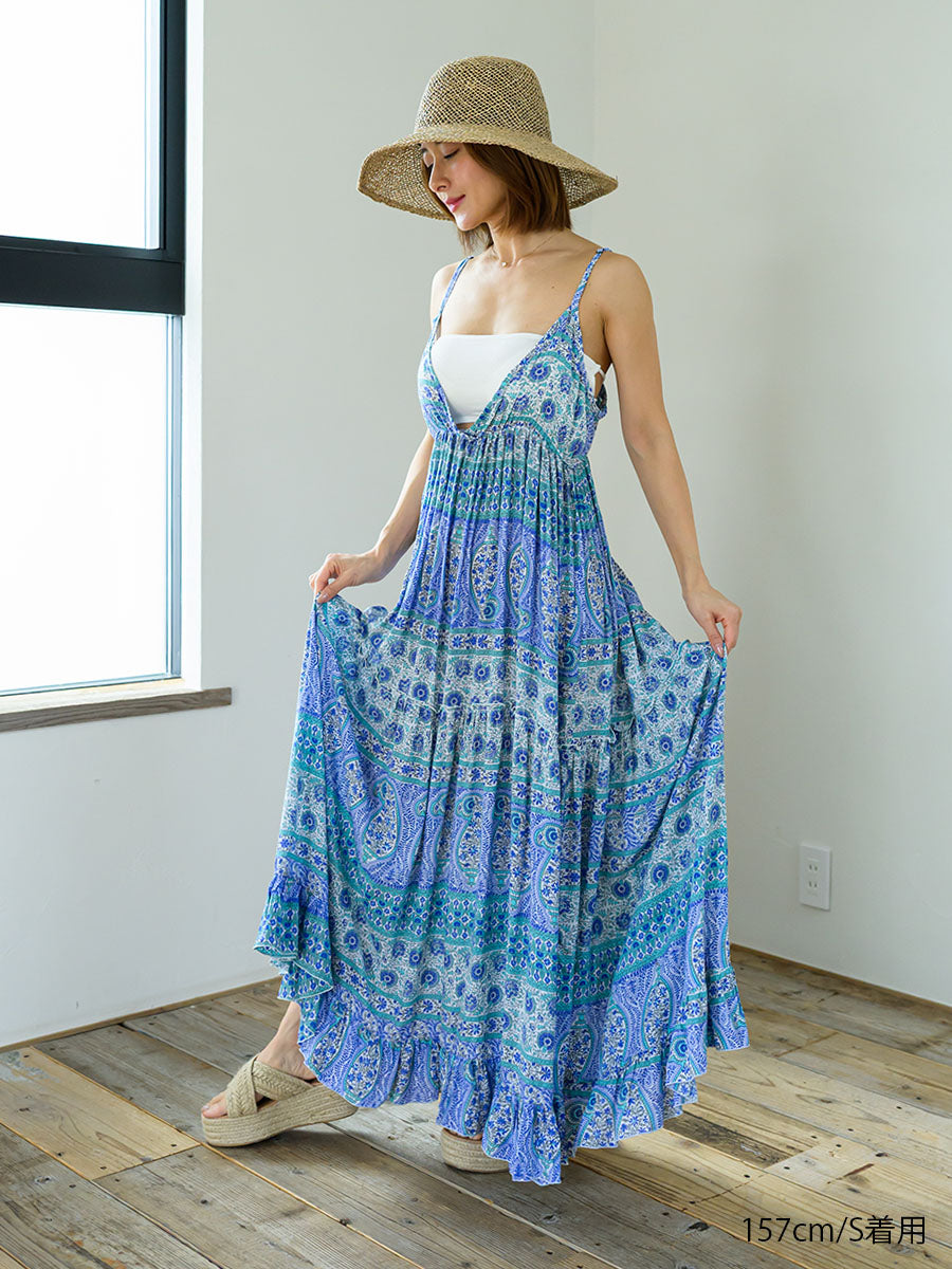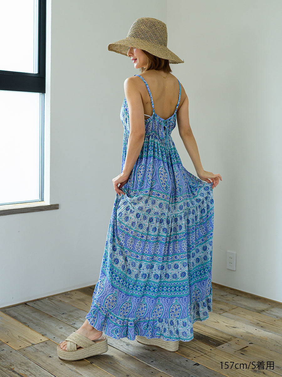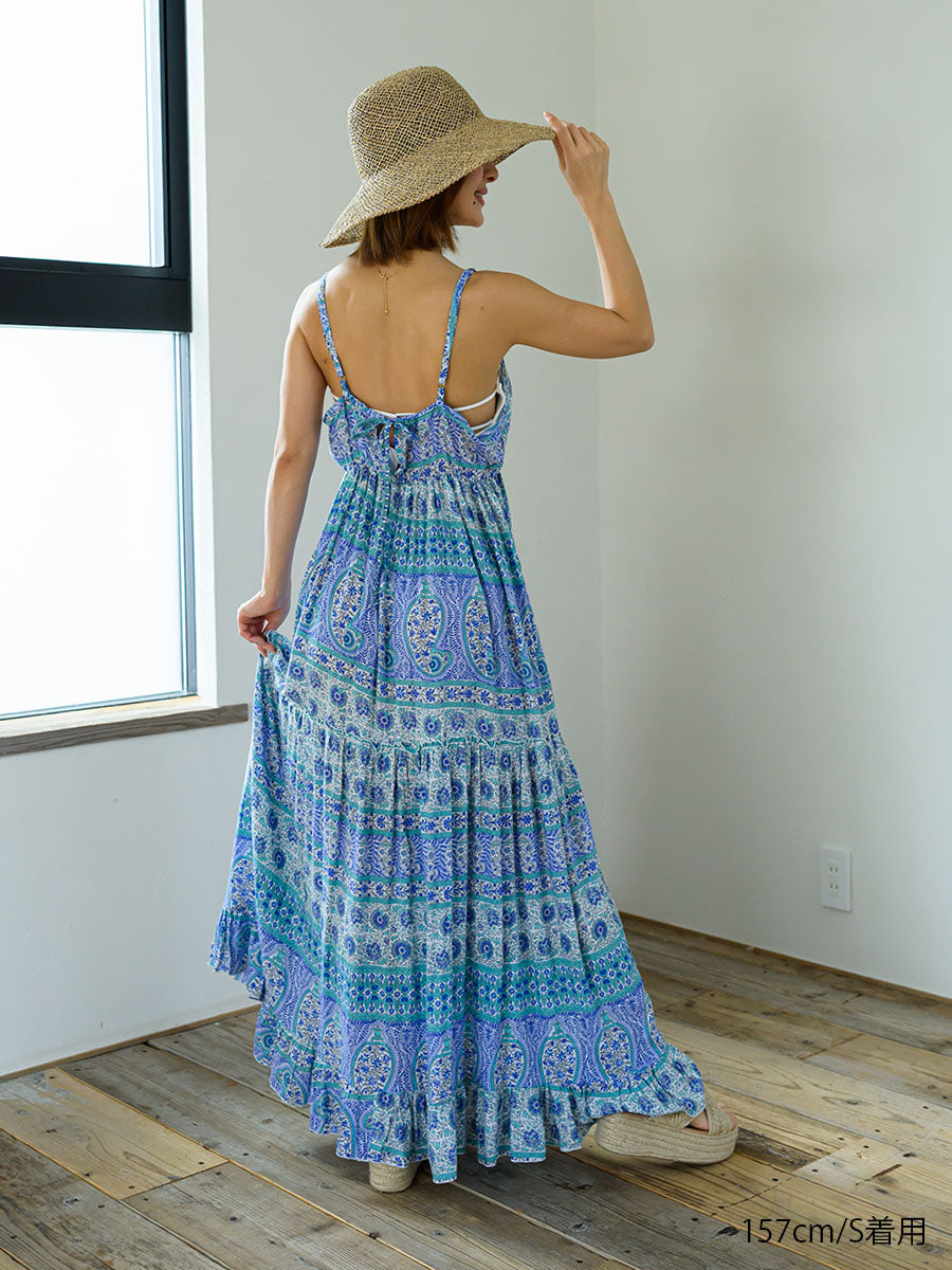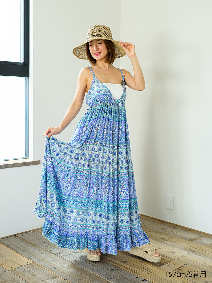 LAUT BLUE(ラウトブルー)ペイズリー柄キャミソールティアードワンピース