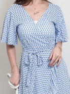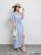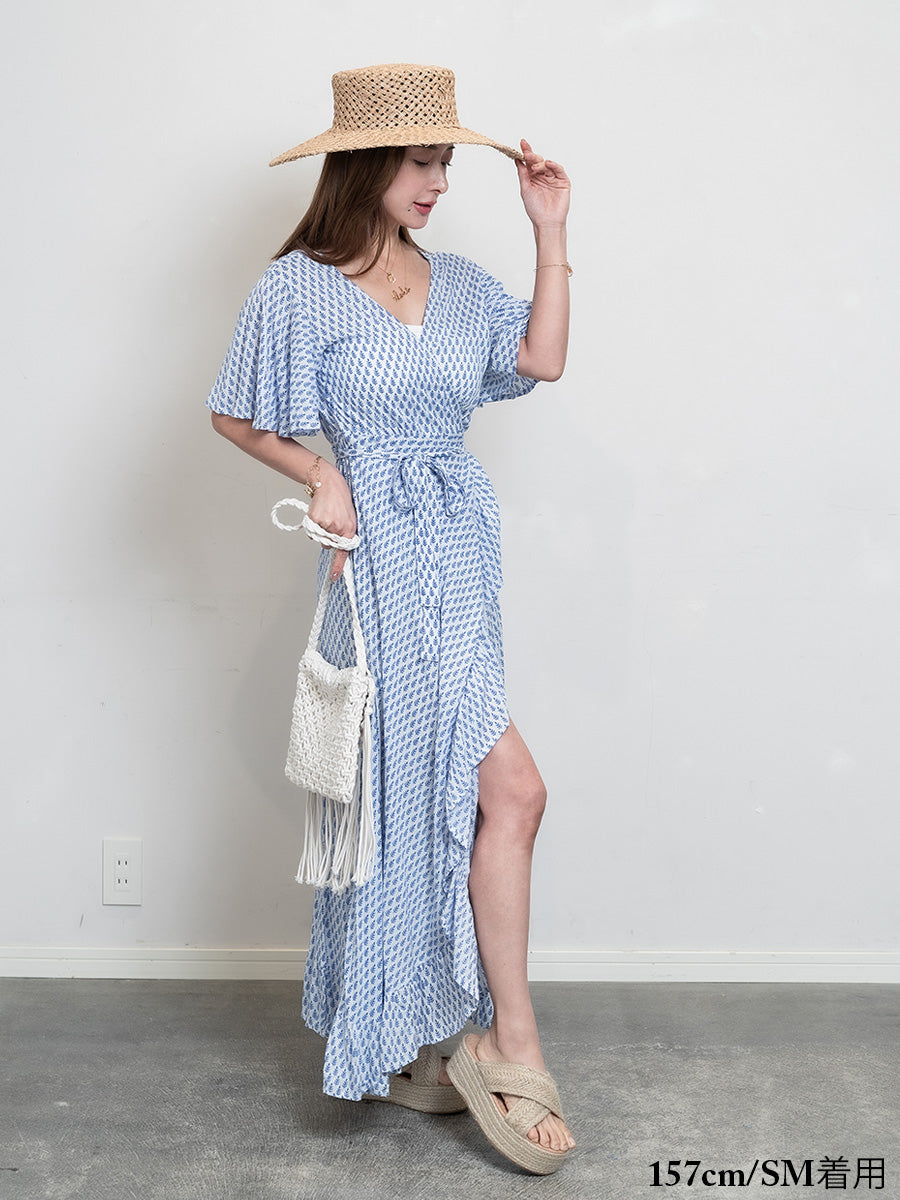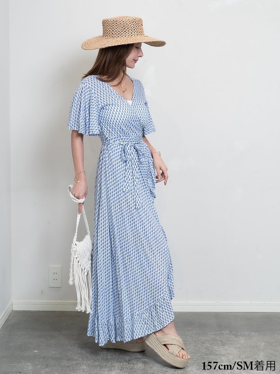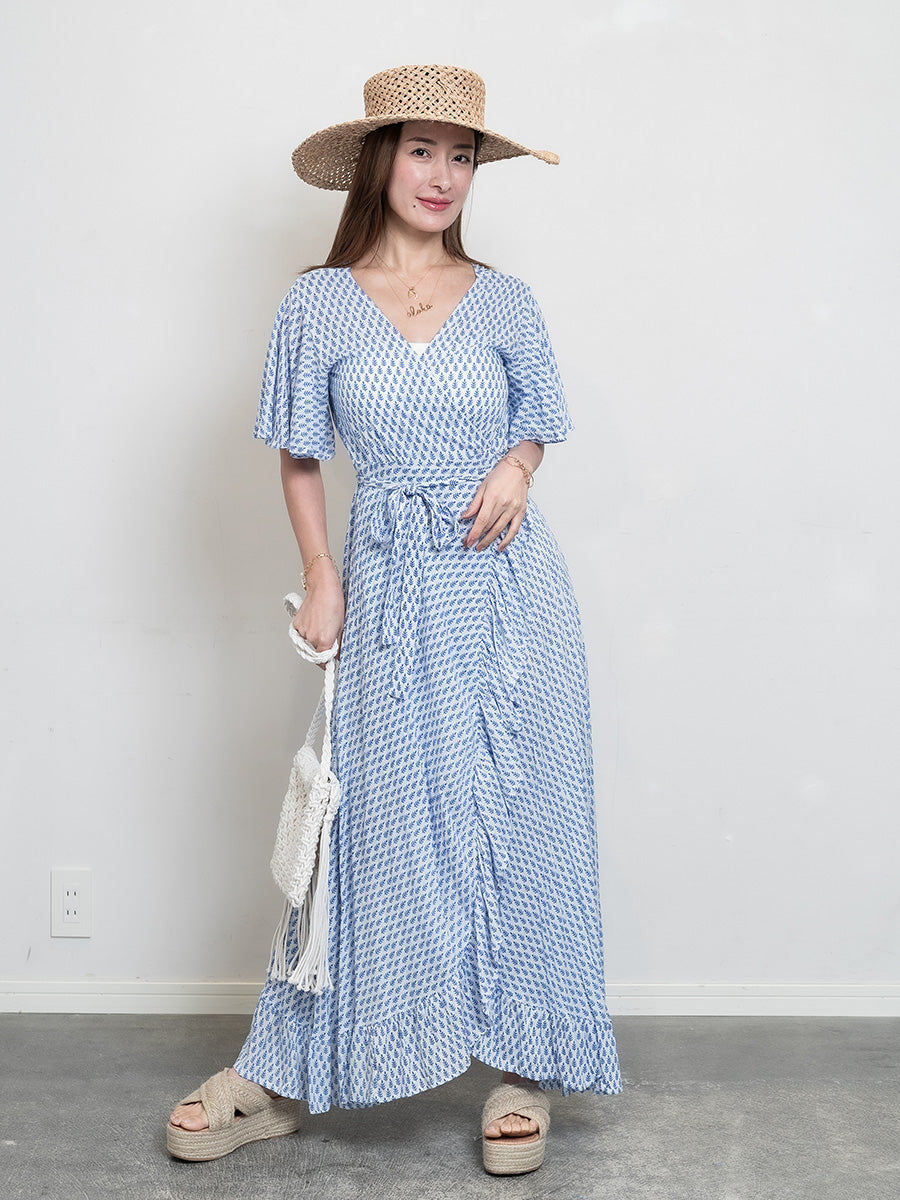 LAUT BLUE(ラウトブルー)カシュクールマキシワンピース/リトルリーフ柄