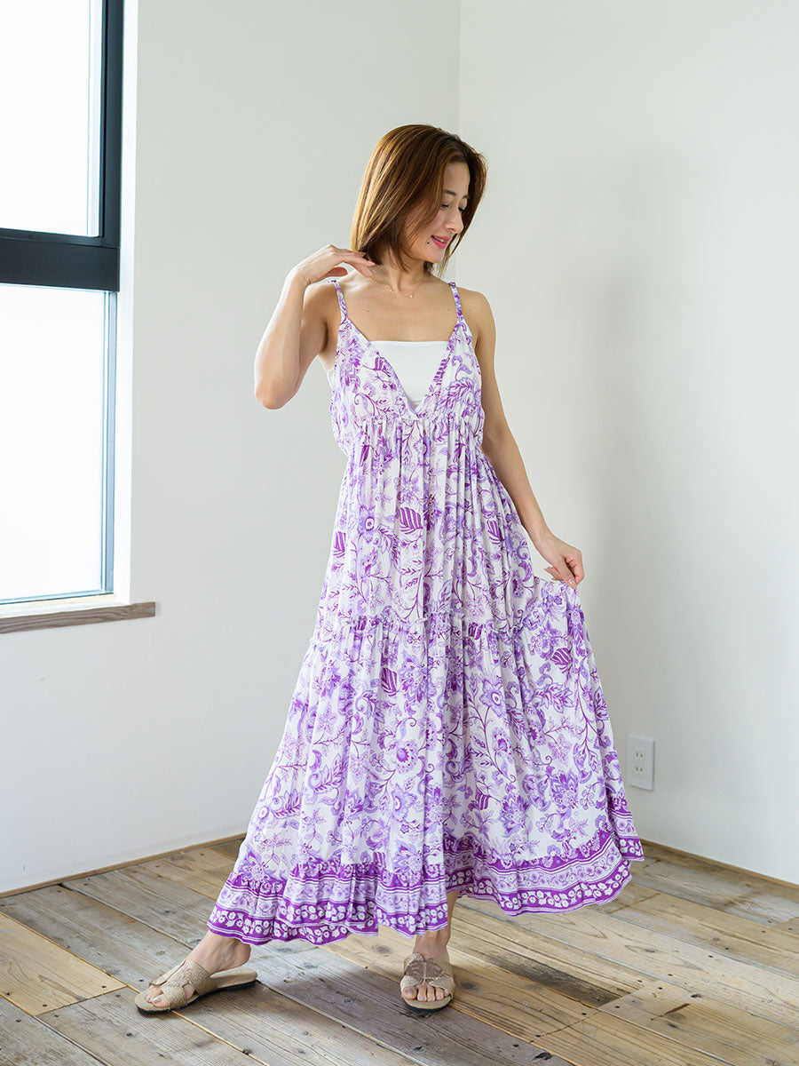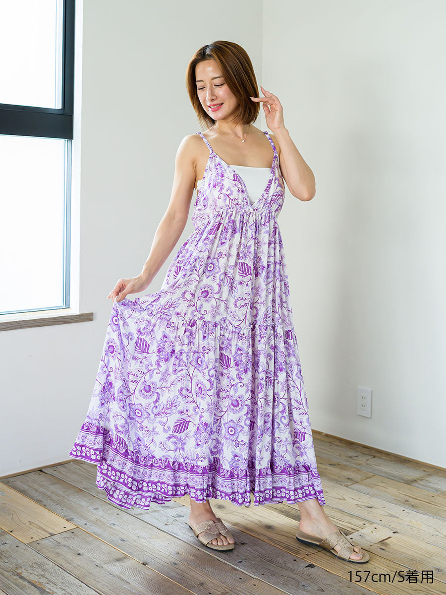 LAUT BLUE(ラウトブルー)花柄キャミソールティアードワンピース/パープル