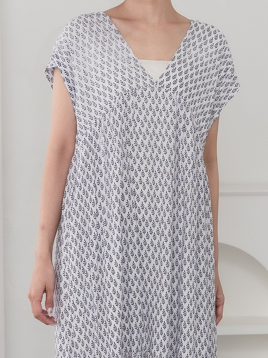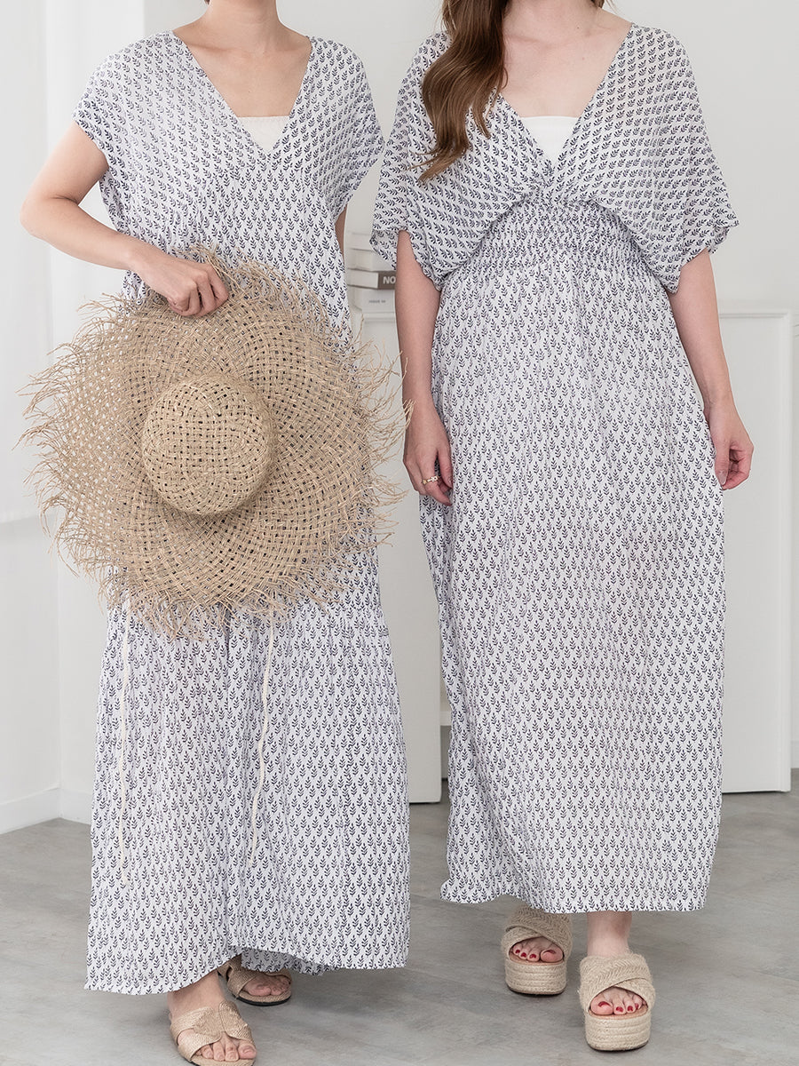 サラッと1枚で大人のリゾートスタイルが完成するリトルリーフ柄ワンピース。