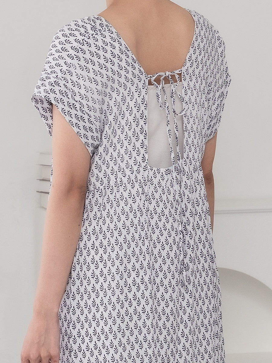 LAUT BLUE(ラウトブルー)フレンチスリーブティアードワンピース/リトルリーフ柄
