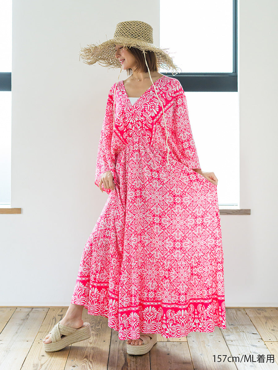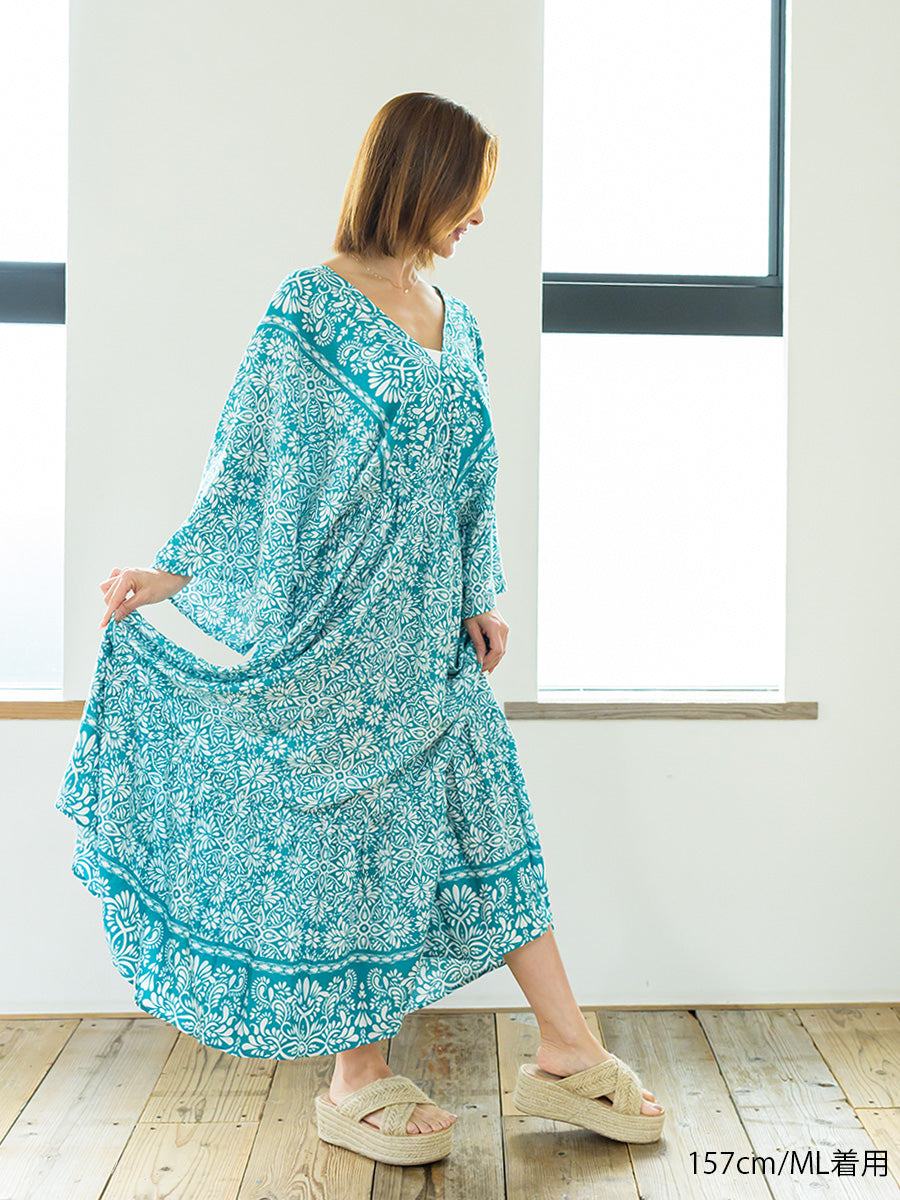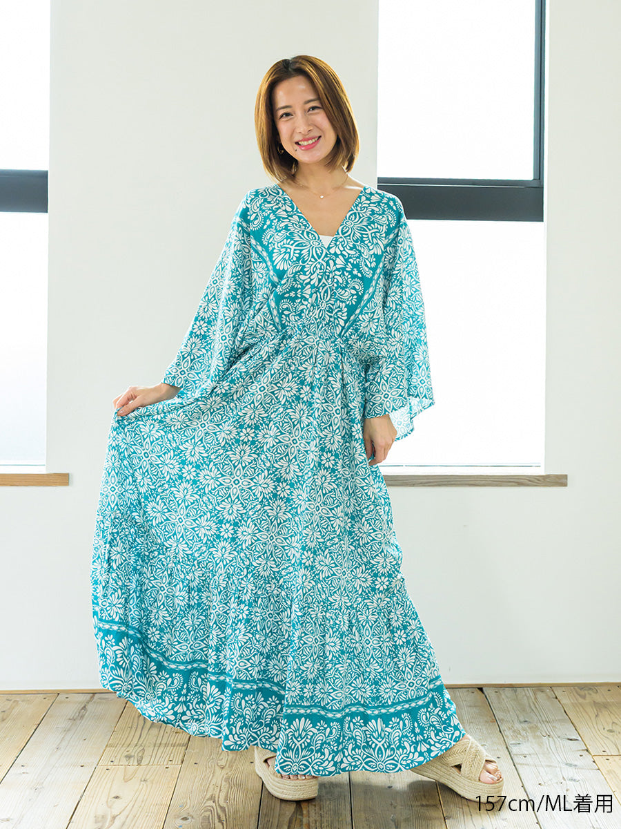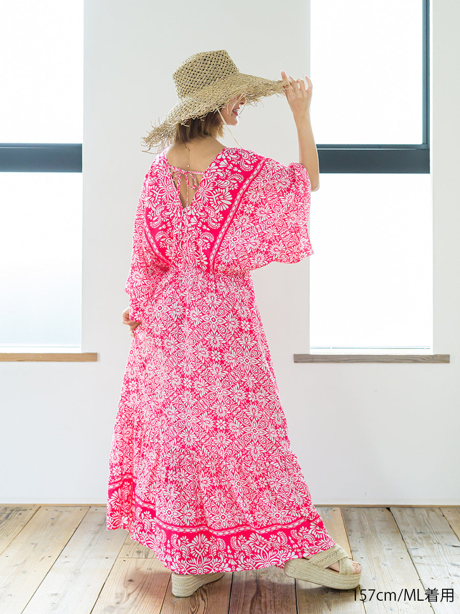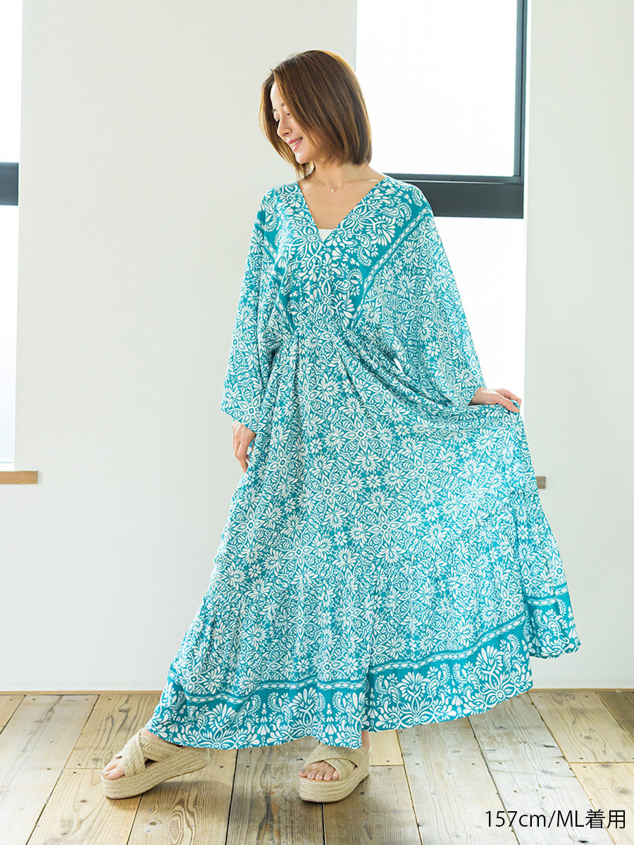 romy by the sea(ルーミーバイザシー)オリエンタル柄ドルマンティアードワンピース